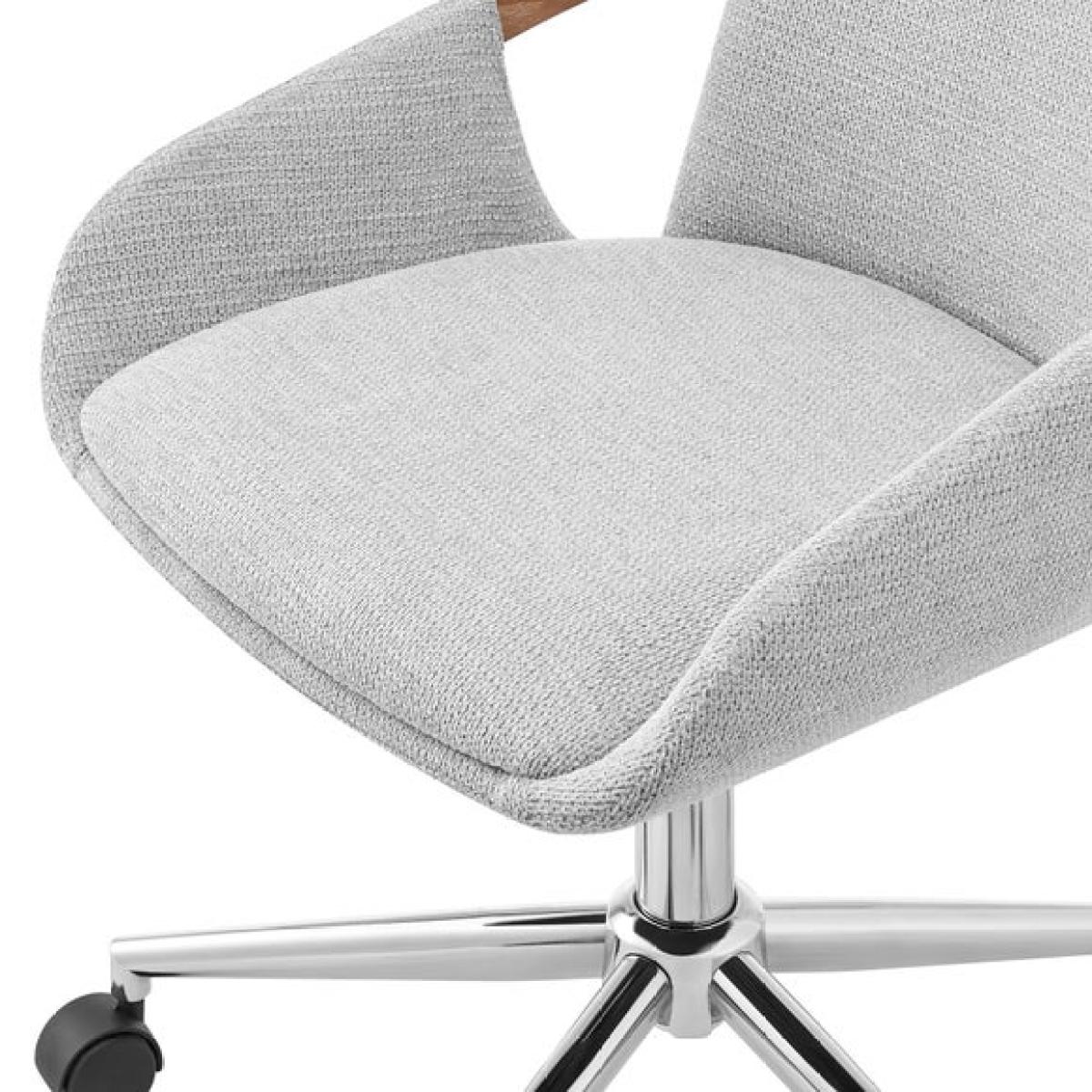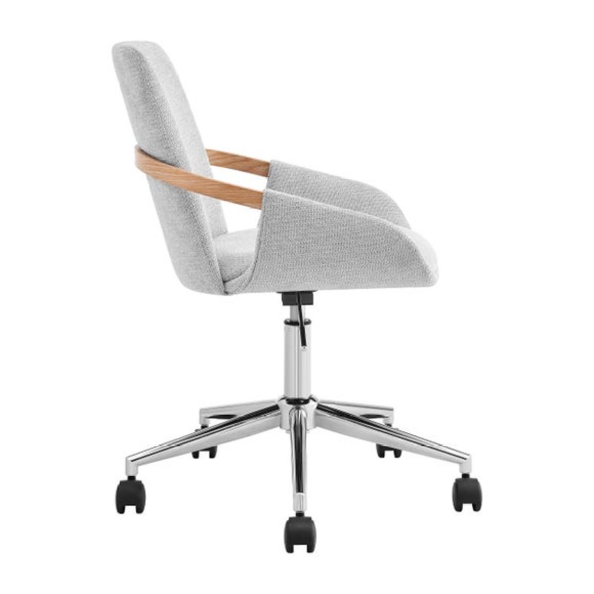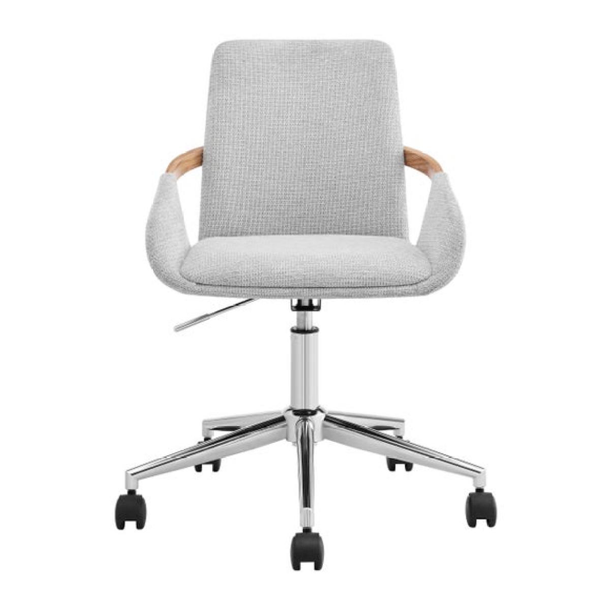 I love this office chair for its clean, contemporary design and neutral colour palette, making it versatile for a range of interiors from minimalist to Scandinavian-inspired spaces. Its soft grey fabric adds a touch of comfort and warmth, while the wooden side handles bring a subtle natural detail that works beautifully in both modern and more eclectic setups. Practical styling tips include pairing it with a sleek desk and a cosy desk accessories for a streamlined workspace, or placing it alongside a textured rug and houseplants to soften a more industrial or modern environment. Its adjustable height and swivel base ensure functionality without compromising style, making it an easy addition to any home office.