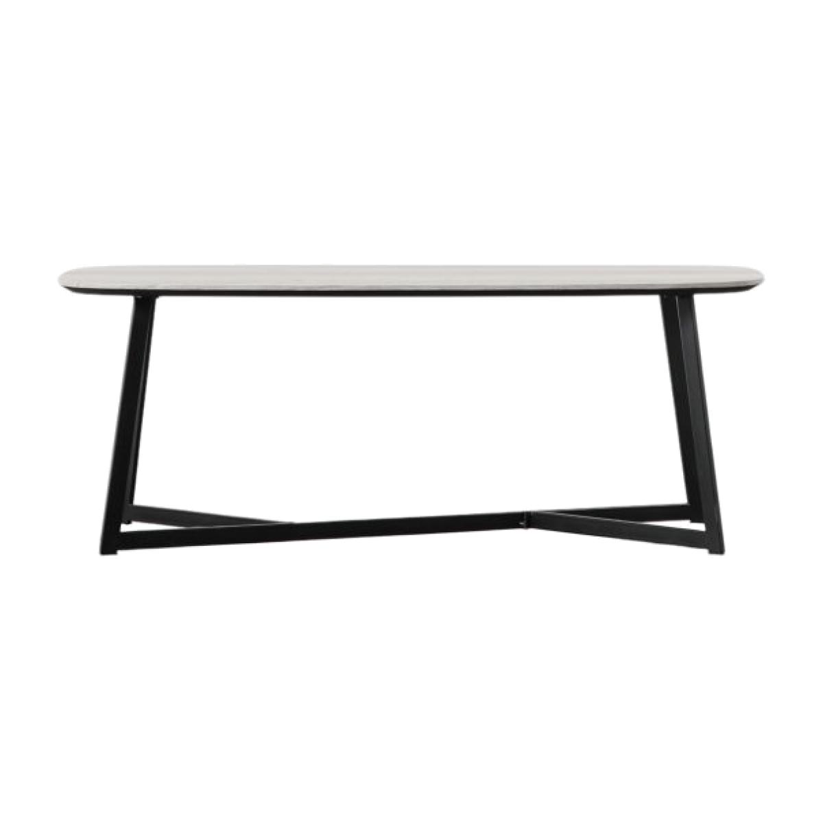 Offering a modern twist to a mid-century look, this lovely coffee table combines faux light oak with a black metal base with an unusual stepped cross design. The collection is part of our Packed-Flat Design Project, offering easy delivery to any room in any property, whilst reducing the packaging needed. Easy assembly is required, but all the tools needed are supplied. Material:Faux Marble. Colour/Finish: Natural. Table Shape: Oval.