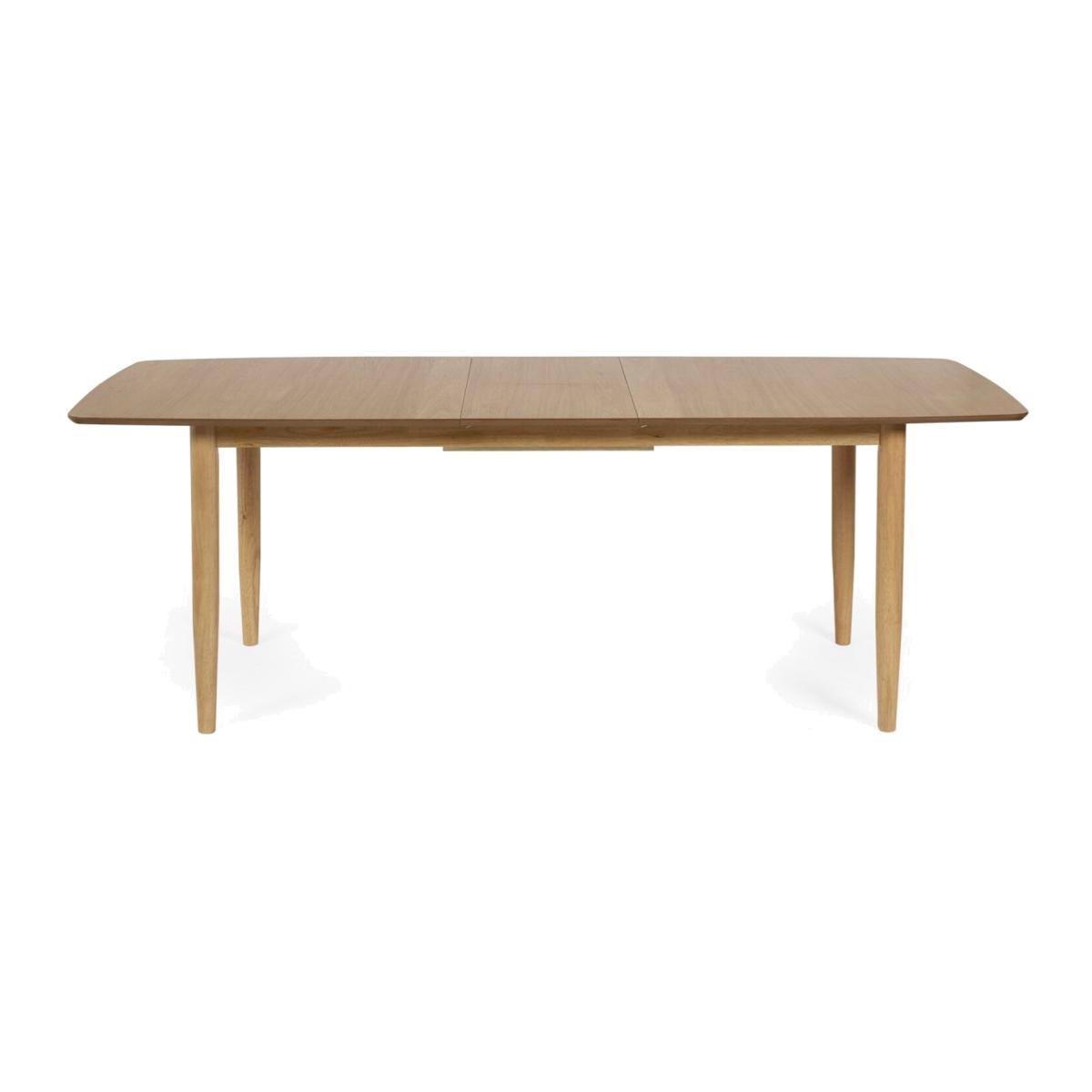 Sleek and versatile, this extending dining table blends natural warmth with modern simplicity. Finished in a smooth oak effect, its slender tapered legs and softly rounded edges bring a light, effortless feel to your dining space. Designed for everyday use, the hidden extension panel allows the table to expand smoothly, ideal for everything from casual weeknight dinners to hosting guests. Whether used as a kitchen table or a dining table for special occasions, it offers timeless style with practical flexibility.