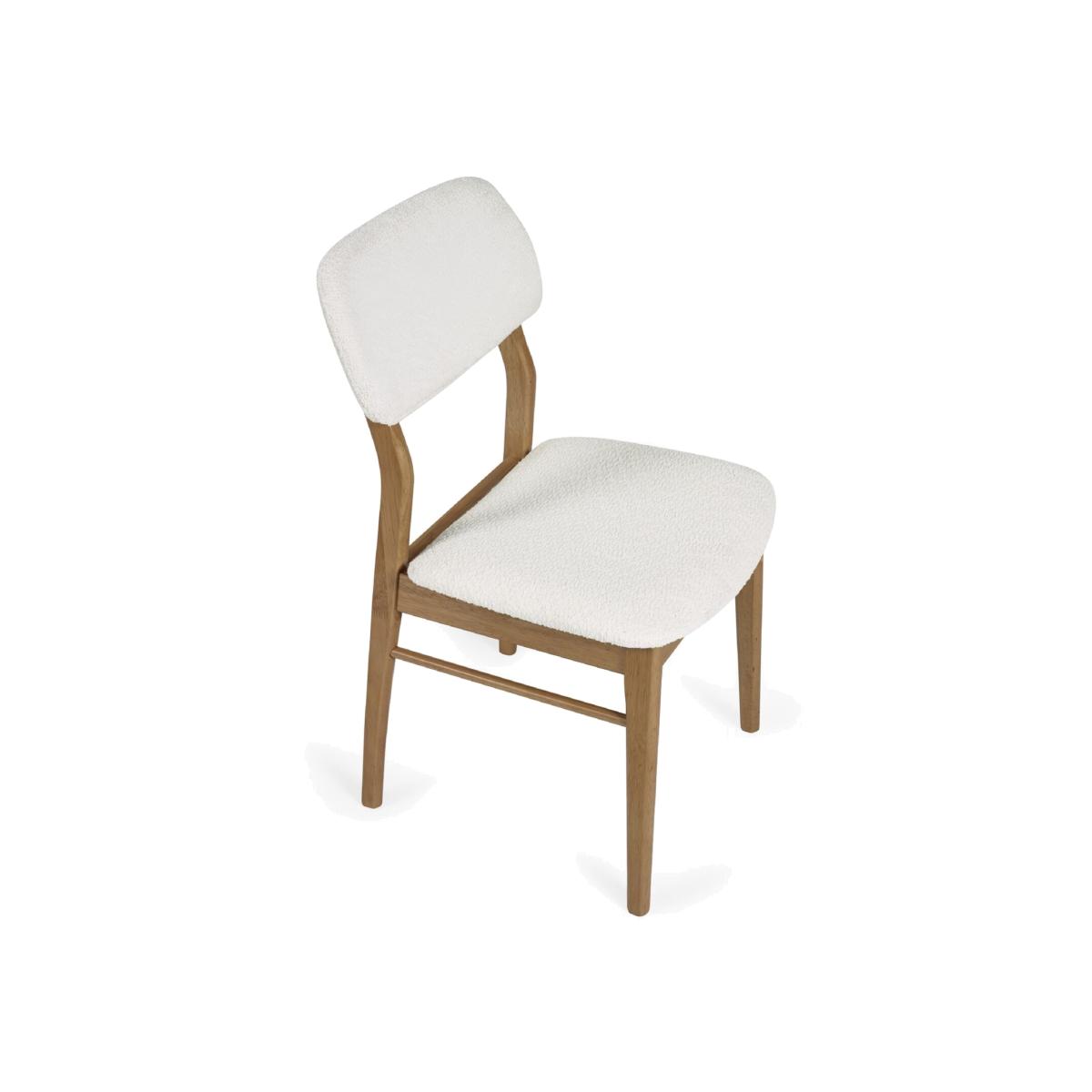 Bring a sense of warmth and understated elegance to your dining space with these beautifully upholstered dining chairs. The soft white boucle offers a rich, tactile finish that feels both luxurious and inviting, while the gently curved seat and backrest provide lasting comfort and support. Set on sturdy warm oak-effect legs, they offer a seamless blend of comfort and style, making them a refined addition to any setting as dining room chairs.