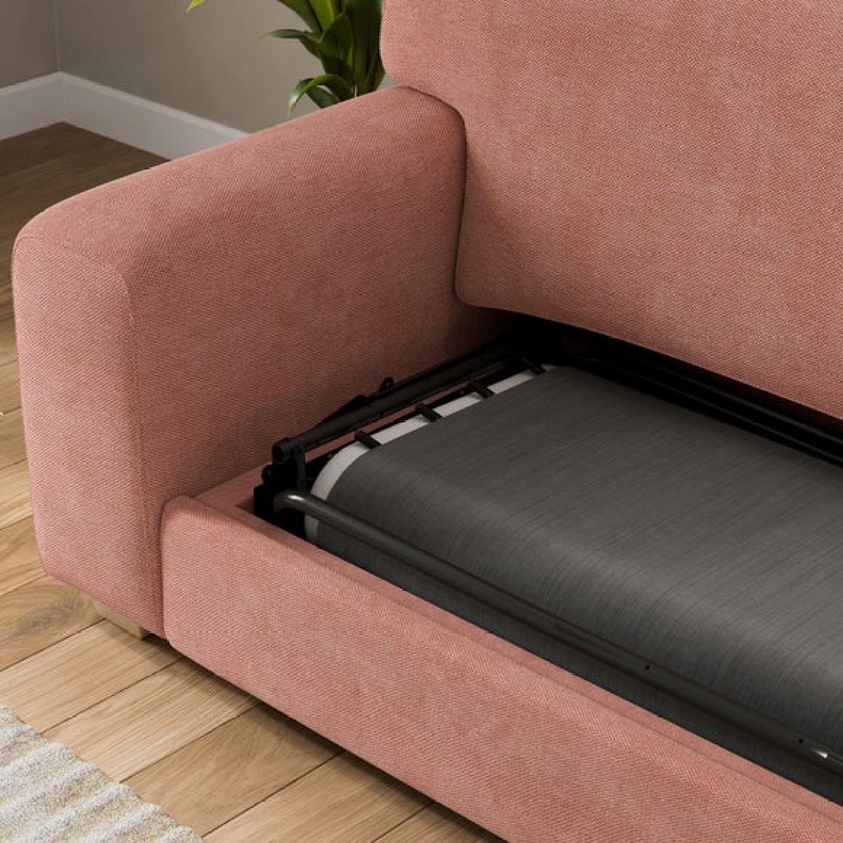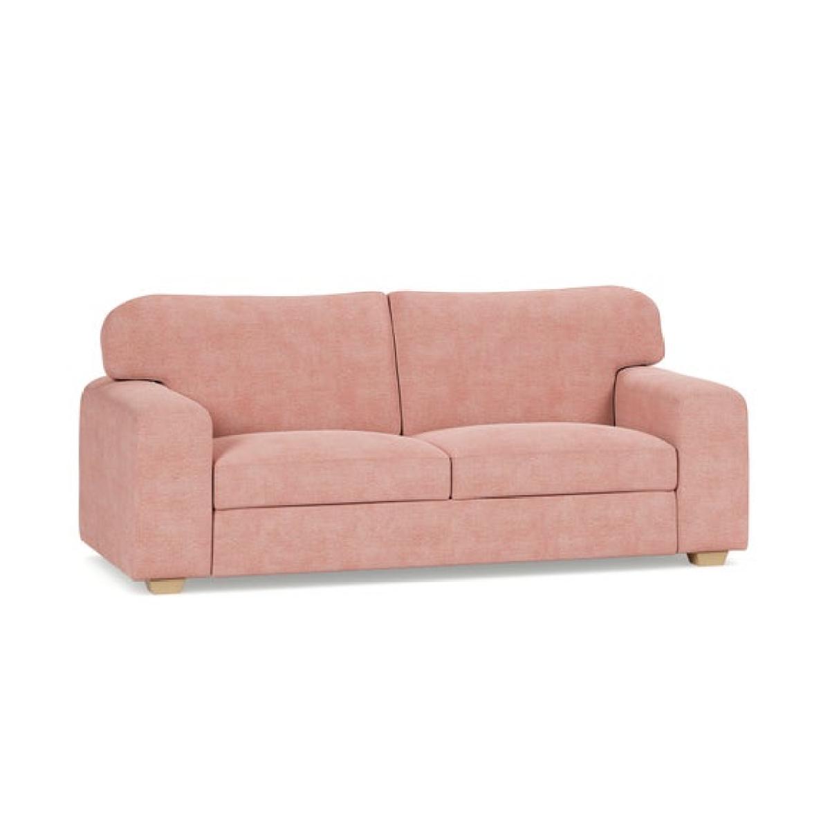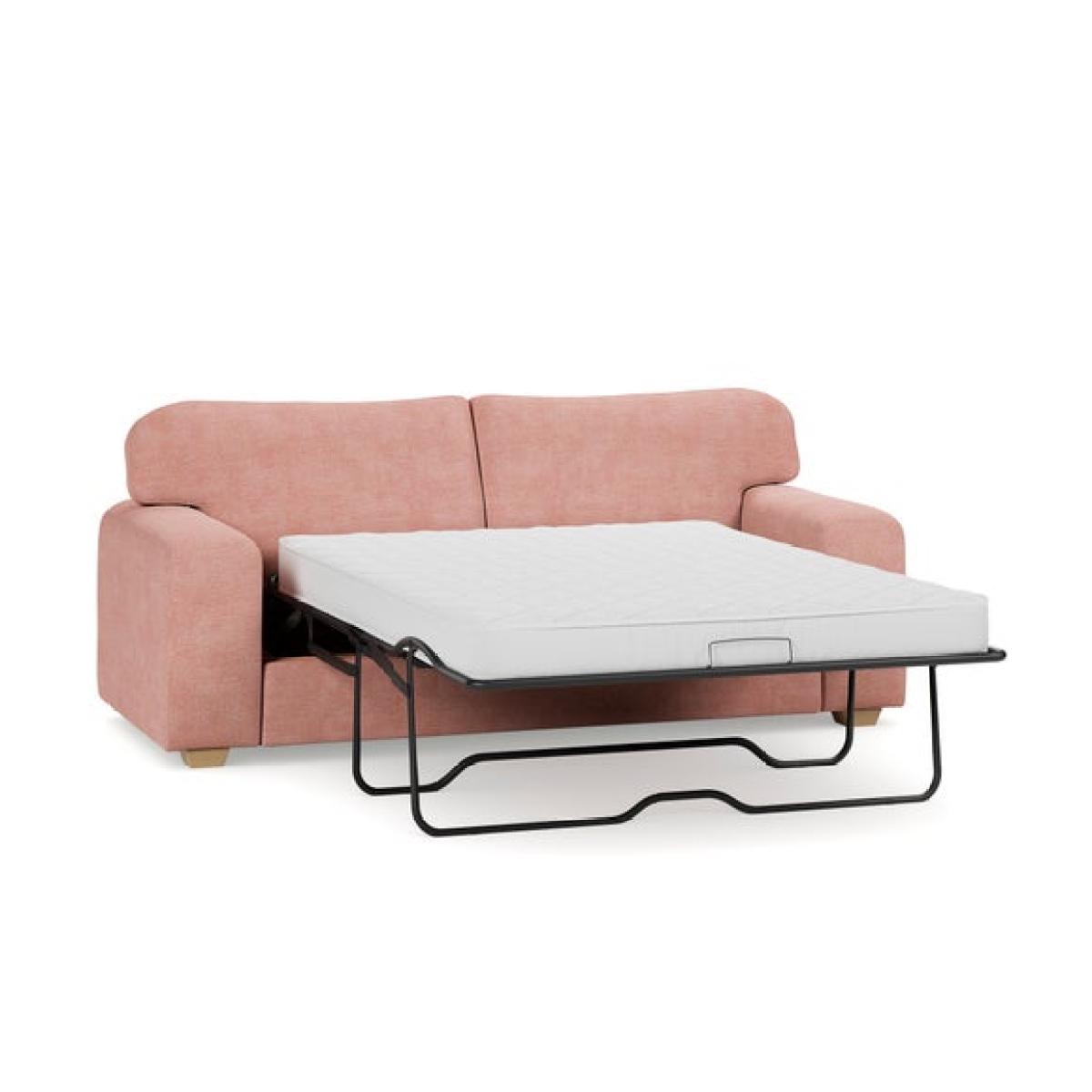 I love this sofa bed for its soft tonal chenille fabric, which adds a cosy, inviting feel to a space. It works particularly well in modern or contemporary interiors, especially when paired with muted colour palettes or natural textures. The pink shade offers a subtle pop of colour without overwhelming the room, making it versatile for various schemes. Practical styling tips include accessorising with a mix of cushions in complementary or contrasting tones, like the olive green one shown, to add visual interest. Its clic-clac mechanism makes it easy to transform into a bed, making it ideal for guest rooms or multifunctional living spaces. To keep the look cohesive, keep surrounding accessories minimal and let the sofa bed be a relaxed, central feature.