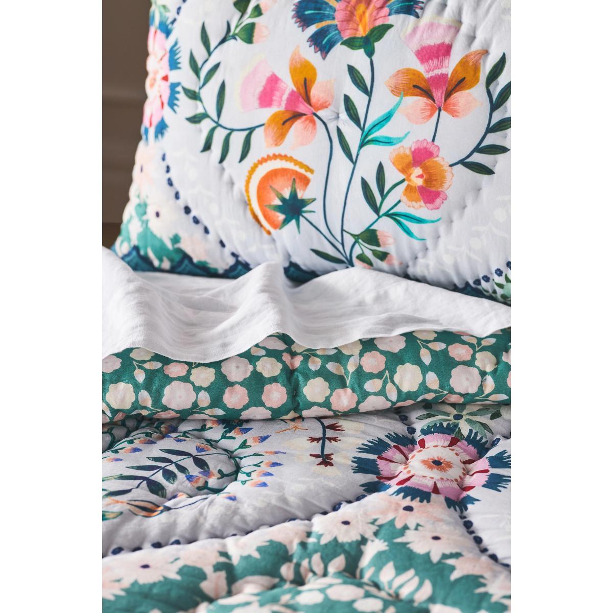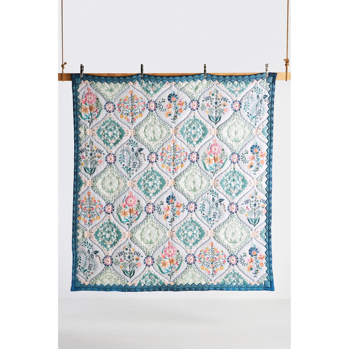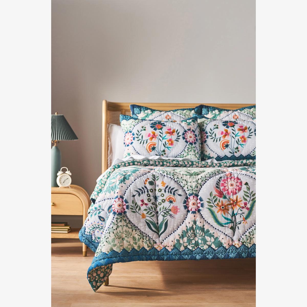 I love how this embroidered quilt brings a burst of pattern without feeling overbearing - the stitched florals work equally well in a relaxed boho setting, a country-style guest room or even a pared-back Scandi scheme. It’s best styled over crisp white or muted grey linens, paired with plain cushions in complementary shades (think soft greens or dusty pinks) and a neutral-tone knitted throw at the foot of the bed. The lightweight quilting means it’s perfect for layering year-round, so you can swap in a thicker duvet or add extra throws in winter for cosy warmth.
