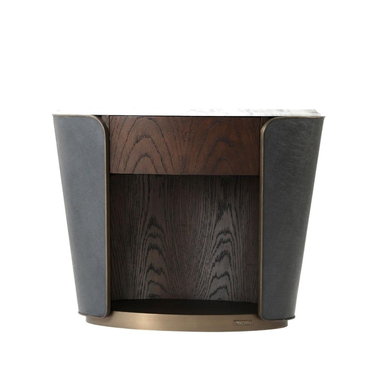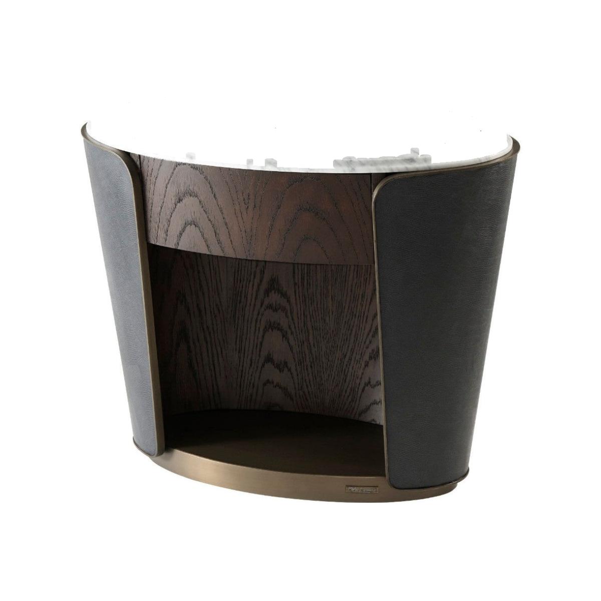 I love this bedside table for its blend of refined craftsmanship and modern elegance. The oval shape offers a softer silhouette that works well in both contemporary and classic interiors, especially when paired with luxurious textiles or minimalistic schemes. It’s versatile enough to sit alongside a variety of bed styles, from upholstered headboards to sleek platform beds. Practical styling tips include keeping the top surface clear for a lamp, a small clock, or a favourite book, while utilising the open compartment for essentials like a glass of water or reading glasses. Its sophisticated yet understated look makes it a perfect statement piece that doesn’t overpower the room but adds a touch of considered design.