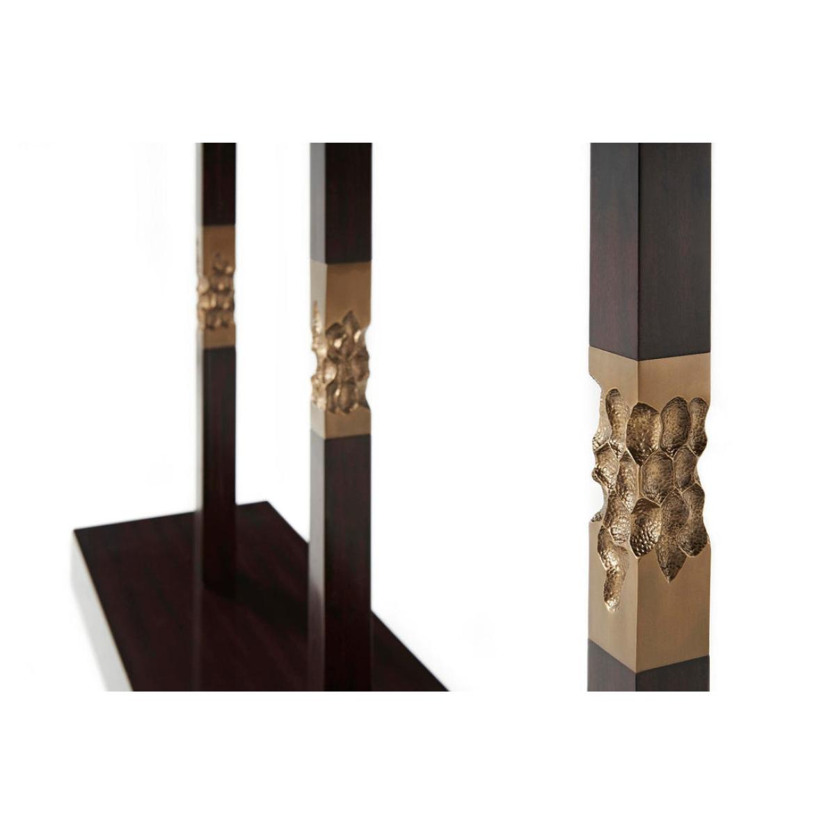 Solid mahogany & veneer espresso finish textured brass accented square brutalist columns