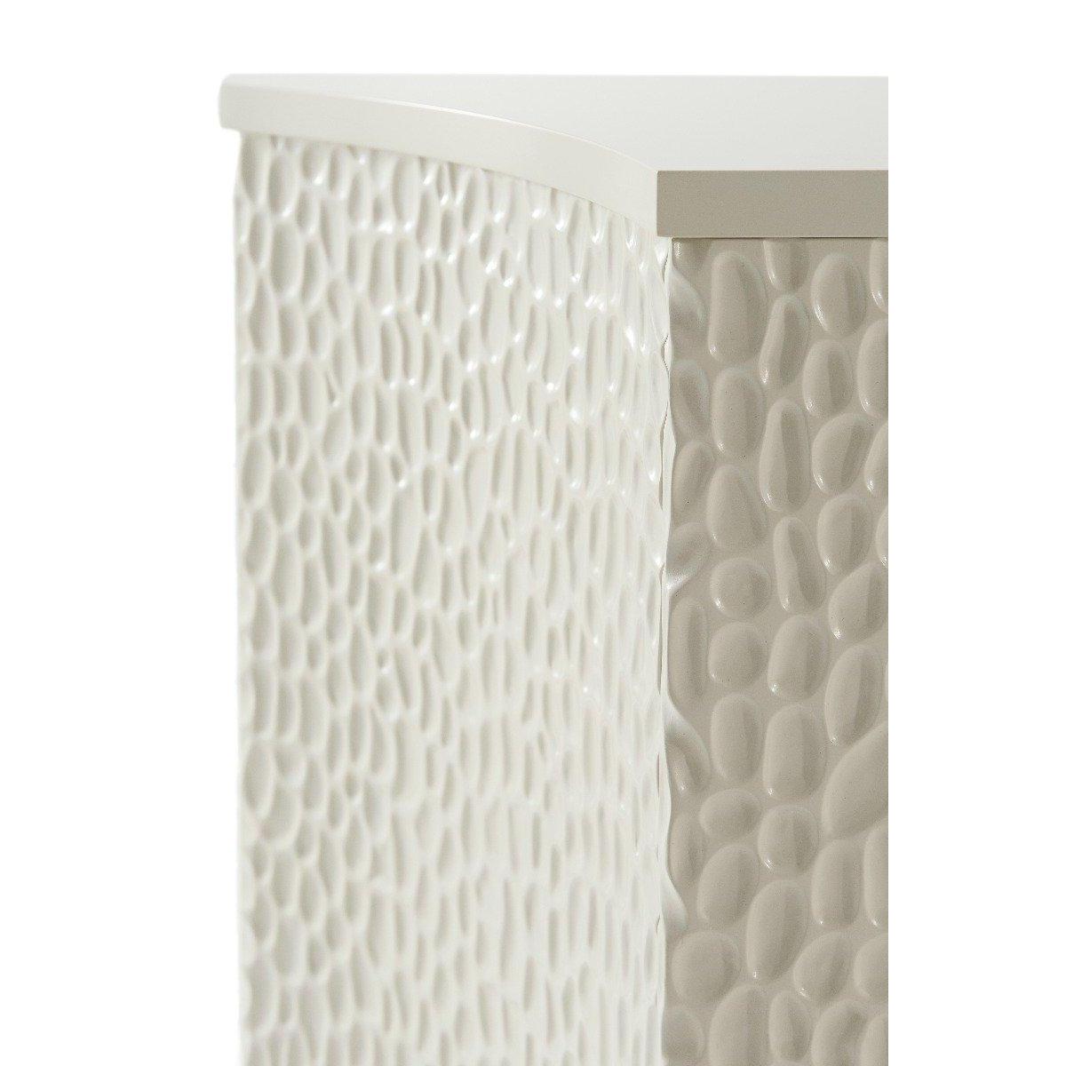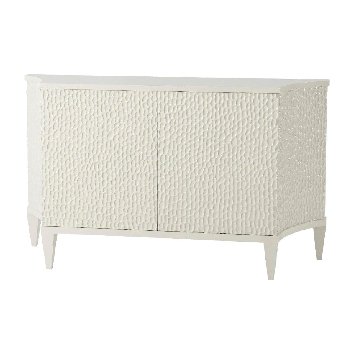 Theodore Alexander’s Theron cabinet is a versatile piece that works beautifully in both traditional and contemporary settings. I love its textured, woven appearance which adds subtle visual interest without overwhelming a space. It’s ideal for living rooms, hallways, or even bedrooms, where it can serve as a stylish storage solution. For styling tips, consider pairing it with minimal accessories to highlight its intricate surface or soften the look with natural fibres like a woven basket or linen textiles nearby. Its neutral tone makes it highly adaptable, so it can blend seamlessly into colour schemes from monochrome to more colourful, eclectic interiors. Overall, it’s a practical yet elegant piece that combines function and flair effortlessly.