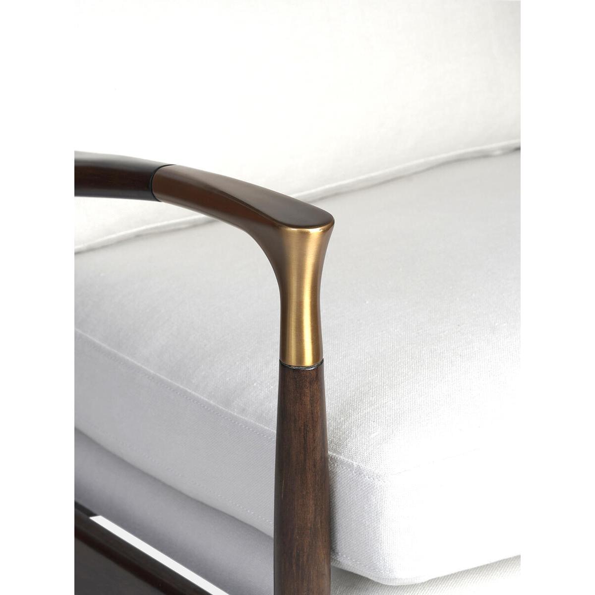 Taking cues from mid-century designs at Soho House Greek Street,our Theodore chair will add a fresh focal point to your livingspace. It has a comfortable, deep-sit shape with down andfeather-wrapped foam cushions upholstered in natural linen. Thetapered birch wood frame and brass detailing on the arms complementthe clean lines. Tapered birch wood frame. Brass-detailed arms. Upholstered in natural linen. Feather and down-wrapped foam cushions. Also available in. Charcoal. And. Khaki.