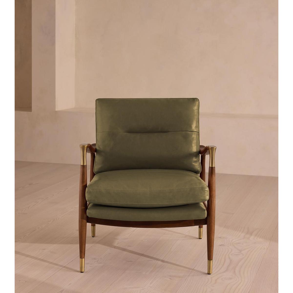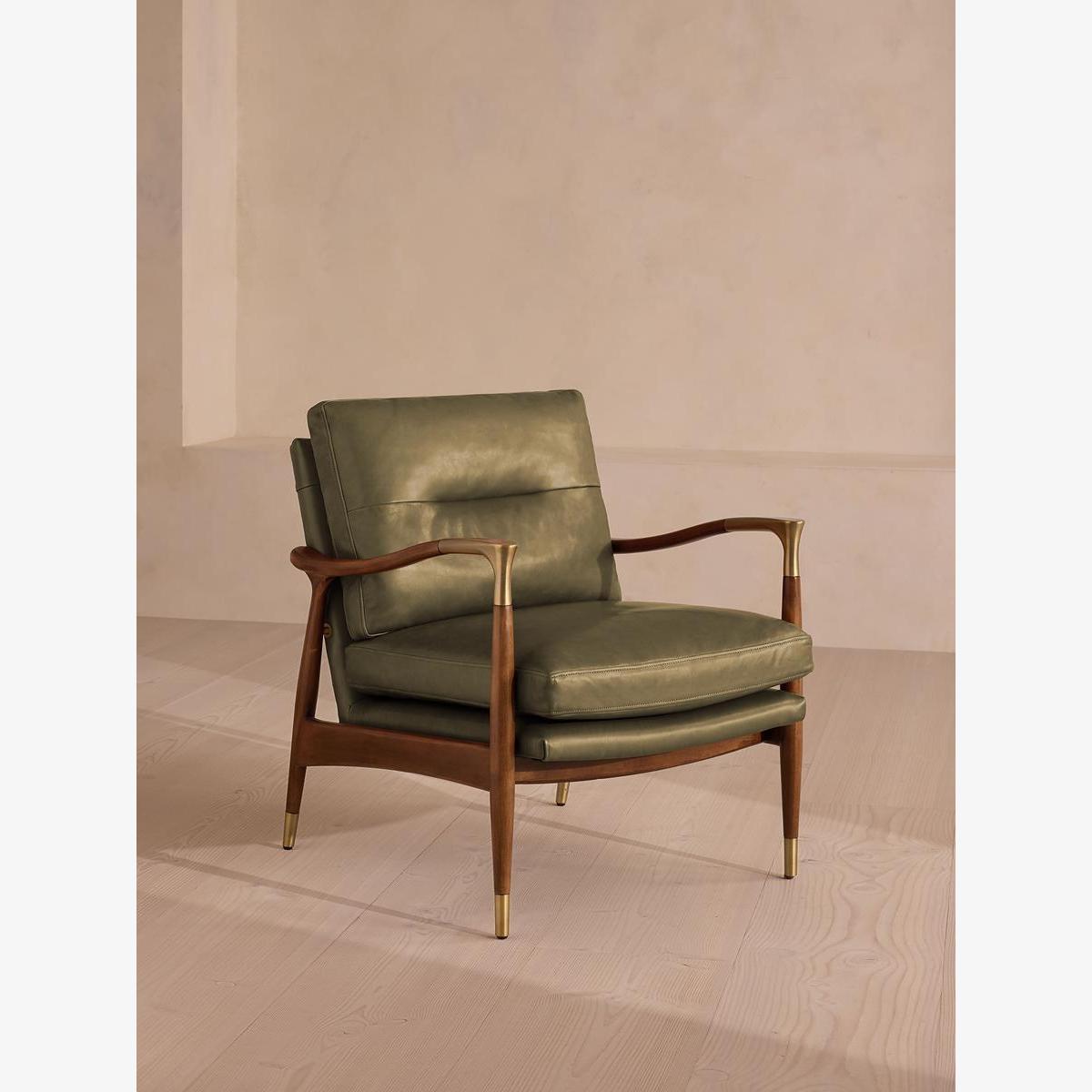 I love the Theodore armchair in moss leather for its classic yet versatile appeal. Its rich, earthy tone makes it a great anchor piece in both modern and traditional interiors, especially in spaces that lean towards a warm, cosy atmosphere. The combination of the leather upholstery and wooden frame adds sophistication and durability, making it suitable for living rooms, study nooks, or even bedrooms. When styling, consider pairing it with neutral or textured textiles to highlight the leather’s natural finish, and add a few decorative cushions to introduce colour or pattern for a more personalised look. It works particularly well in mid-century or eclectic spaces, where its timeless design can really shine.