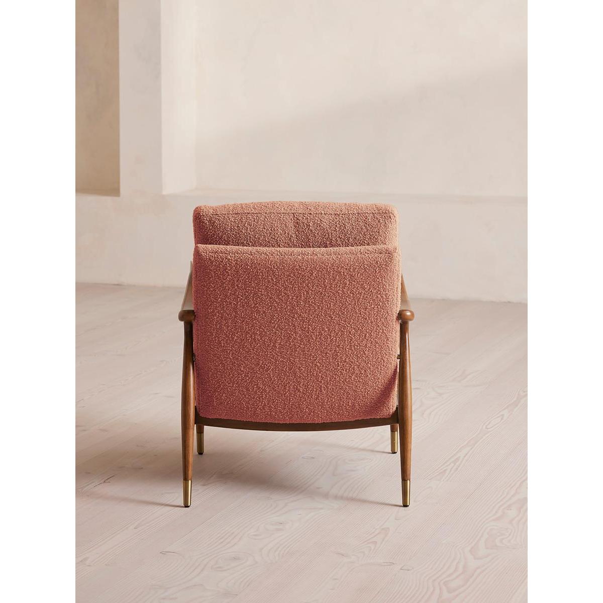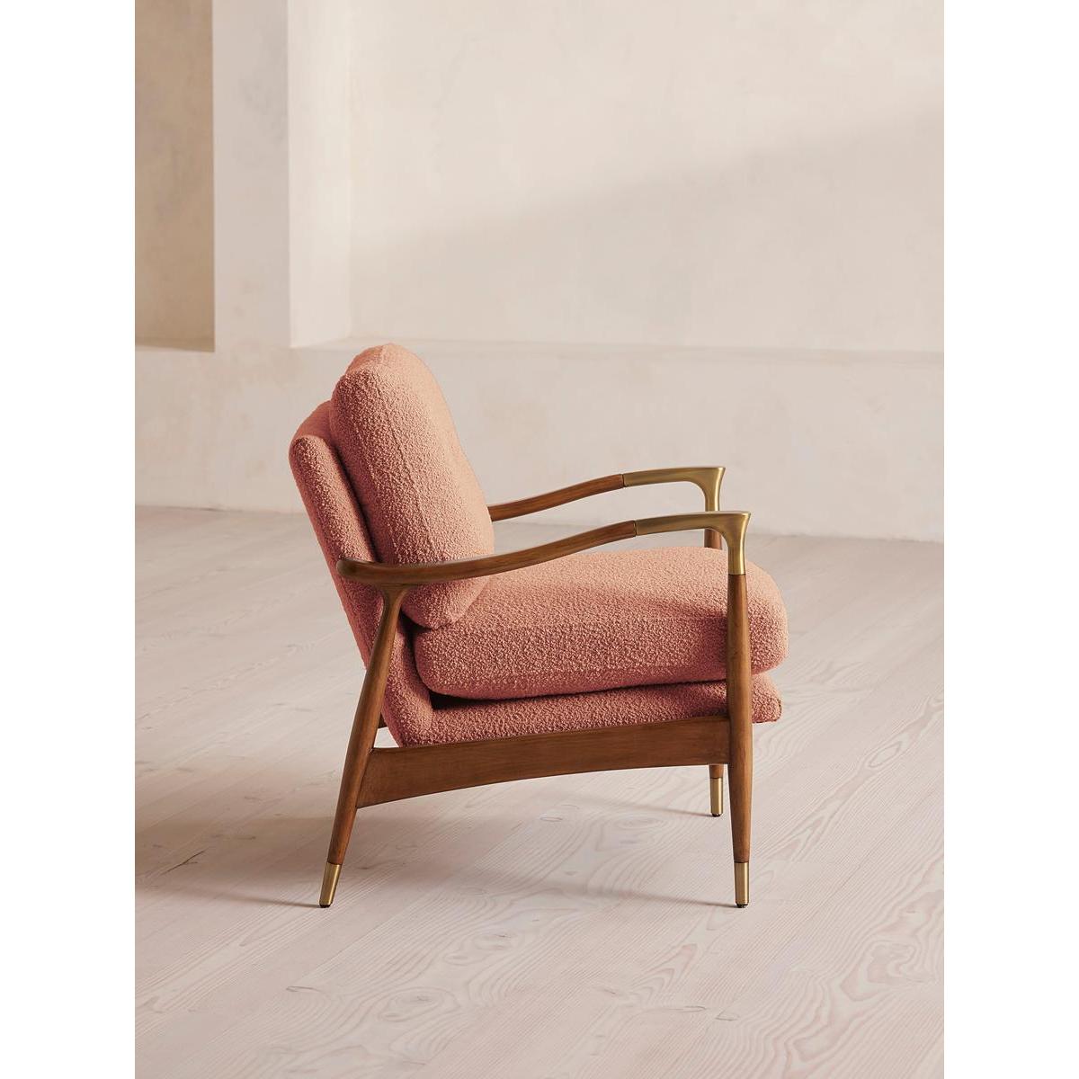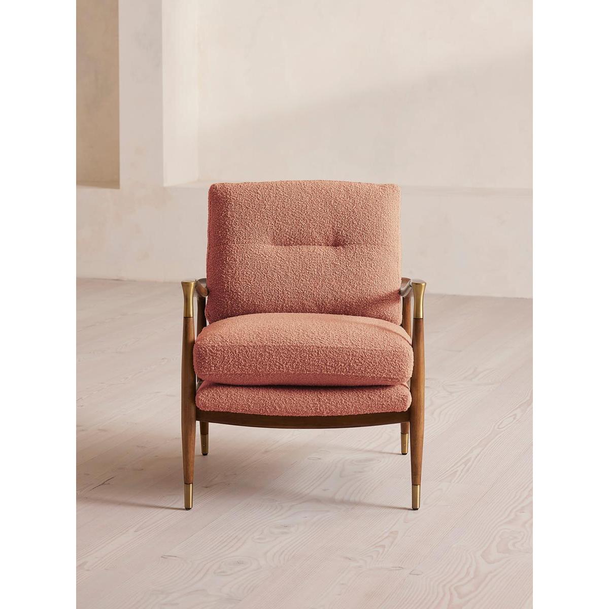 I’m a fan of this coral boucle armchair for the way its warm hue and soft, textured wool immediately lift a scheme without overpowering it. Its sleek wooden frame and brass detailing suit mid-century modern, Scandi or contemporary settings, and the subtle buttoning on the back adds just enough structure to keep it from looking too laid-back. For styling, pair it with a slim, lacquered side table in soft cream or light oak and add a deep-pile wool rug to tie the room together. A single cushion in a complementary shade - think muted terracotta or soft sage - will add interest without clutter, and placing it beside a sculptural floor lamp creates a perfect reading nook.
