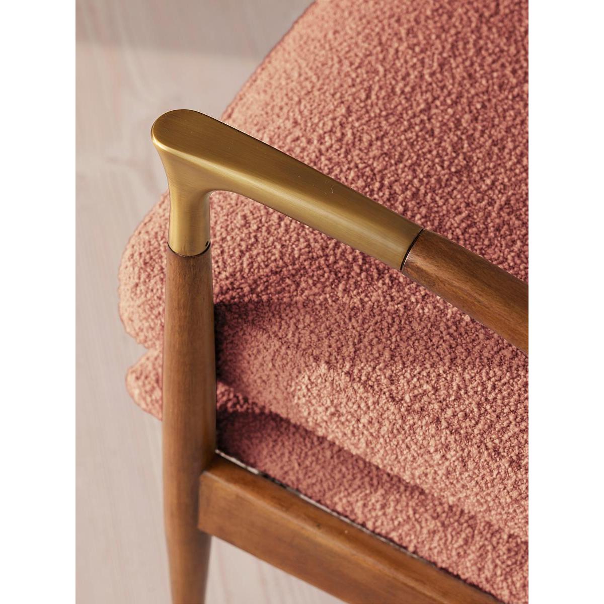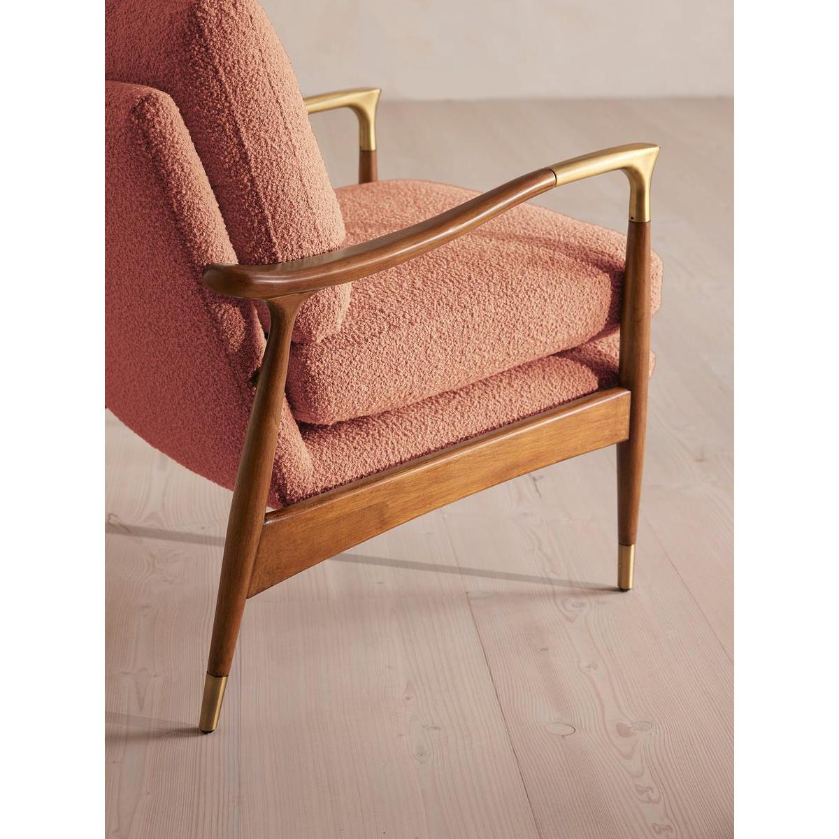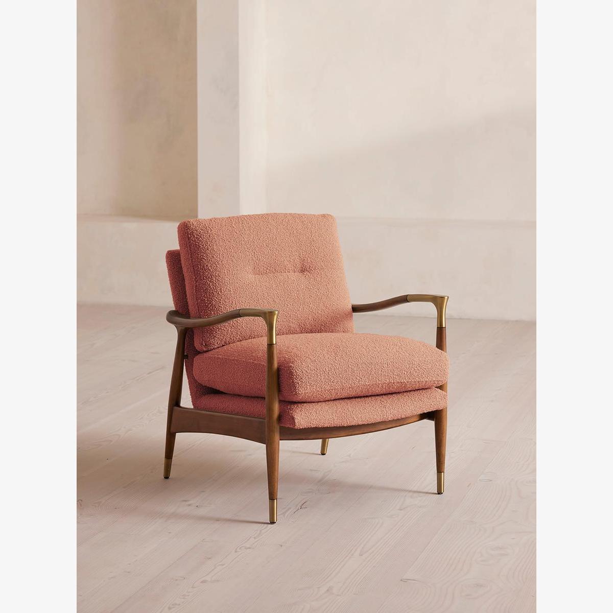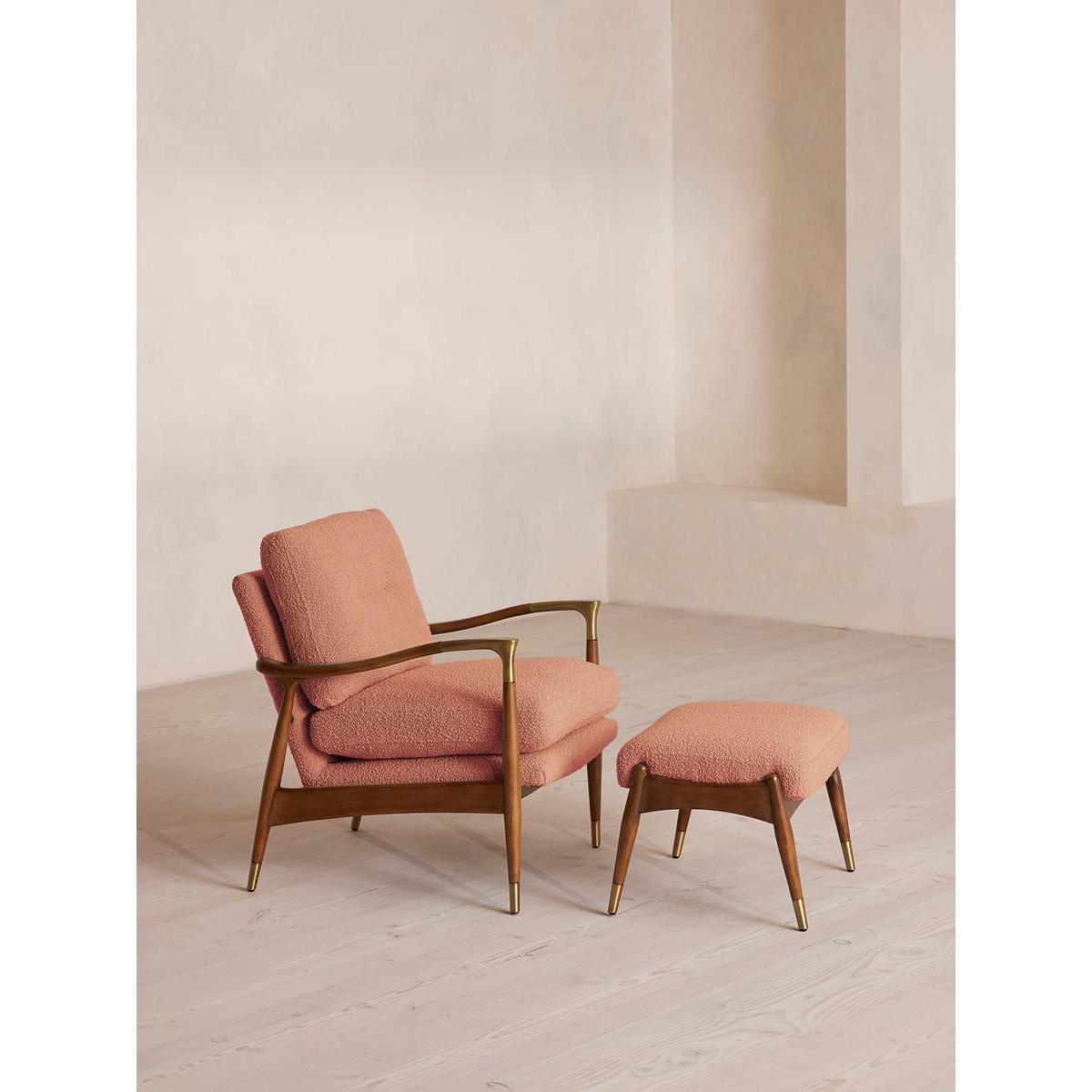 I’m a fan of this coral boucle armchair for the way its warm hue and soft, textured wool immediately lift a scheme without overpowering it. Its sleek wooden frame and brass detailing suit mid-century modern, Scandi or contemporary settings, and the subtle buttoning on the back adds just enough structure to keep it from looking too laid-back. For styling, pair it with a slim, lacquered side table in soft cream or light oak and add a deep-pile wool rug to tie the room together. A single cushion in a complementary shade - think muted terracotta or soft sage - will add interest without clutter, and placing it beside a sculptural floor lamp creates a perfect reading nook.