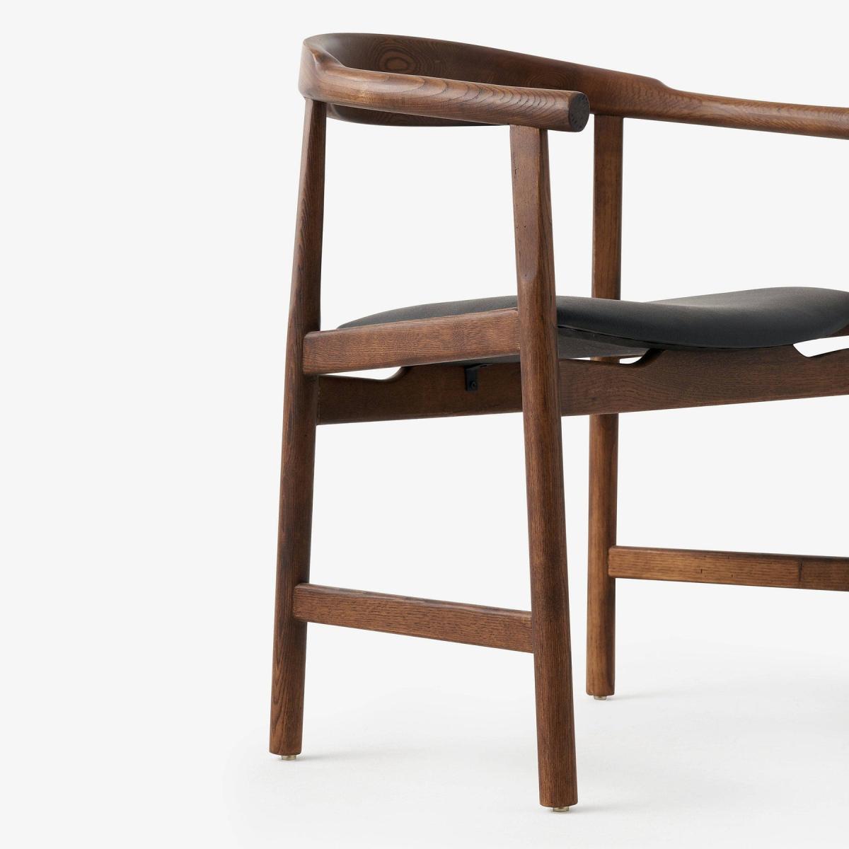 Our Theodore armchair will infuse your dining room with a mid-century aesthetic of simplicity and elegance. Its streamlined proportions, with subtle legs and a walnut frame, demonstrate strength, while its leather seat provides comfort and luxury. Theodore's inviting appearance allows it to work well as a standalone piece, but it also pairs well with a dining table or desk, adding a touch of versatile style to your home.
