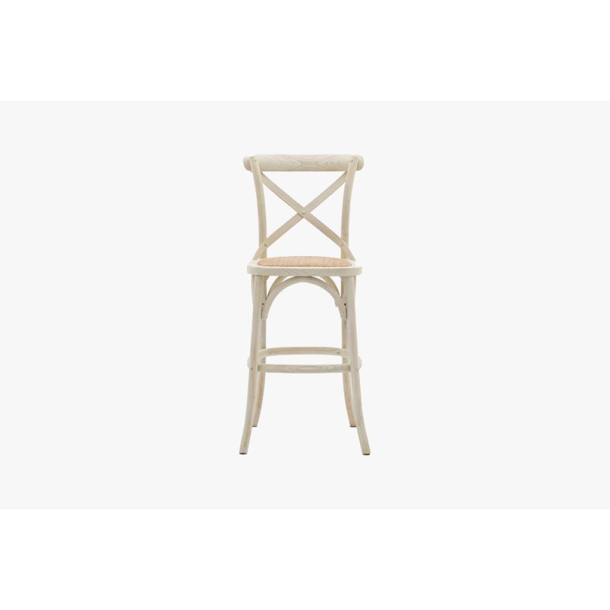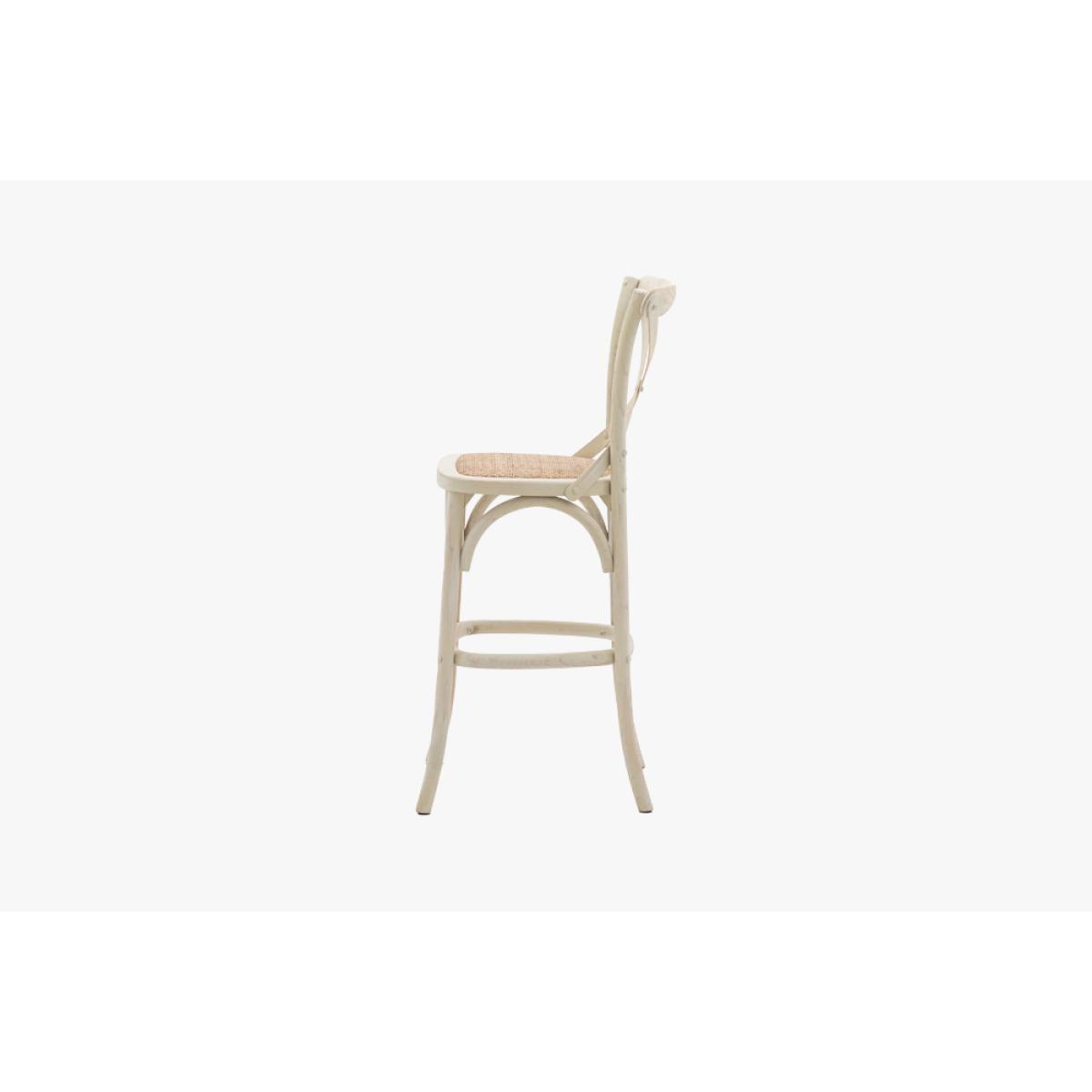 Relax with a croissant & a coffee in true Parisian style while enjoying the quality and craftsmanship of the Theodore Bar Stool. The stylish white frame features an elegant crossover back and a traditional style hand woven natural rattan seat.