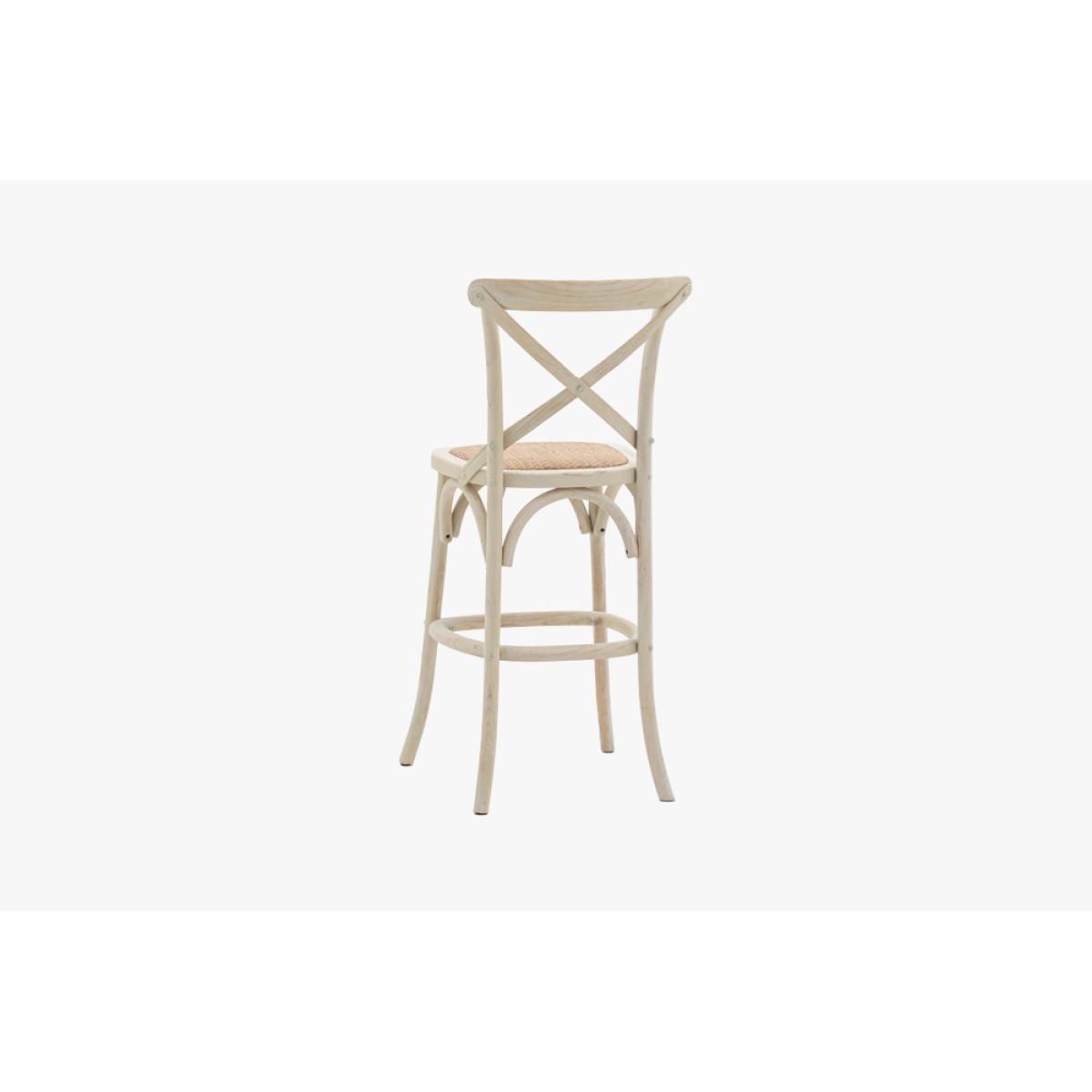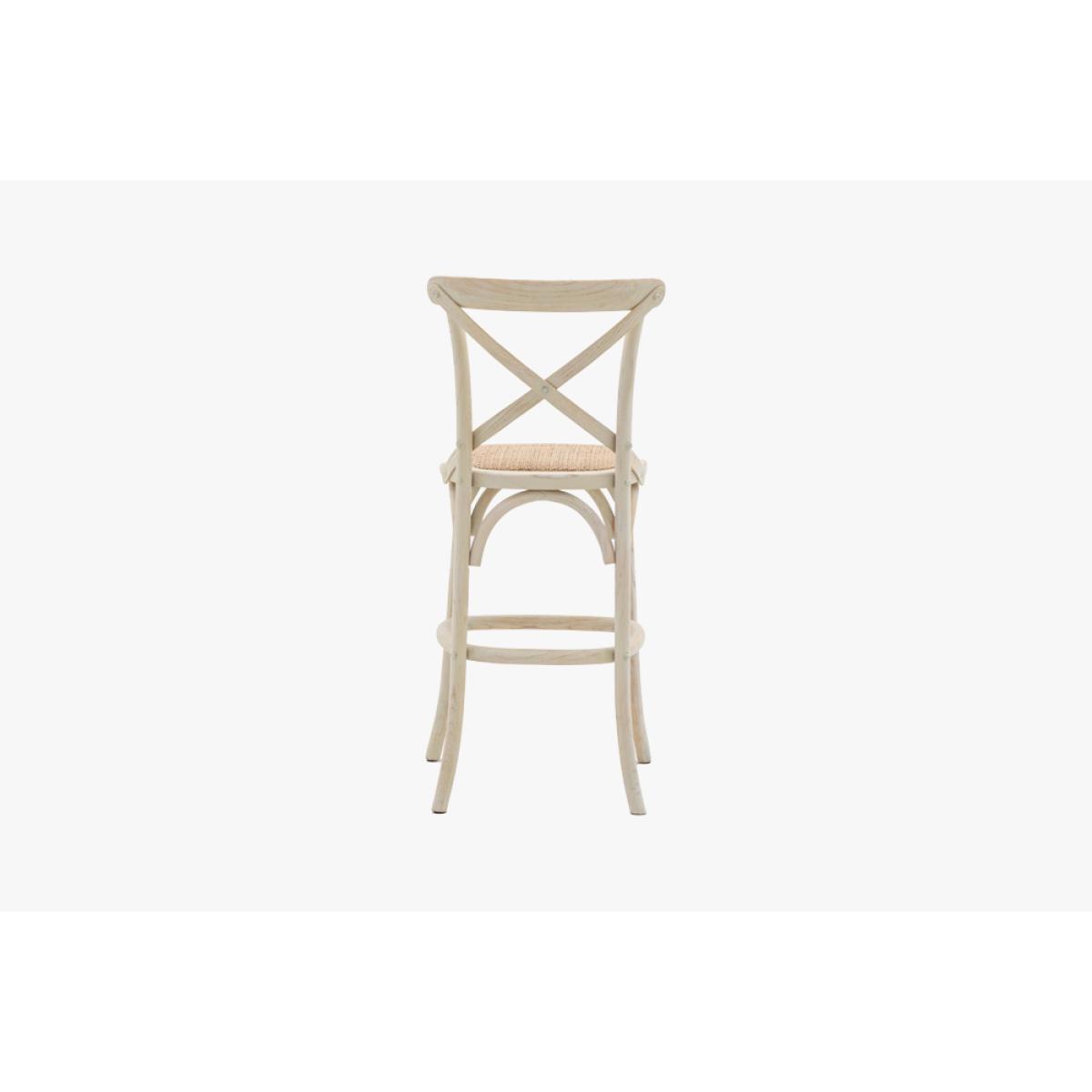 Relax with a croissant & a coffee in true Parisian style while enjoying the quality and craftsmanship of the Theodore Bar Stool. The stylish white frame features an elegant crossover back and a traditional style hand woven natural rattan seat.