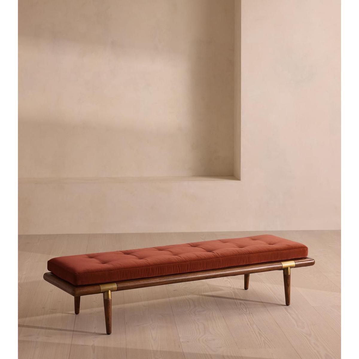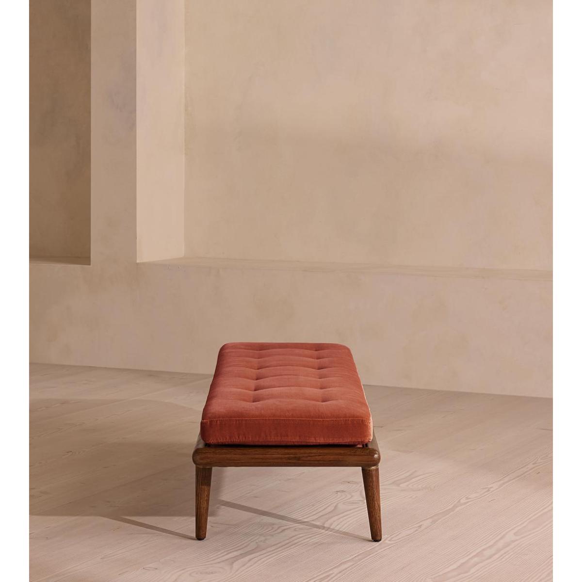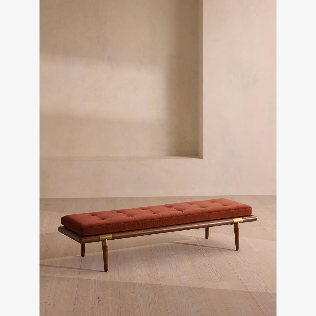 This velvet bench is a practical yet stylish addition, especially for interiors that blend classic and contemporary elements. The rust velvet adds warmth and richness, making it ideal for living rooms, bedrooms, or even an underutilised hallway. I love its versatility - it works well paired with neutral colour schemes or contrasting textures like metal or wood. Practical styling tips include using it as a statement entryway piece, a cosy spot at the foot of the bed, or even as extra seating in a dining or lounge area. To keep it looking its best, avoid placing it in direct sunlight to prevent fading, and consider a plush, patterned cushion for added comfort and visual interest.