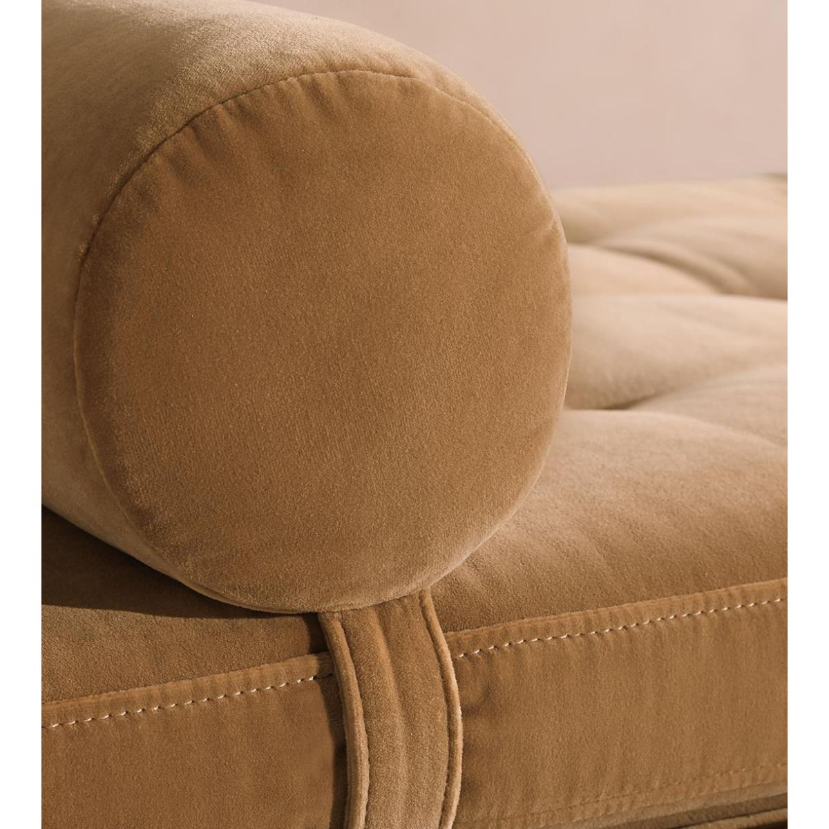 The Theodore Daybed in camel velvet is a versatile piece that combines practicality with a touch of luxury, making it ideal for both small and larger spaces. I love its understated elegance and the warm tone of the velvet, which works particularly well in neutral-toned, contemporary, or mid-century inspired interiors. To style it effectively, consider layering with a couple of textured cushions or a cosy throw to enhance comfort. It can serve as a chic guest bed or an eye-catching lounge piece in a bedroom or living room. For a polished look, pair it with brass or wood accents, and keep the surrounding decor minimal to let the velvet stand out.
