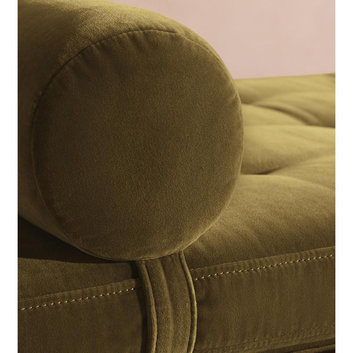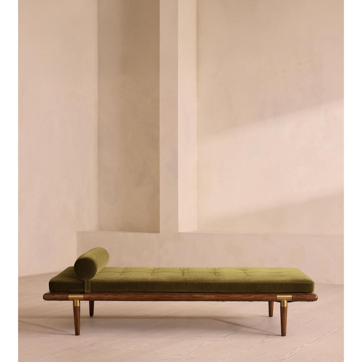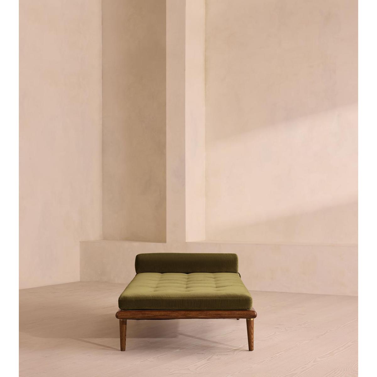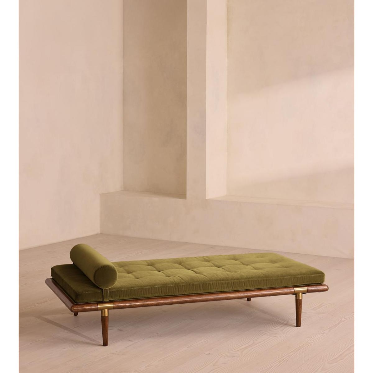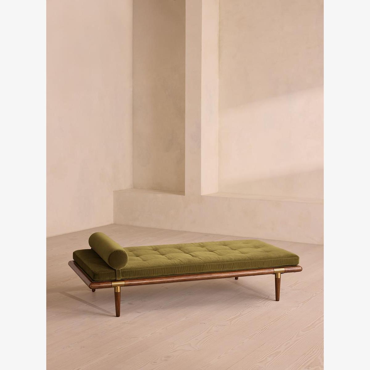 I’m a big fan of this olive velvet daybed for its versatility and understated elegance. Its muted tone works beautifully in both contemporary and traditional interiors, adding a touch of colour without overwhelming the space. It’s ideal for smaller rooms as a statement piece or in a guest bedroom where comfort and style are key. Practical styling tips include layering with neutral or patterned cushions to soften its look, and pairing it with a simple rug to define the area. It works equally well with metallic accents or natural wood furniture, making it adaptable to various interior themes. Overall, it’s a smart choice for incorporating comfort with a sophisticated touch.