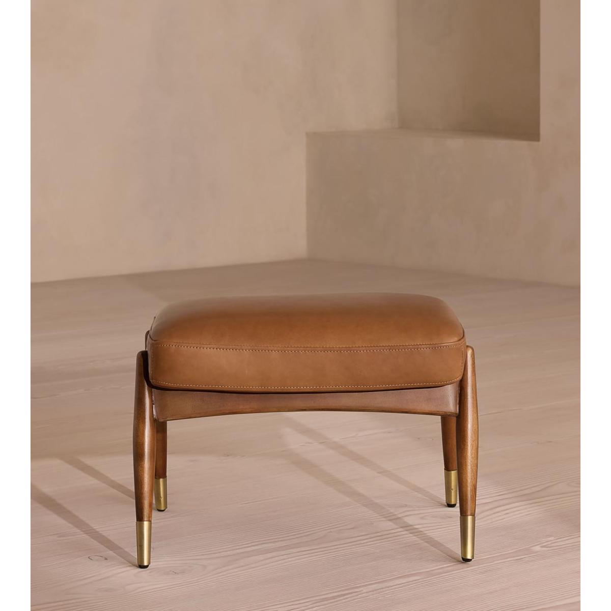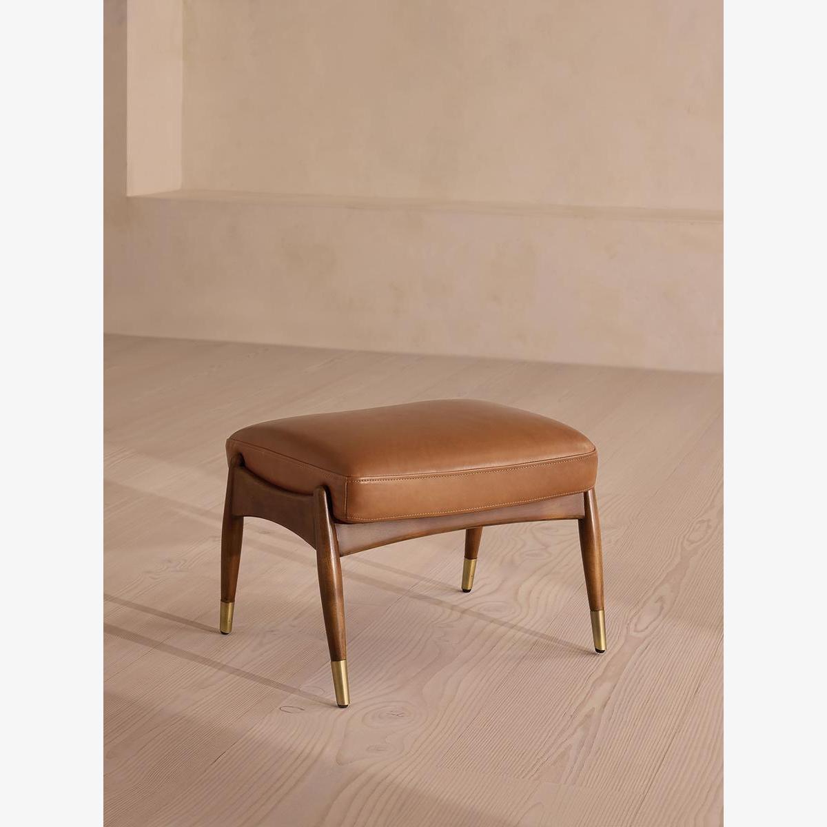 A hand-crafted solid birch frame is finished with a feather-wrapped cushion upholstered in leather. Taking cues from the designs seen throughout Soho House 40 Greek Street, our Theodore footstool is upholstered in chestnut leather. Its comfortable cushion is held by a tapered birch frame trimmed with brass detailing.