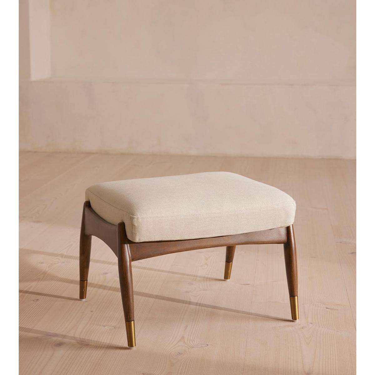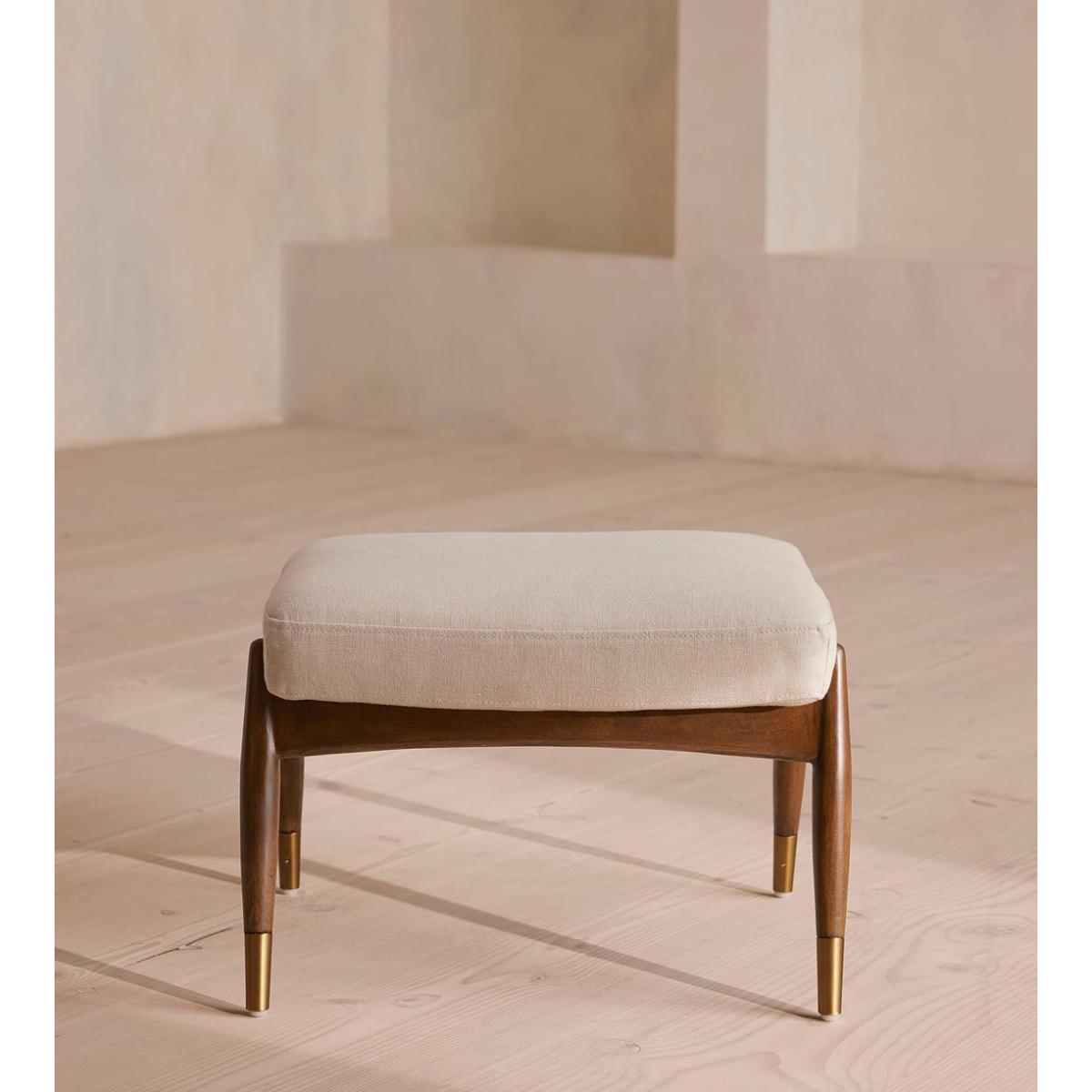 Theodore Footstool, Linen, Bisque