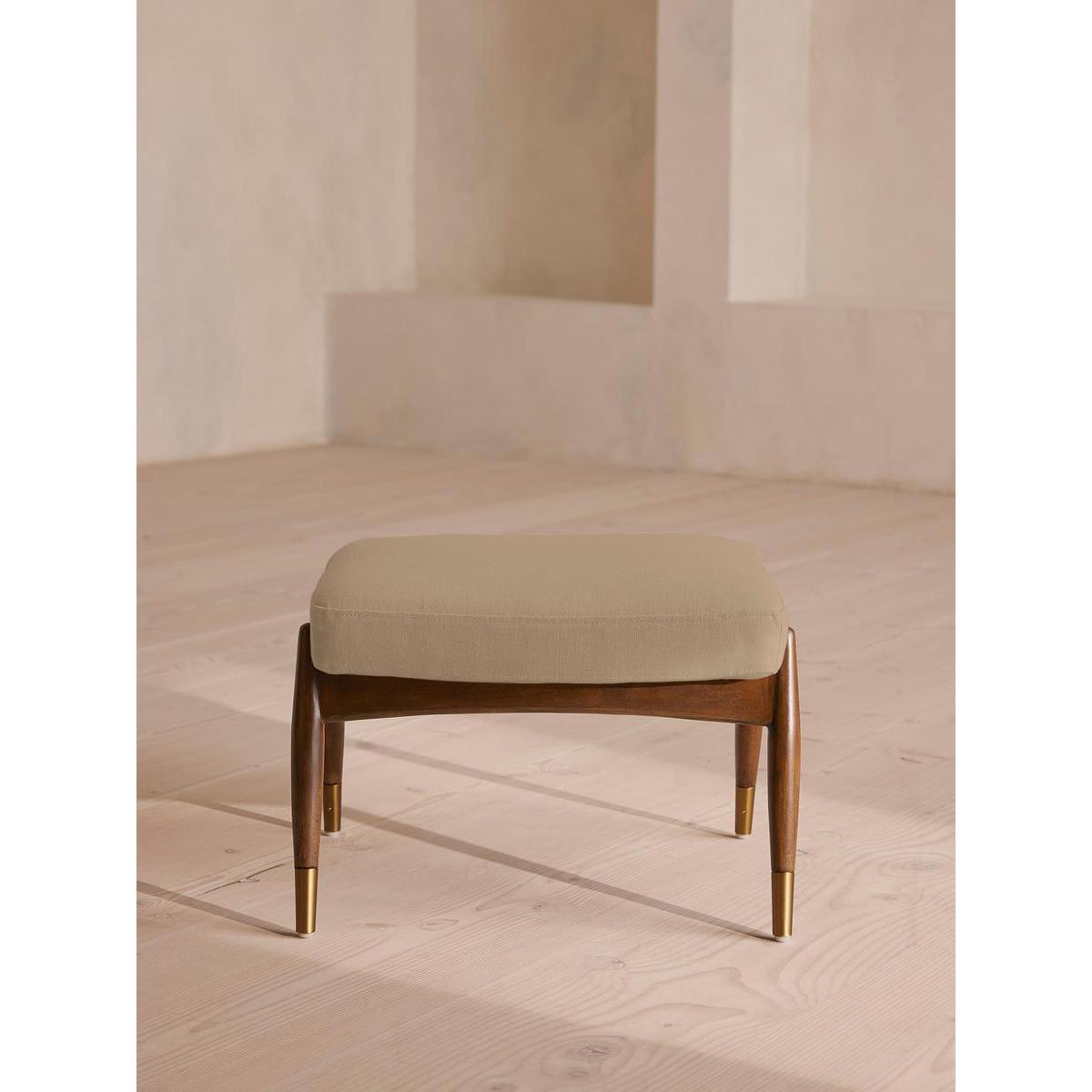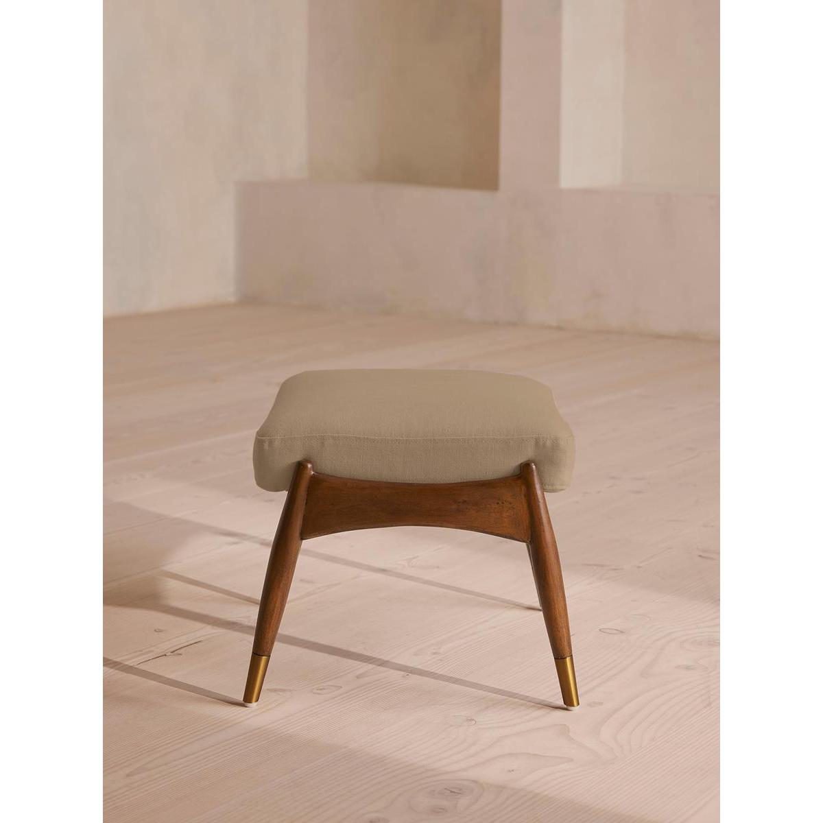 Taking cues from vintage designs at Soho House 40 Greek Street, the Theodore footstool is the perfect partner to our Theodore armchair for a cosy seating set-up. The tapered wood frame features a feather-wrapped foam cushion for optimum comfort when putting your feet up, upholstered in natural linen.