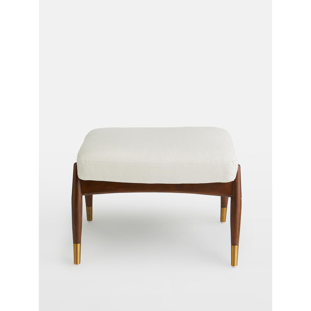 Taking cues from vintage-inspired designs at 40 Greek Street, our Theodore footstool will add a fresh focal point to your living space. It has a comfortable, deep-sit shape with a down and feather-wrapped foam cushion upholstered in natural linen. The tapered birch-wood frame and brass detailing on the legs complement the clean lines. Tapered birch-wood frame Brass-detailed legs Upholstered in natural linen Feather and down-wrapped foam cushion Inspired by 40 Greek Street