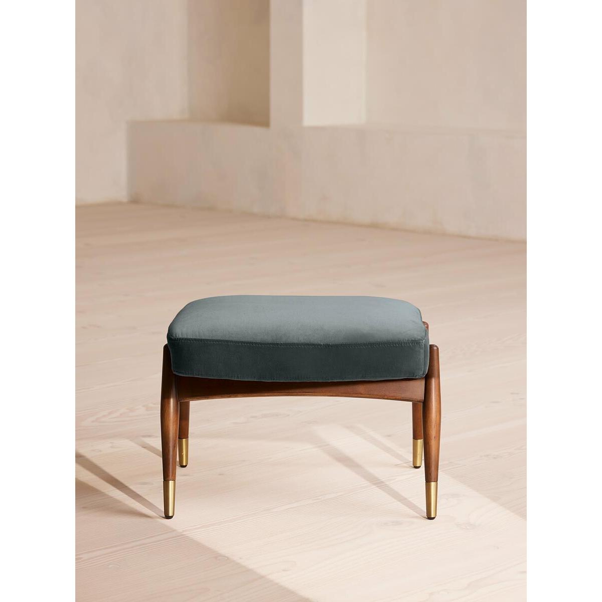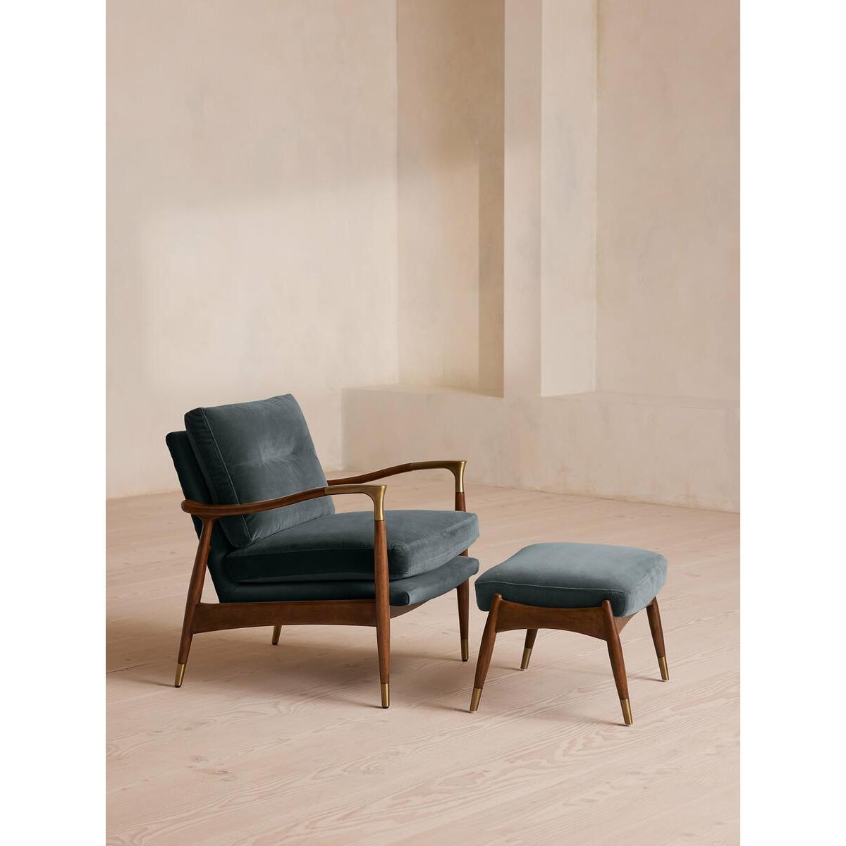 Taking cues from vintage-inspired designs at 40 Greek Street, our Theodore footstool will add a fresh focal point to your living space. It has a comfortable, deep-sit shape with a down and feather-wrapped foam cushion upholstered in rich velvet. The Tapered birch-wood frame and brass detailing on the legs complement the clean lines. Tapered birch-wood frame Brass-detailed legs Upholstered in cotton velvet Feather and down-wrapped foam cushion Inspired by 40 Greek Street Matching Armchair available here
