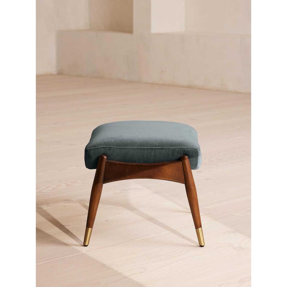 I love this footstool’s versatile shape and the richly textured velvet in grey blue, which adds a touch of understated elegance. It works particularly well in contemporary or mid-century inspired interiors, effortlessly introducing colour without overpowering the space. Style it alongside a statement armchair or as a complementary piece in a cosy corner; it’s equally practical as a place to rest your feet or use as extra seating when needed. For a balanced look, pair it with neutral tones or mix it with other textured accessories for added depth. The combination of its sleek design and lush fabric makes it a subtle yet stylish addition to both relaxed and more polished interiors.