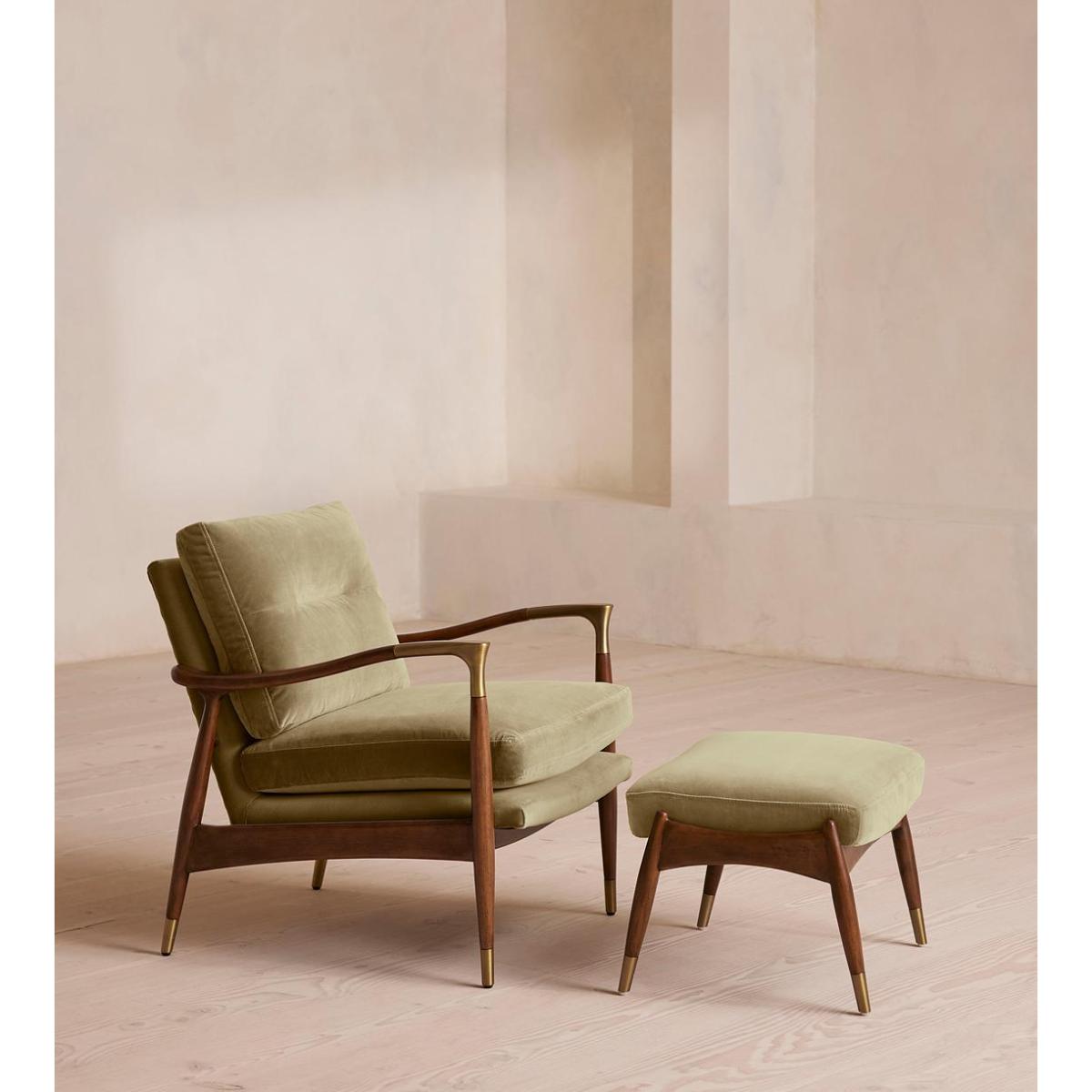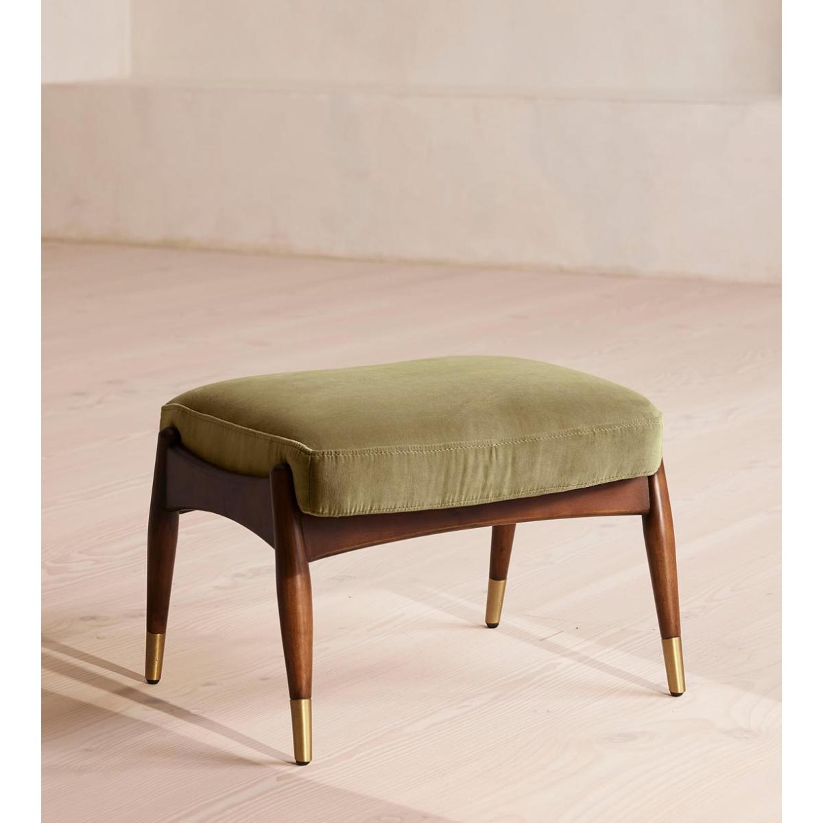 Taking cues from vintage designs at Soho House 40 Greek Street, our Theodore footstool is the perfect partner to our Theodore armchair and will add a fresh focal point to your living space. A feather-wrapped foam cushion is upholstered in lichen velvet, while the tapered birch wood frame and brass detail on the legs complement its clean lines. Tapered birch wood frame footstool Brass-detailed legs Upholstered in lichen cotton velvet Feather and down-wrapped foam cushion Also available in other fabrics and colourways Inspired by Soho House 40 Greek Street