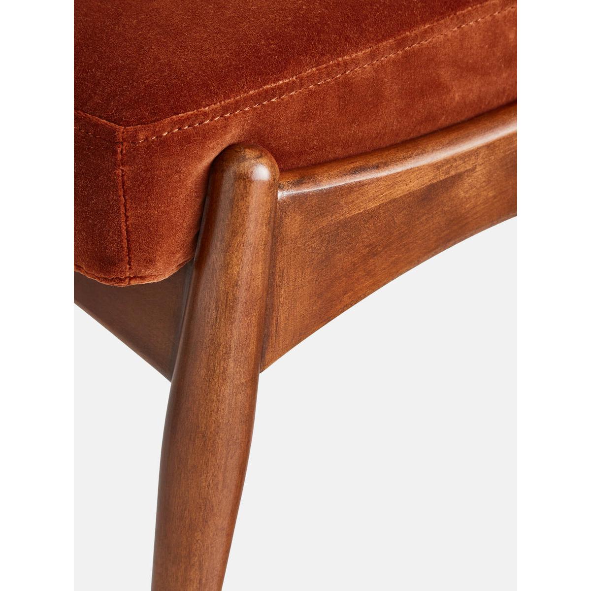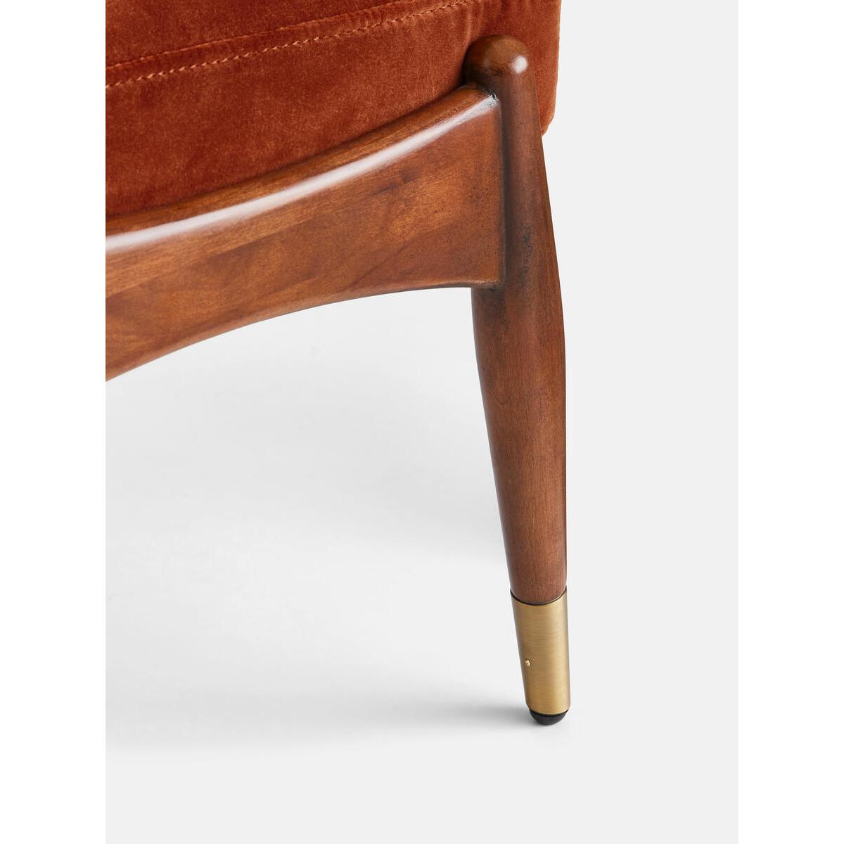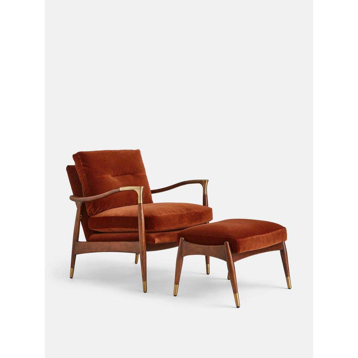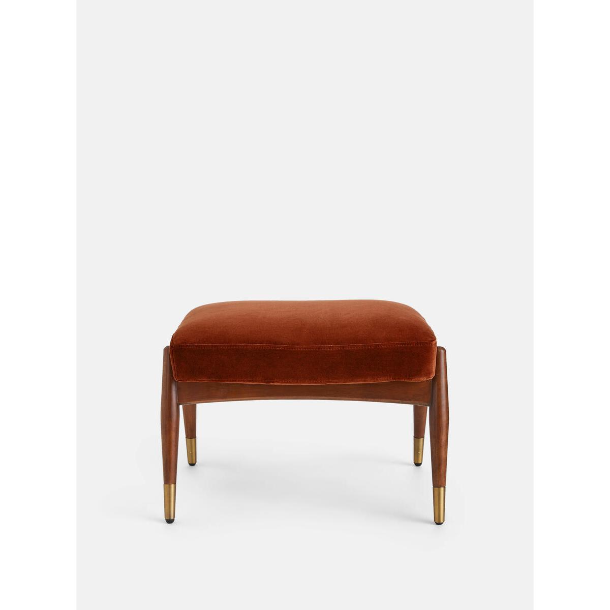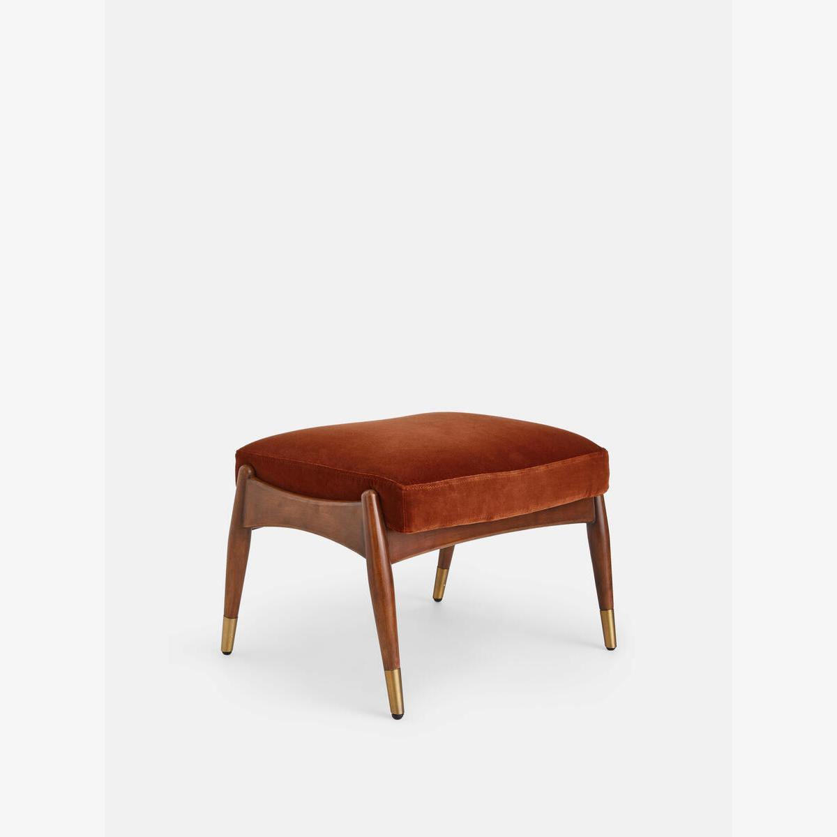 Taking cues from vintage designs at Soho House 40 Greek Street, our Theodore footstool is the perfect partner to our Theodore armchair and will add a fresh focal point to your living space. A feather-wrapped foam cushion is upholstered in rust velvet, while the tapered birch wood frame and brass detail on the legs complement its clean lines. Tapered birch wood frame footstool Brass-detailed legs Upholstered in rust cotton velvet Feather and down-wrapped foam cushion Also available in other fabrics and colourways Inspired by Soho House 40 Greek Street