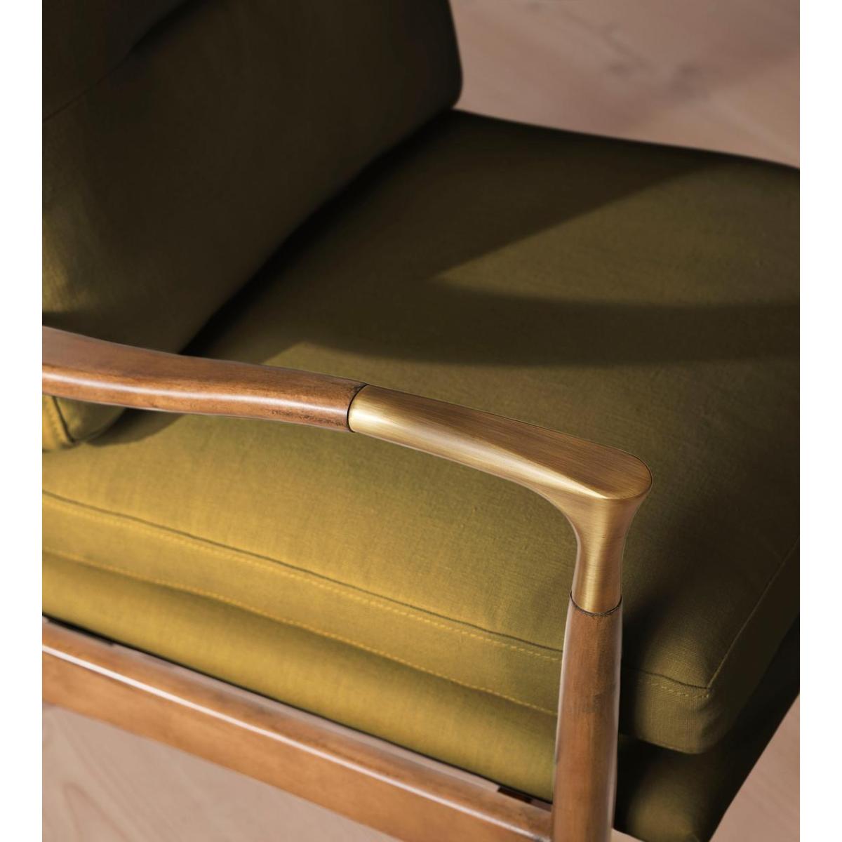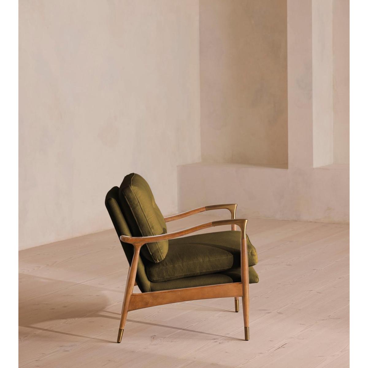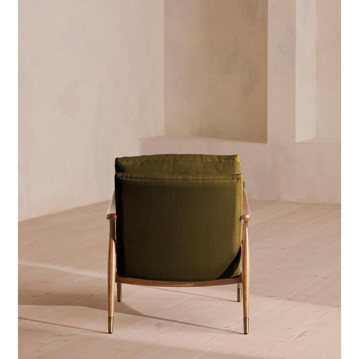I love this armchair for its classic yet versatile style. The linen in olive adds a touch of understated elegance, making it a great piece for both contemporary and traditional interiors. It works particularly well in relaxed living rooms, reading nooks, or even as a statement piece in a sophisticated bedroom. For styling, consider pairing it with textured cushions or layered throws in neutral or earthy tones to complement the linen. Its wooden frame lends itself to pairing with other natural materials like rattan or brass, creating a warm and inviting space. Practical tips include placing it near a good reading light or window to make the most of its cosy appeal.