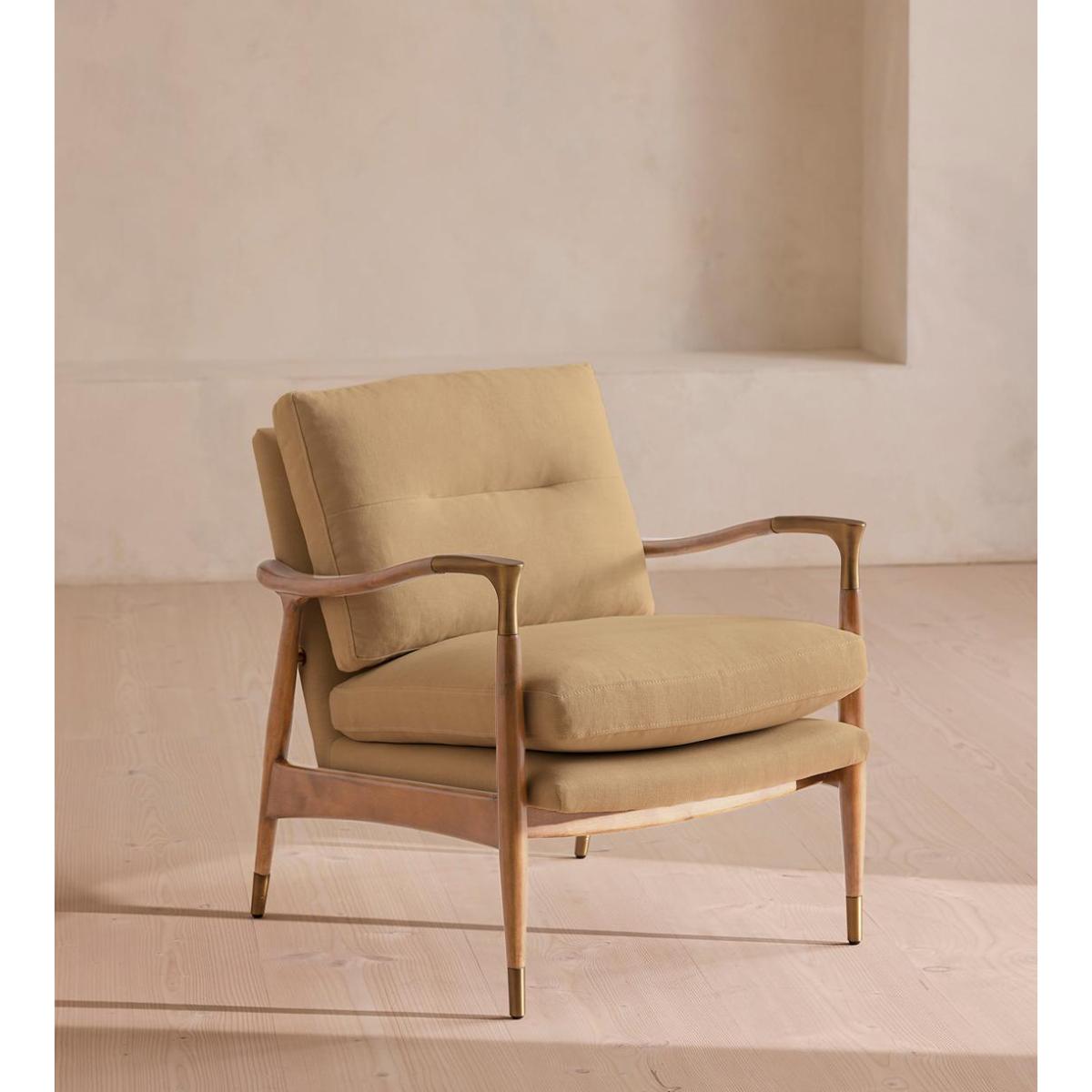 I love the Theodore oak armchair for its timeless, understated appeal. Its linen fabric in wheat pairs beautifully with both classic and contemporary interiors, making it a versatile choice. It works particularly well in neutral, understated spaces like relaxed living rooms or cosy reading nooks, but can also bring warmth to more eclectic schemes. For styling tips, consider pairing it with natural textures like a wool throw or a woven pouf, and add some cushions in contrasting fabrics or muted colours for added comfort. Its wooden frame lends itself to both minimal and layered looks, making it a reliable yet stylish addition to a range of interiors.