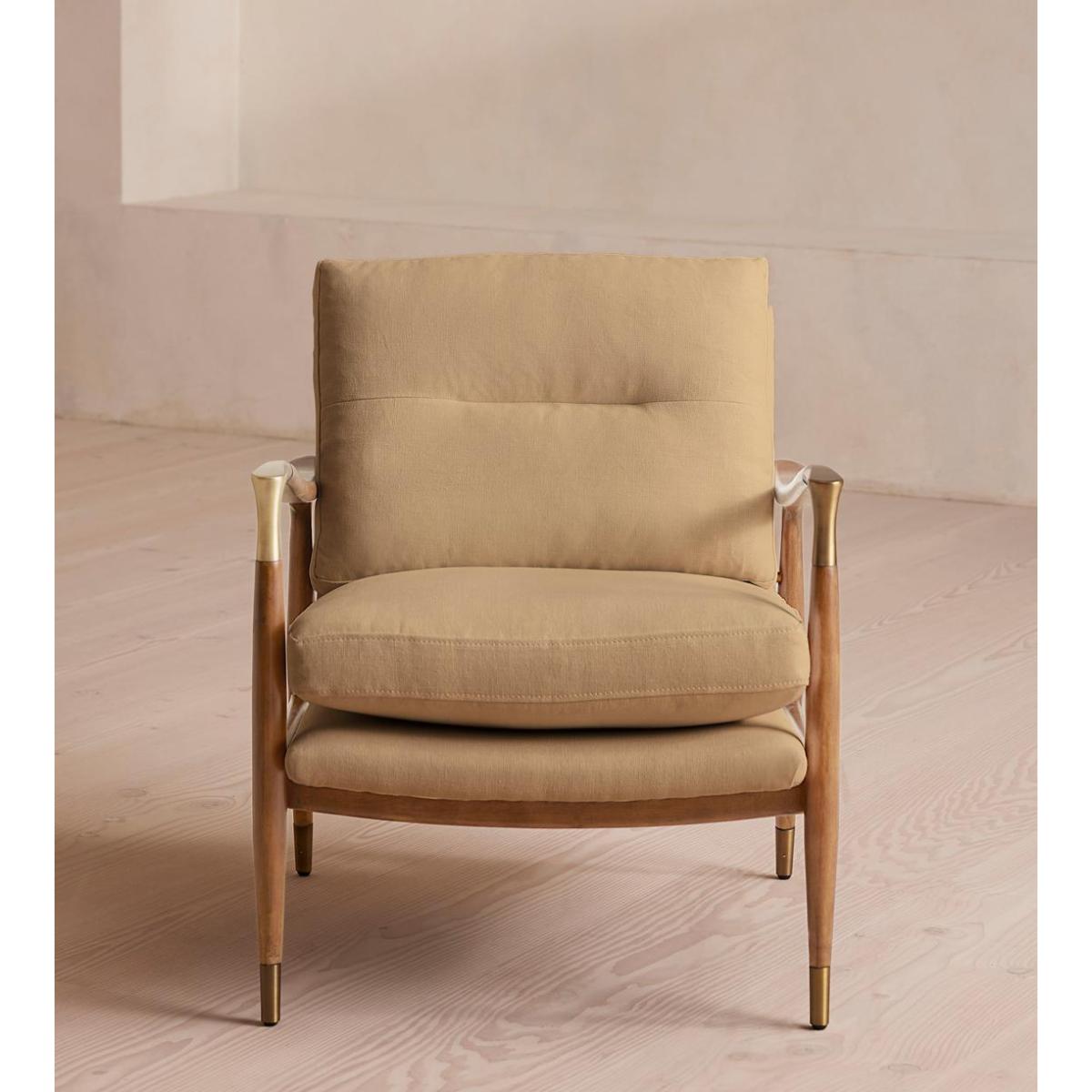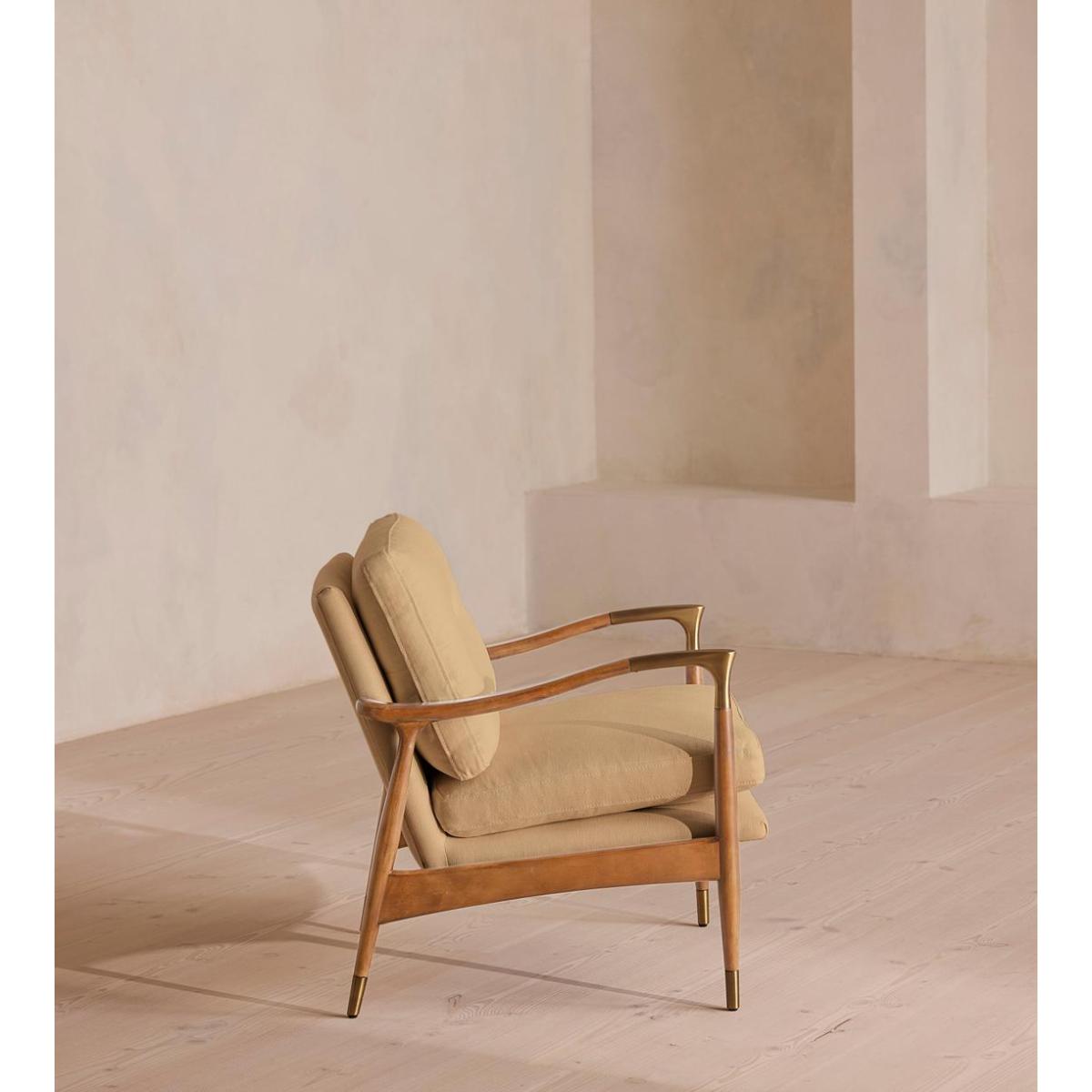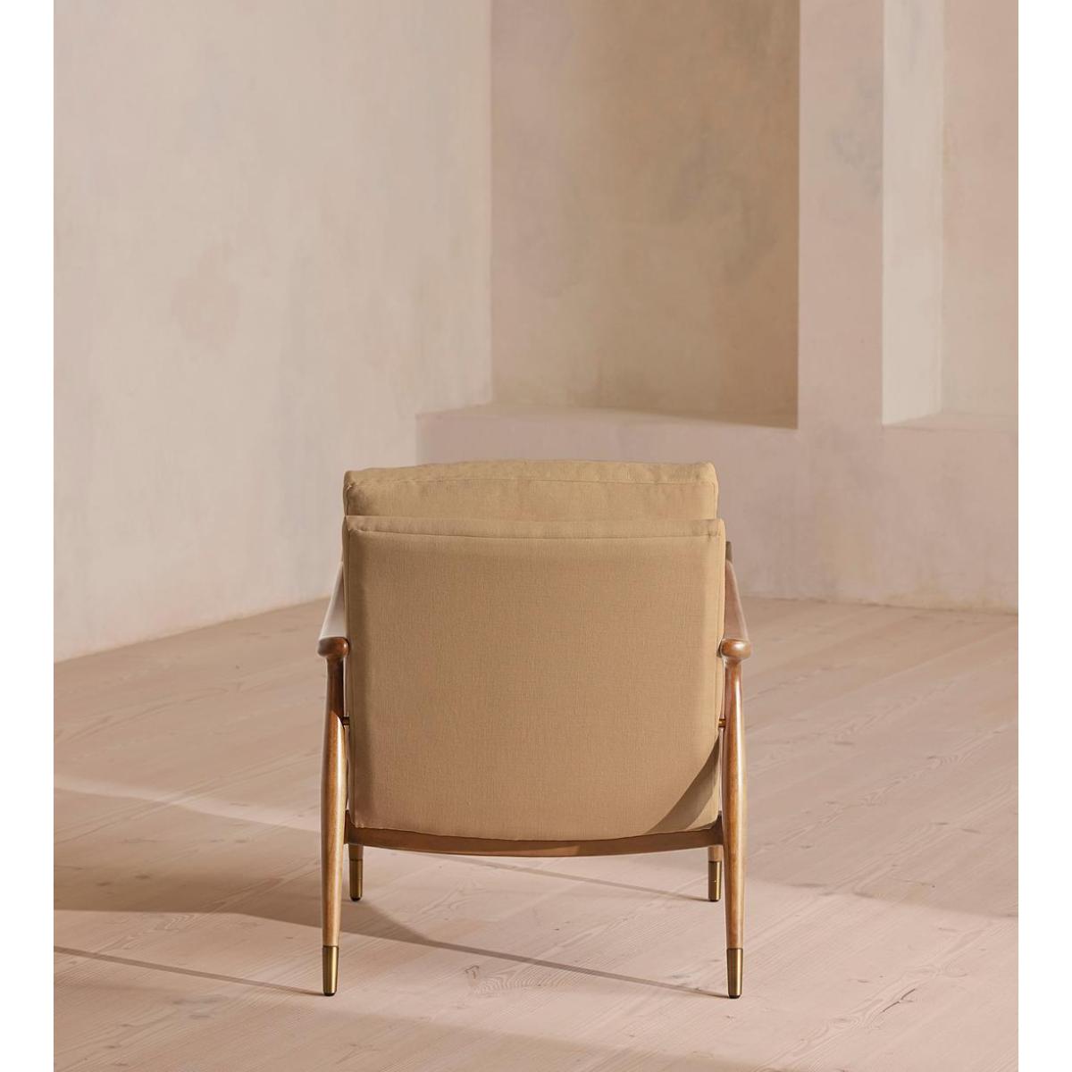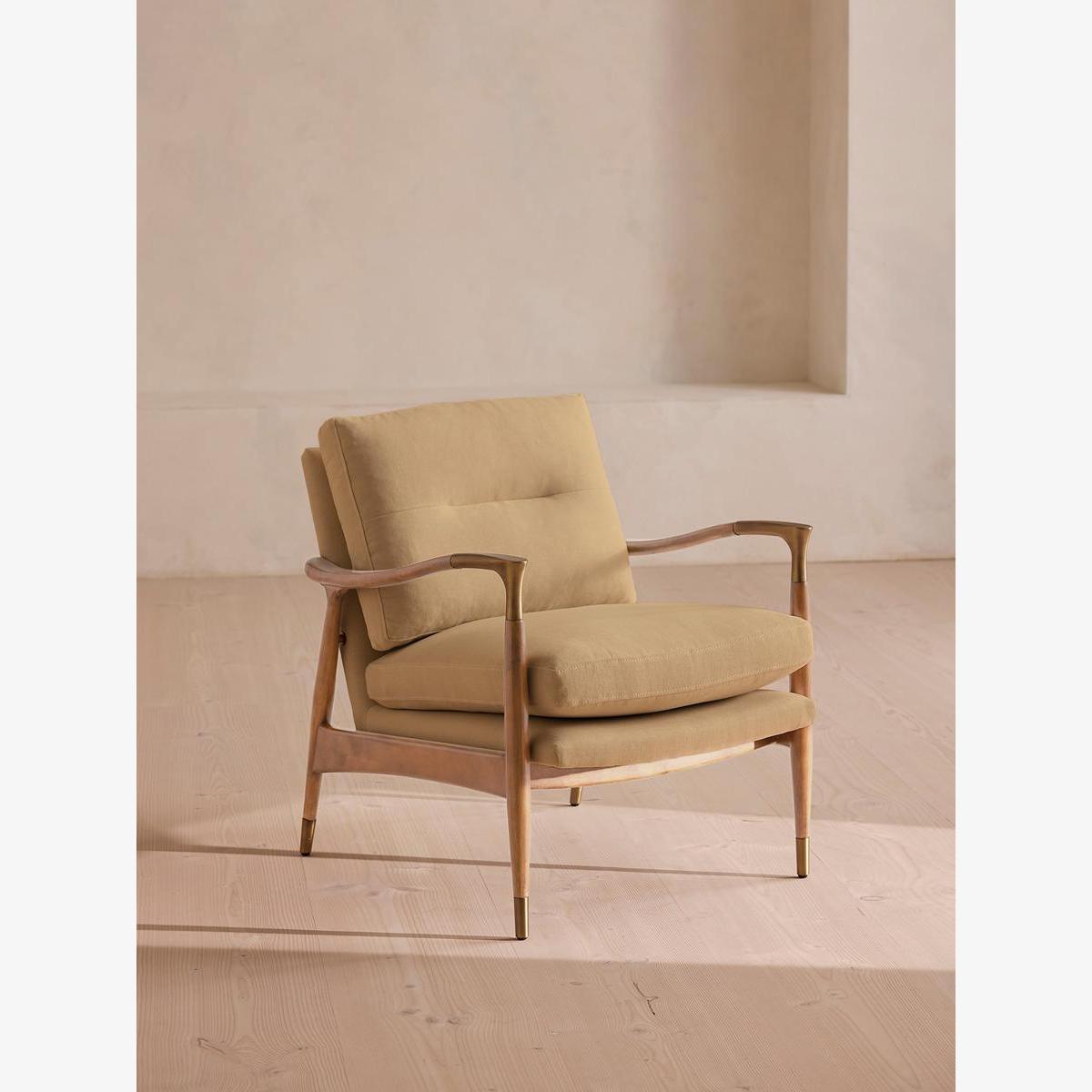 A style seen throughout our Houses, this armchair has a handcrafted frame fitted with linen upholstered cushions. Taking cues from the designs seen in Soho House 40 Greek Street, our Theodore armchair remains a House favourite. Its handcrafted, solid oak frame is fitted with down and feather-wrapped cushions for a comfortable, deep sit.