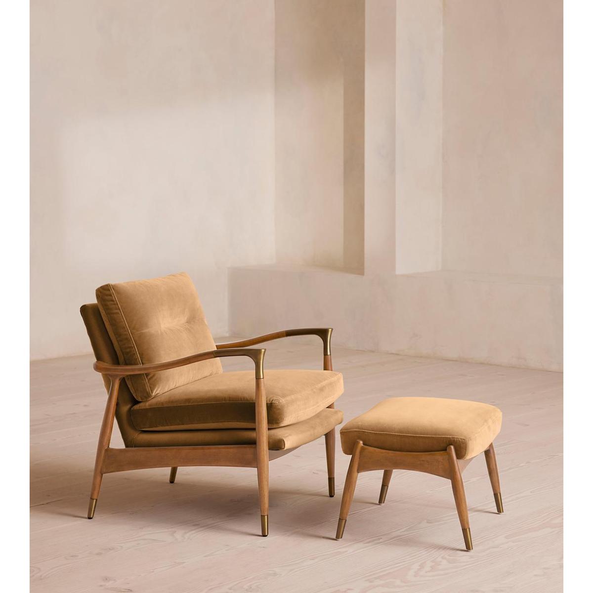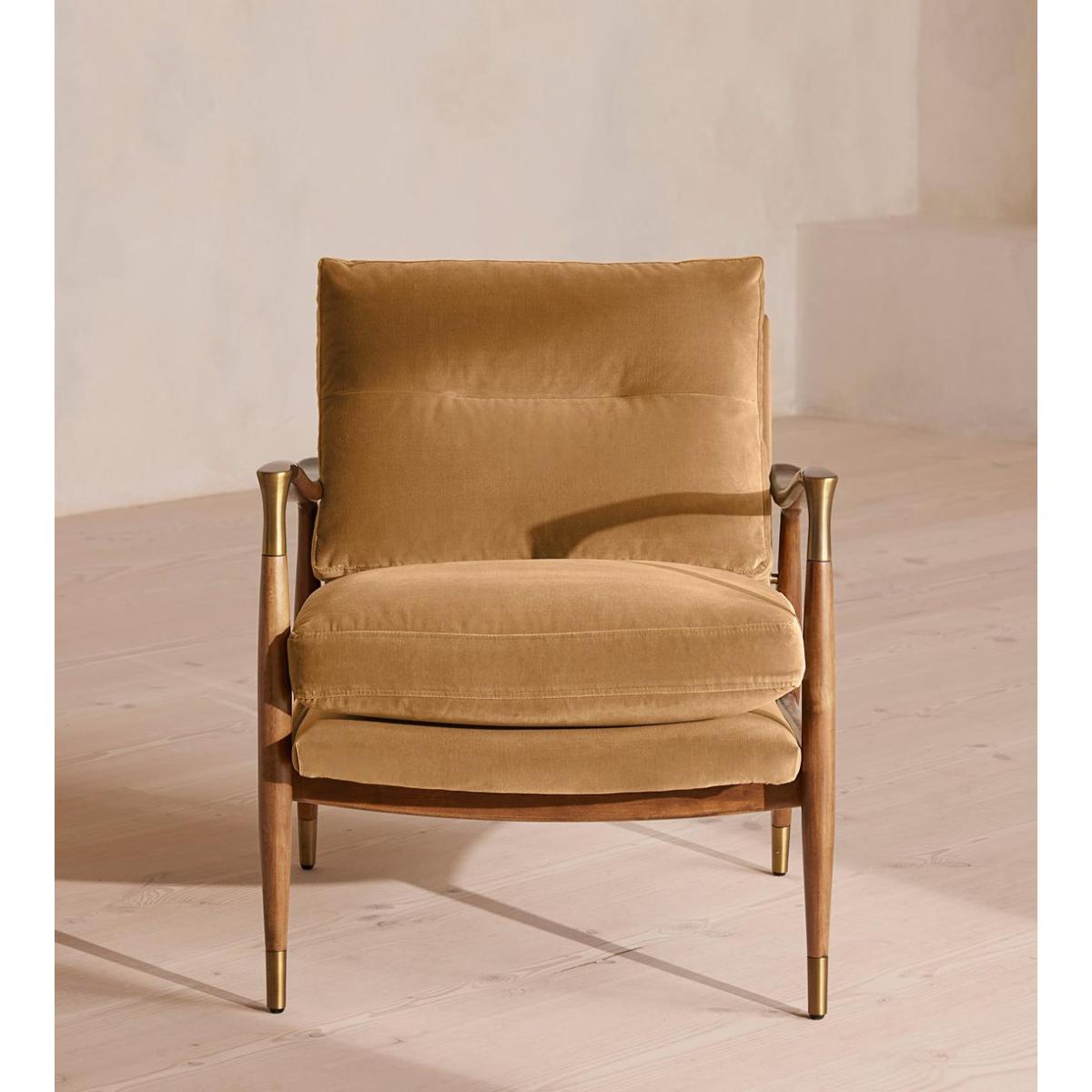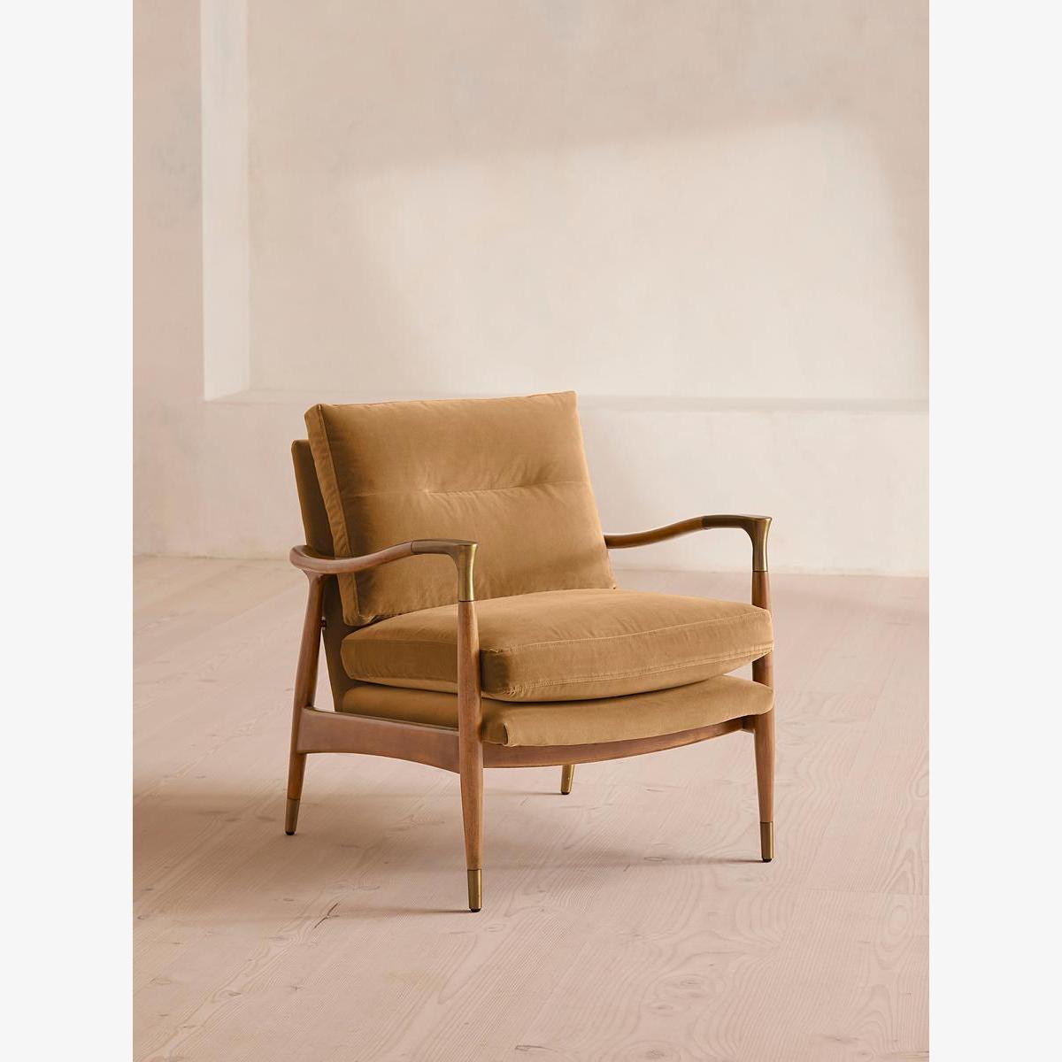 Theodore Oak Armchair, Velvet, Camel