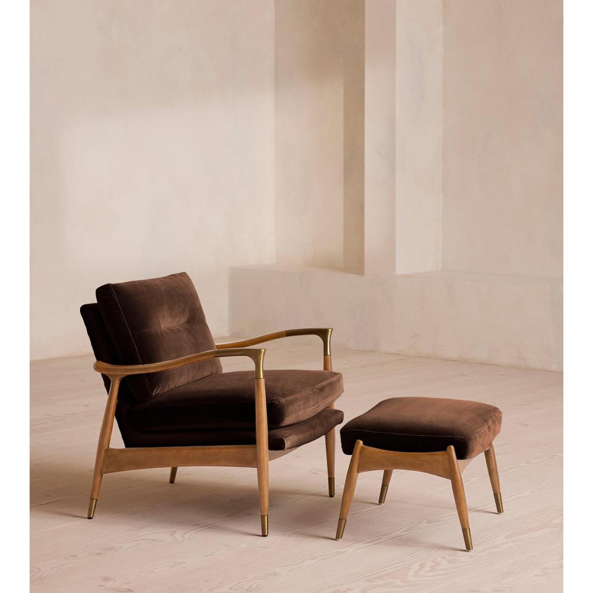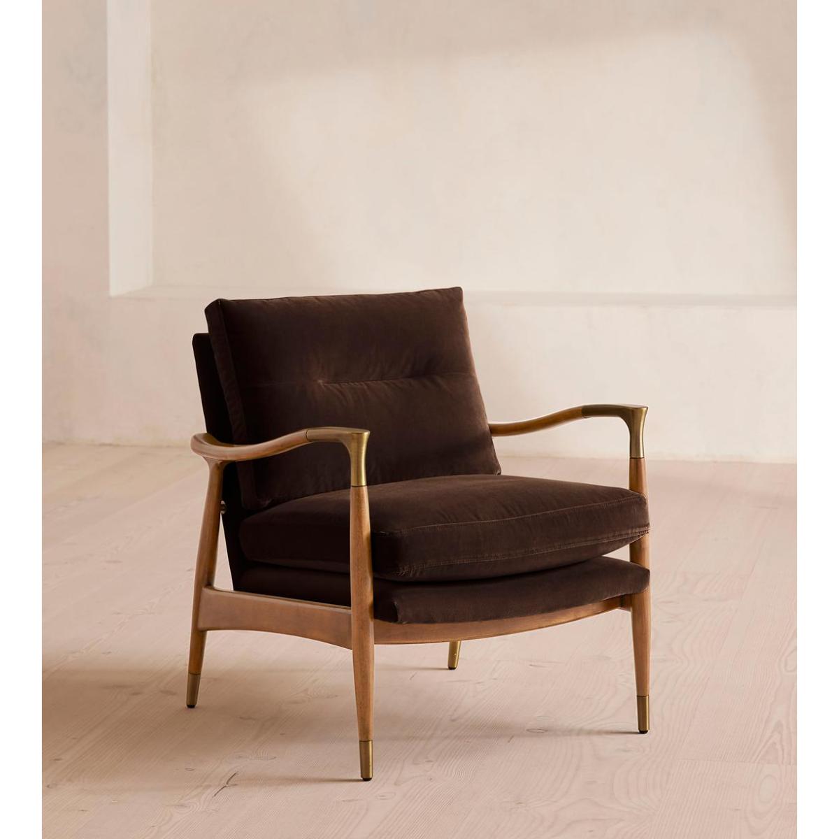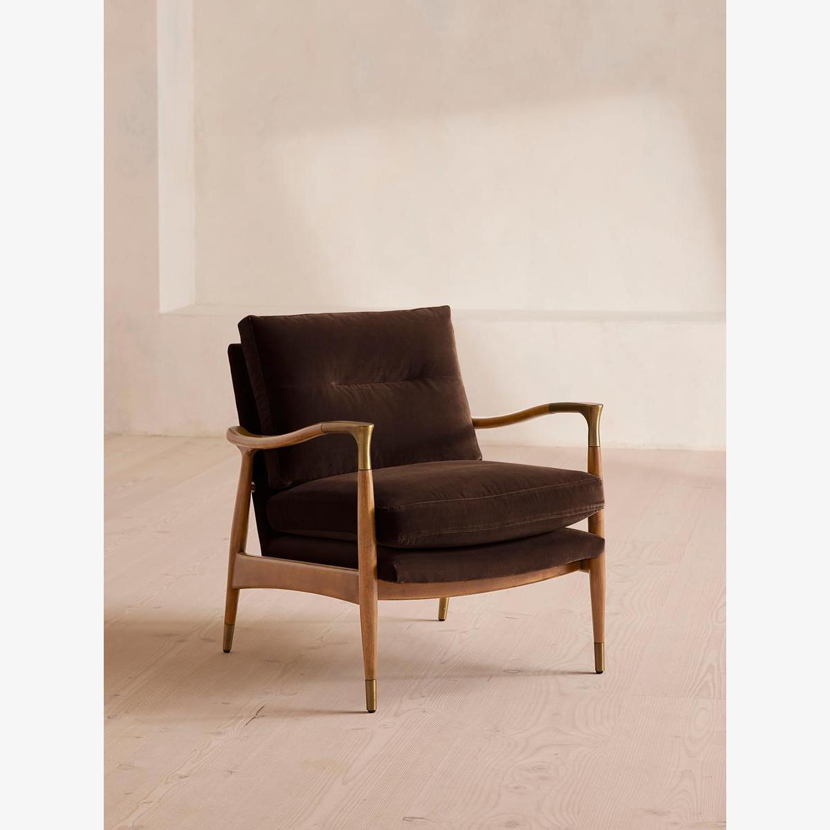 Theodore Oak Armchair, Velvet, Chocolate Brown