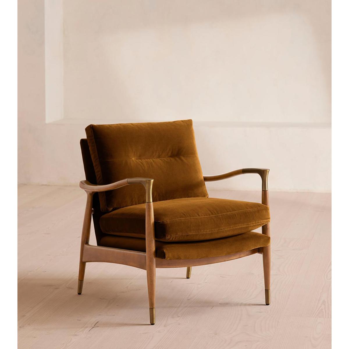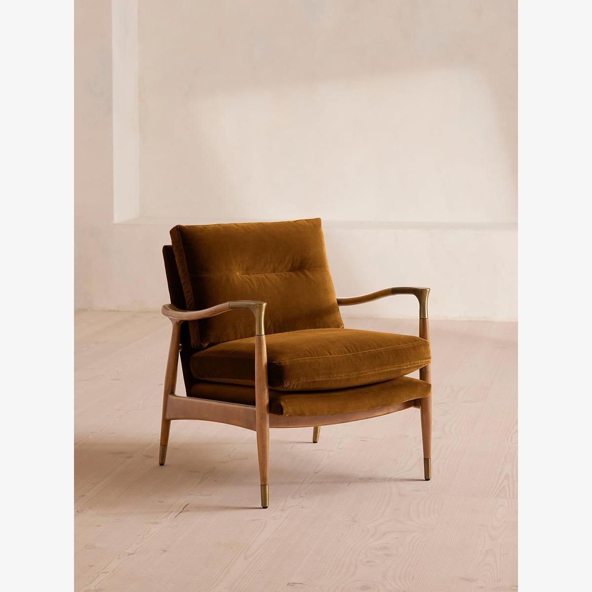 A style seen throughout our Houses, this armchair has a handcrafted frame fitted with velvet upholstered cushions. Taking cues from the designs seen in Soho House 40 Greek Street, our Theodore armchair remains a House favourite. Its handcrafted, solid oak frame is fitted with down and feather-wrapped cushions for a comfortable, deep sit.