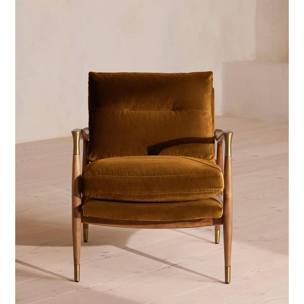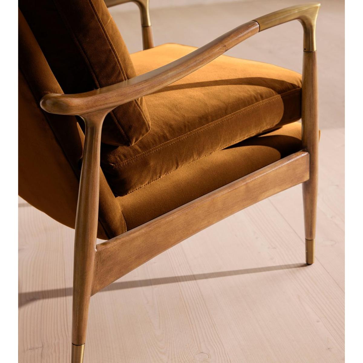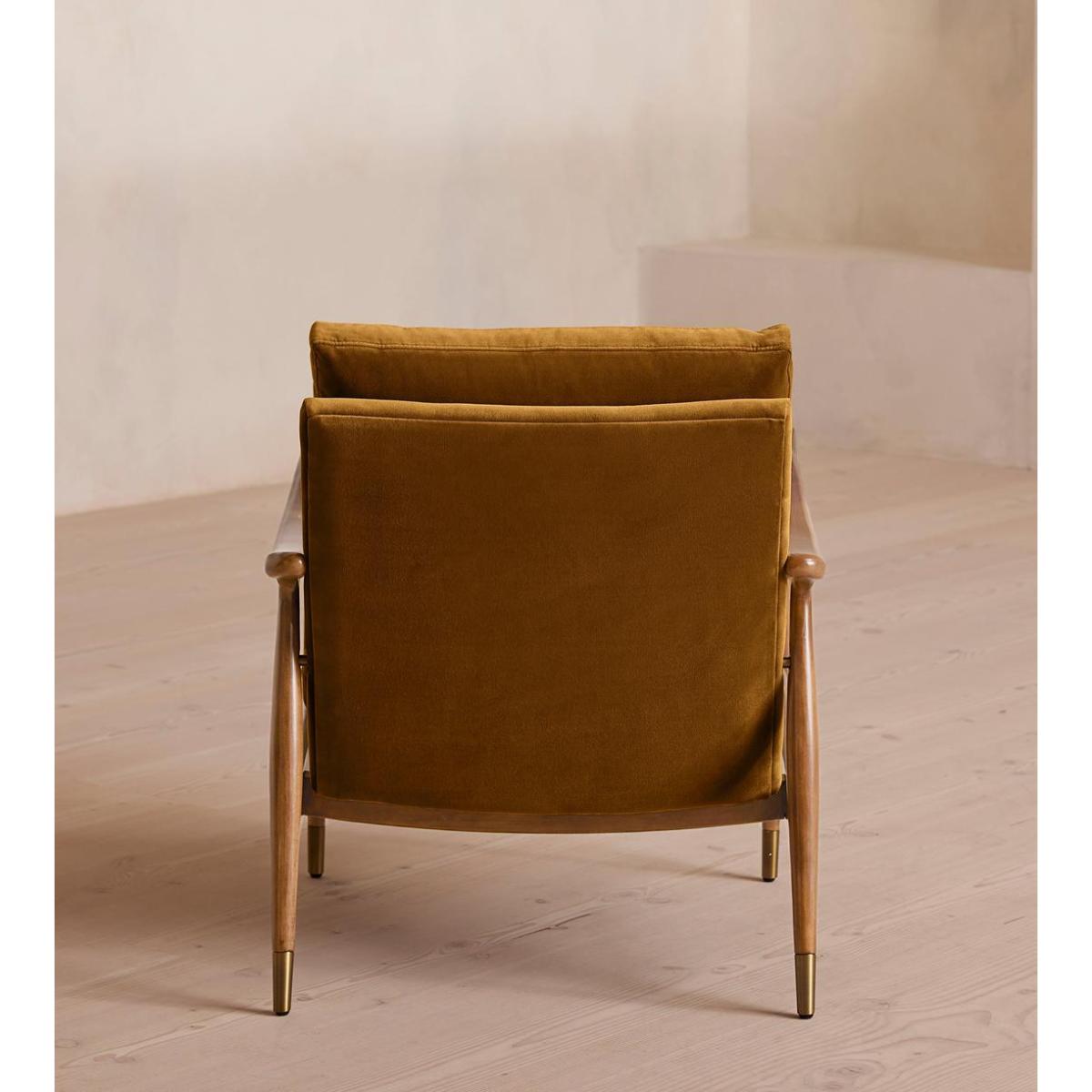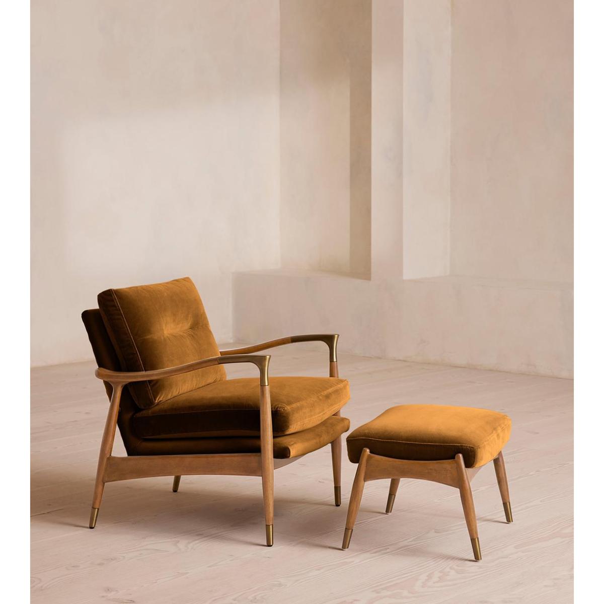 I love how the mustard velvet armchair adds a warm, inviting pop of colour to a variety of interiors. It works especially well in mid-century modern or Scandinavian schemes, where its understated wooden frame complements natural materials. To style it effectively, consider pairing it with neutral-toned cushions or a soft throw in muted shades to keep the look sophisticated. This chair is versatile enough to work as a statement piece in a living room or as a cosy reading nook in a bedroom. Keep the surrounding decor minimal to let its rich texture and colour shine, and it’ll instantly elevate the overall scheme.
