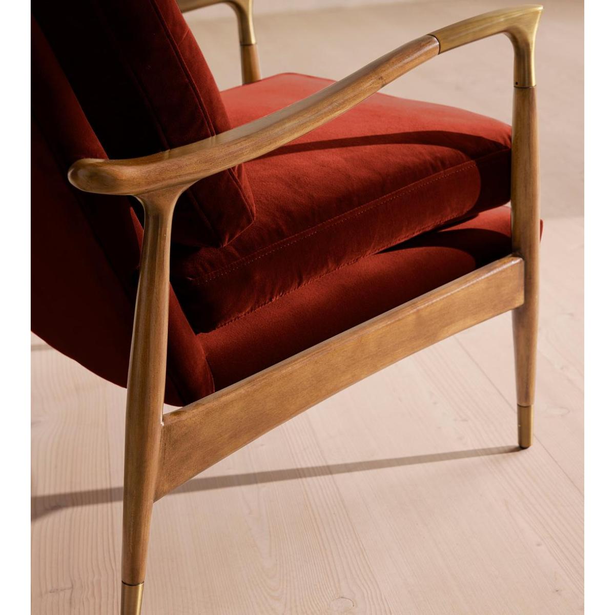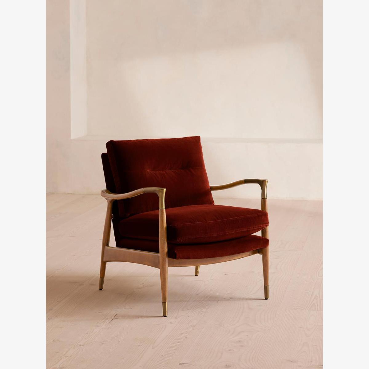 I love the Theodore Oak Armchair for its rich velvet rust upholstery, which adds warmth and a touch of luxury to any space. It works particularly well in living rooms or reading nooks that benefit from a cosy, inviting feel. When styling, consider pairing it with neutral-toned sofas or layered with patterned cushions to create a balanced look. Practical tip: since the velvet can be sensitive to marks, avoid placing it in high-traffic areas or near direct sunlight. Its classic oak frame lends itself beautifully to both contemporary and vintage interiors, making it versatile enough to serve as a statement chair or a subtle design touch depending on your overall scheme.