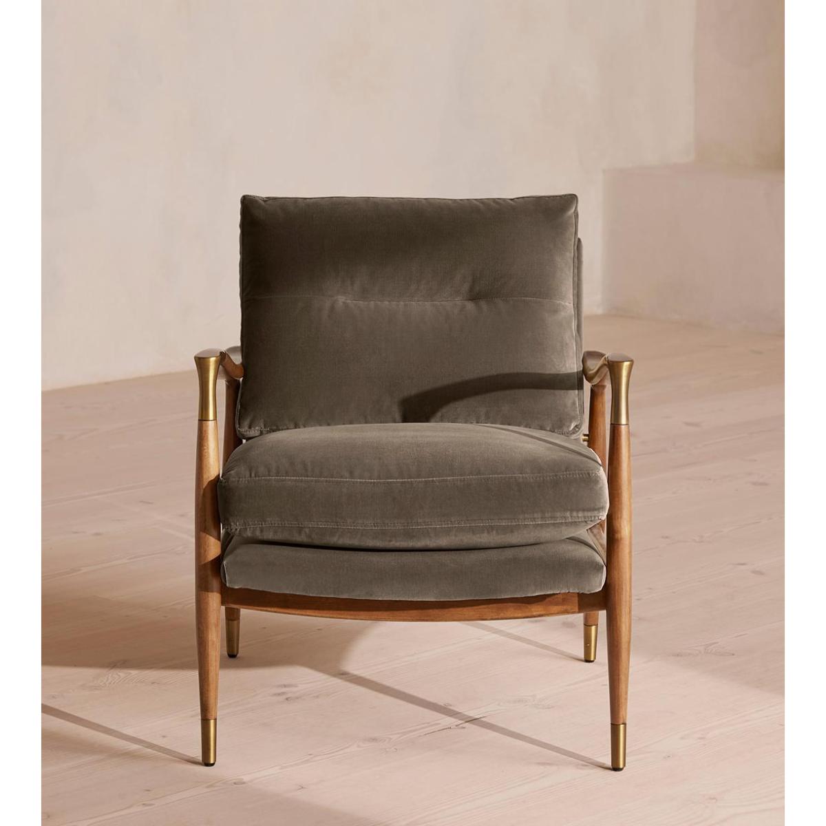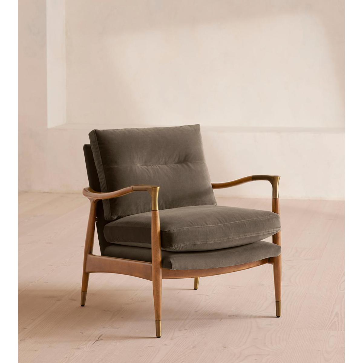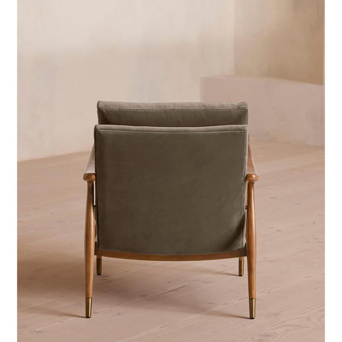 I love this armchair for its timeless appeal and sophisticated mix of materials. The taupe velvet adds a luxurious touch, while the wooden frame provides a warm, natural finish that works beautifully in both modern and traditional interiors. It’s a versatile piece that can anchor a living room corner or serve as a statement in a bedroom seating area. To style around it, consider pairing with textured cushions or a throw to enhance its plush appeal, and keep surrounding decor neutral or earthy to let the chair’s understated elegance shine through. Its compact size also makes it a practical choice for smaller spaces, offering comfort and style without overwhelming the room.
