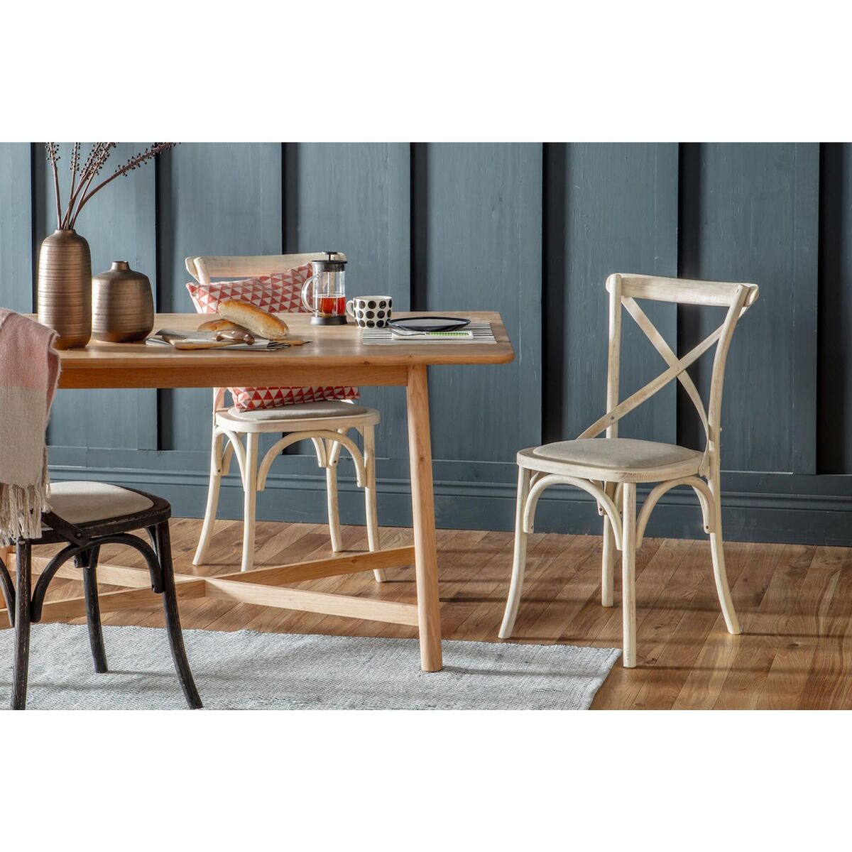I’m a big fan of these vanilla-washed oak dining chairs for their balance of warmth and simplicity. The pale finish makes them a versatile pick for Scandinavian or coastal schemes, while the classic cross-back silhouette nods to both farmhouse and modern interiors. Styling tip: pair them with a darker wood or matte black table to create a subtle contrast, then soften the look with linen seat pads in muted tones. They also sit nicely alongside a jute rug and botanical accents, keeping the overall feel relaxed yet considered.