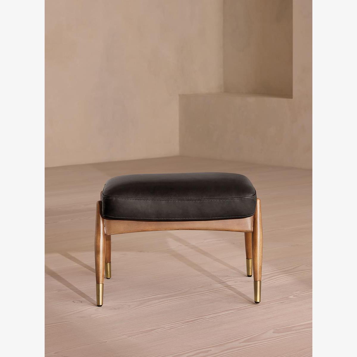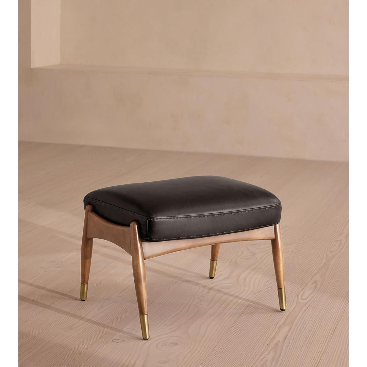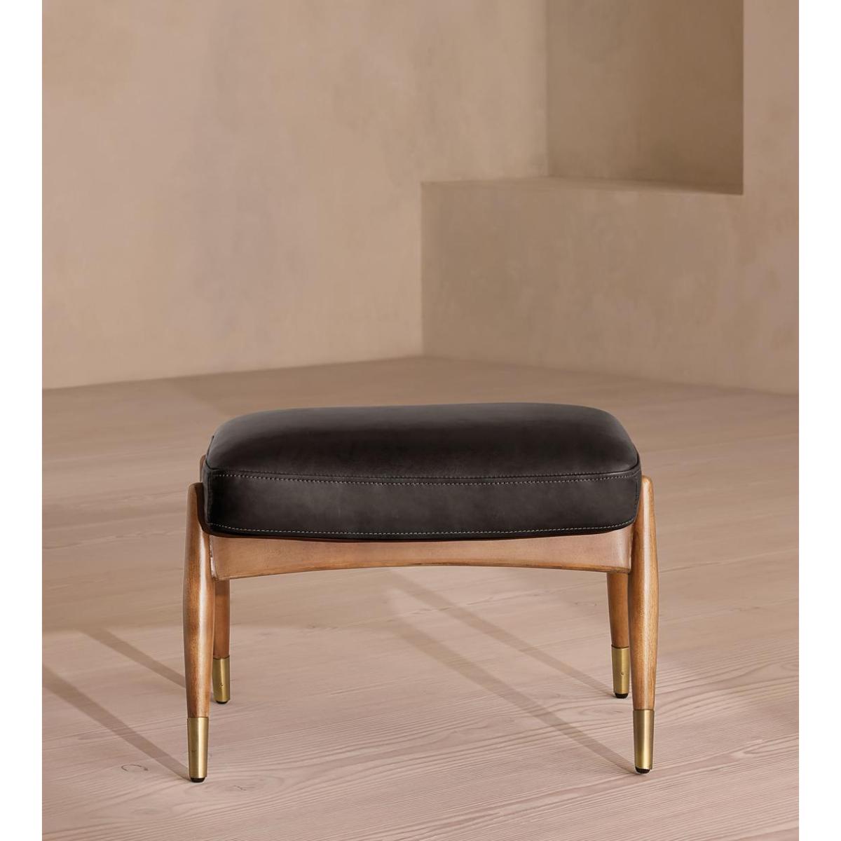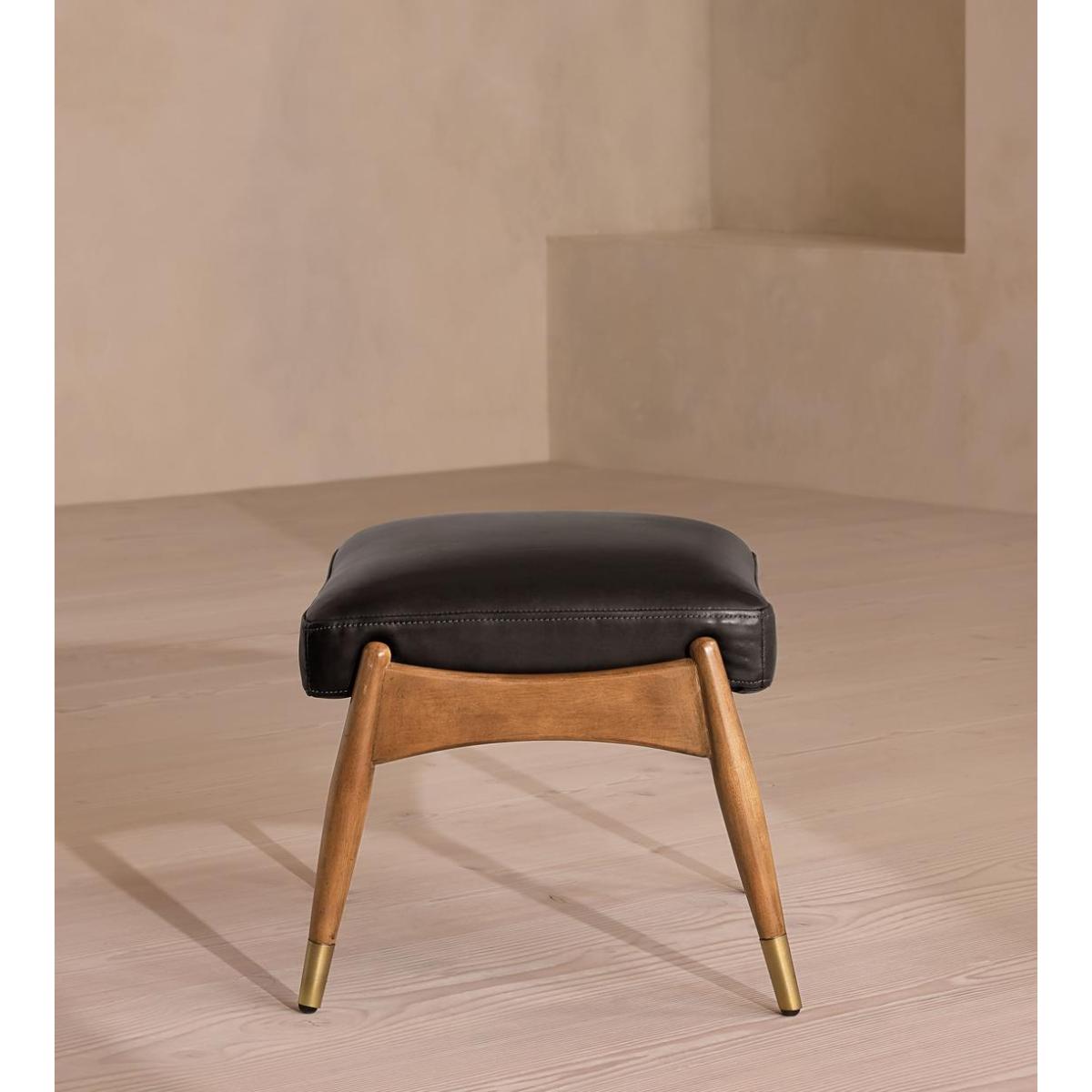 Theodore Oak Footstool Leather Virtue Black