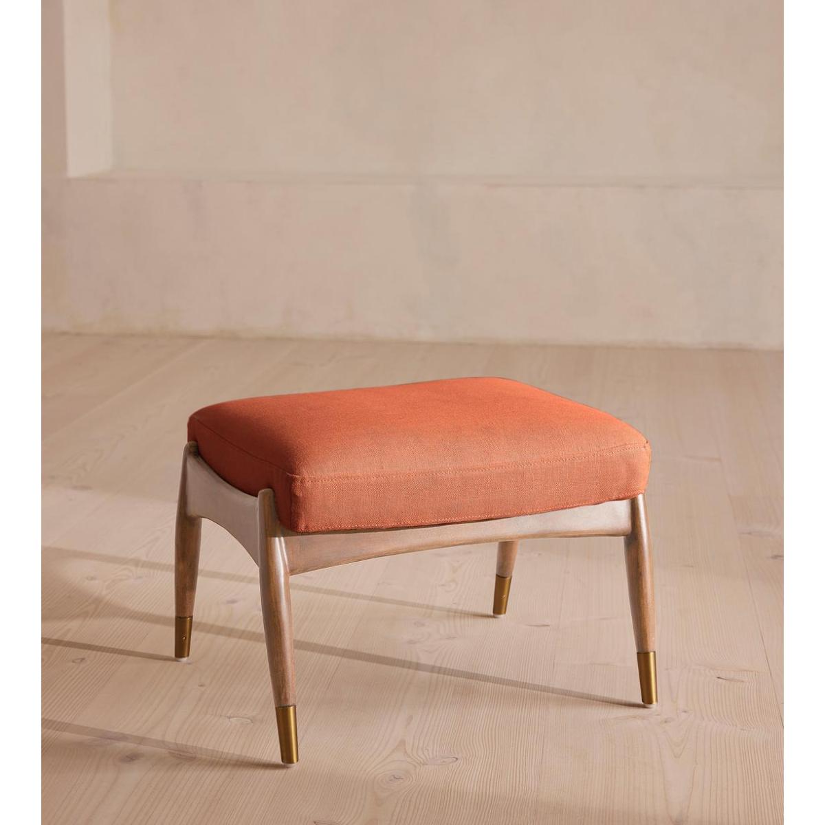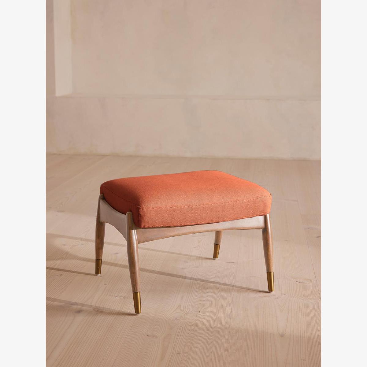 Theodore Oak Footstool, Linen, Antique Rose