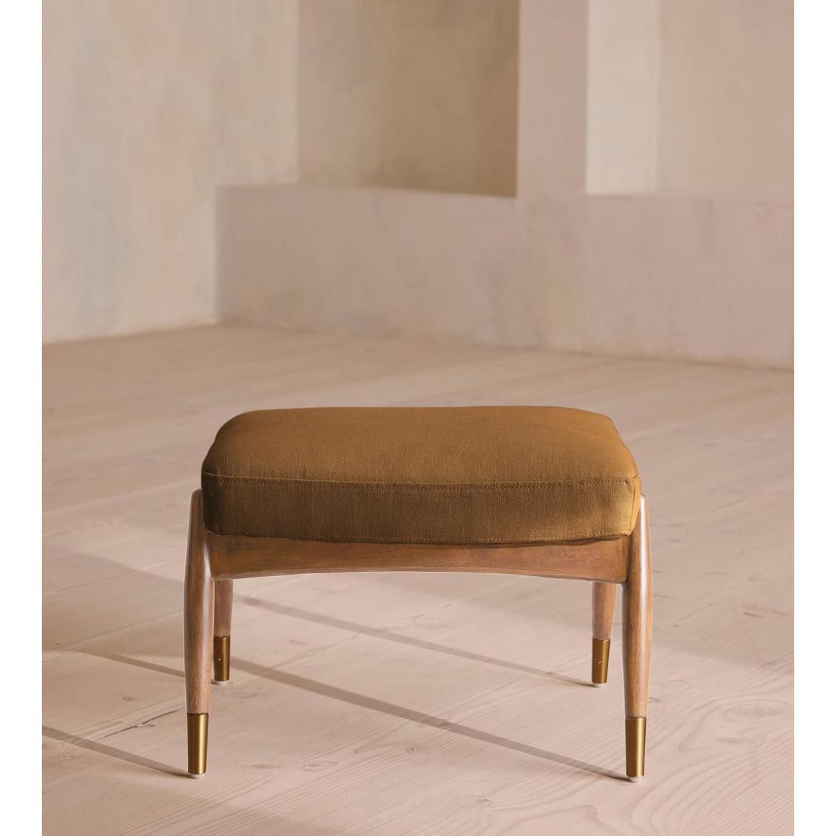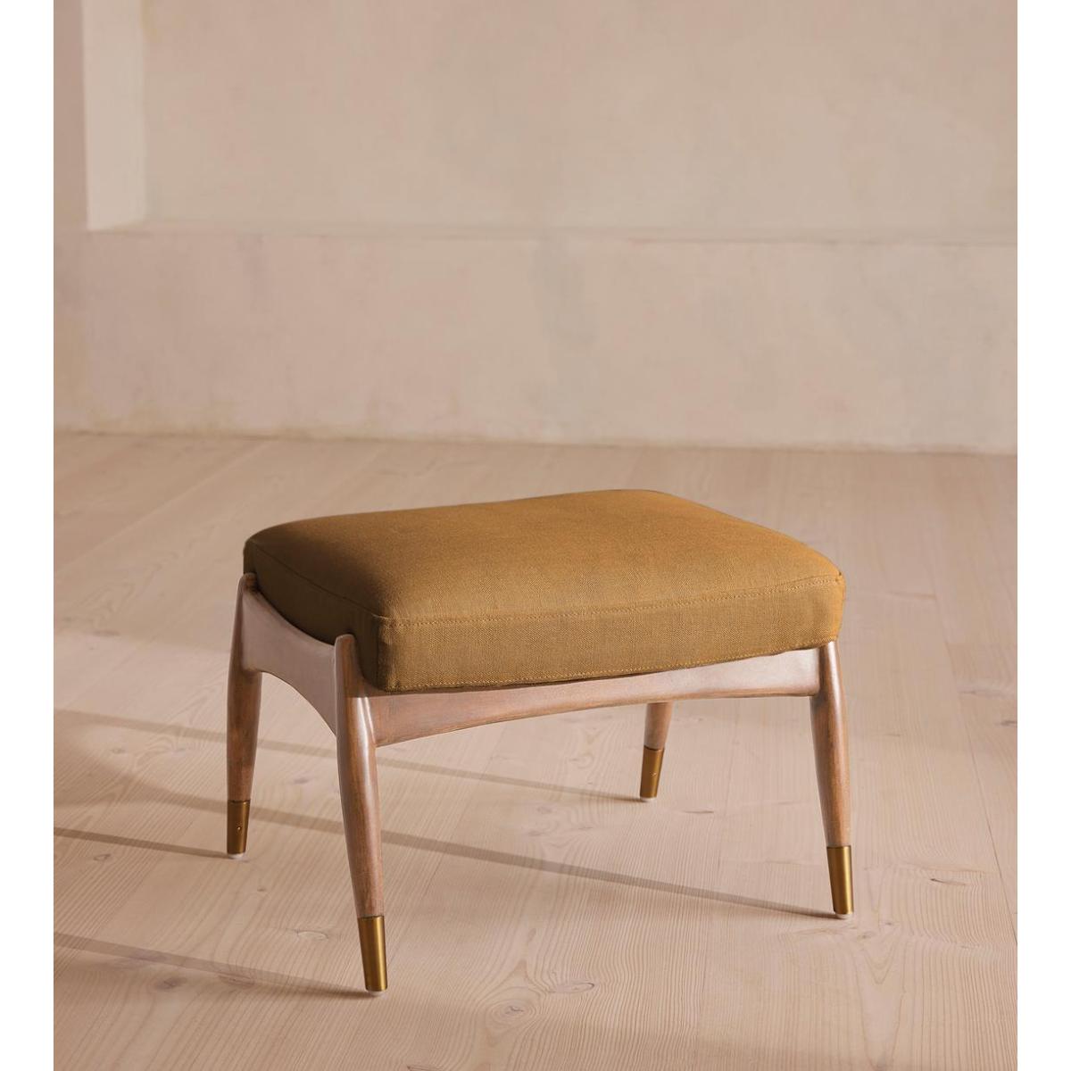 Theodore Oak Footstool, Linen, Ochre
