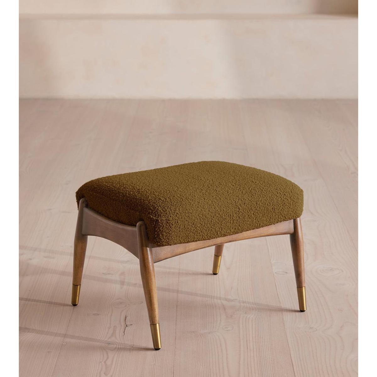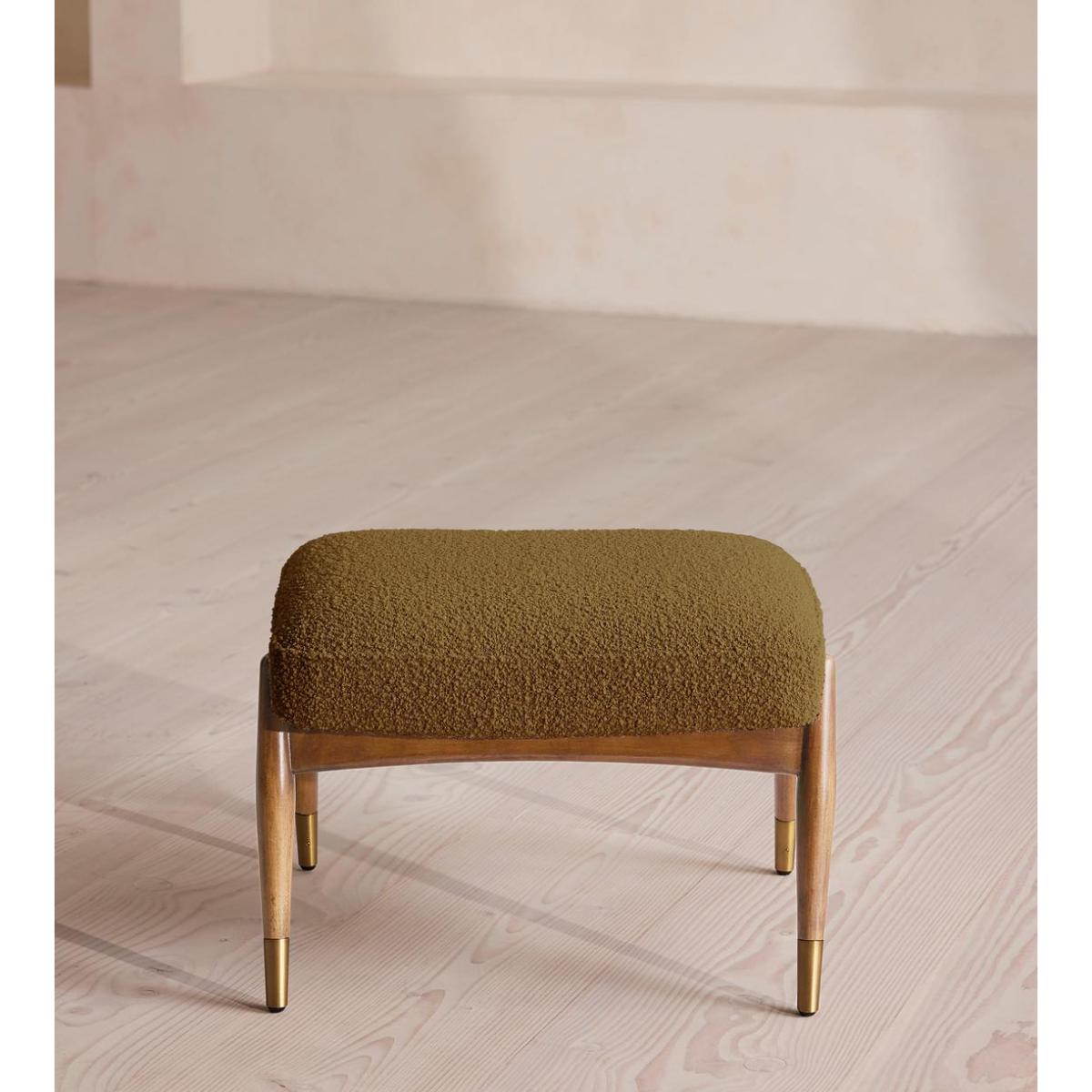Theodore Oak Footstool, Textured Wool Boucle, Kelp