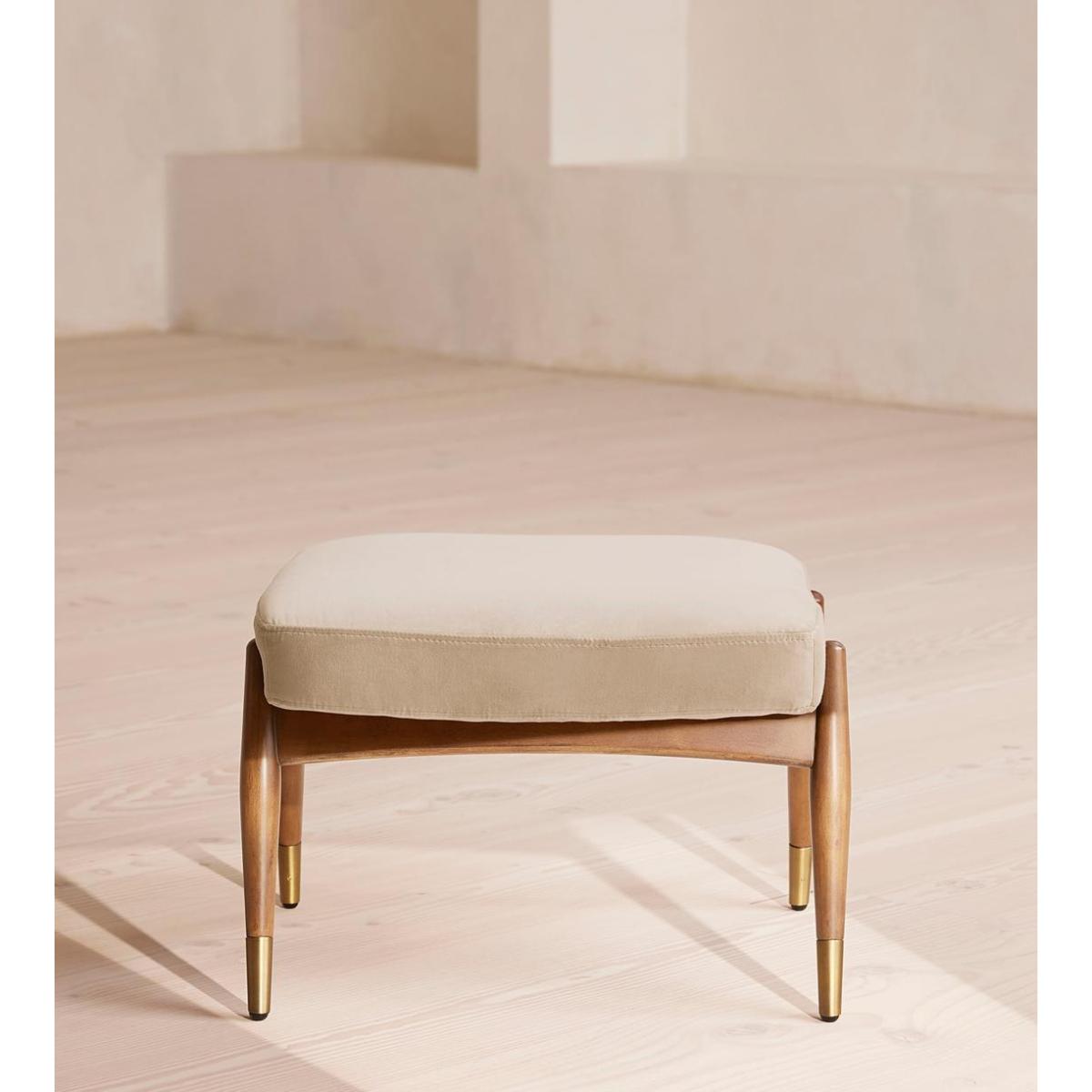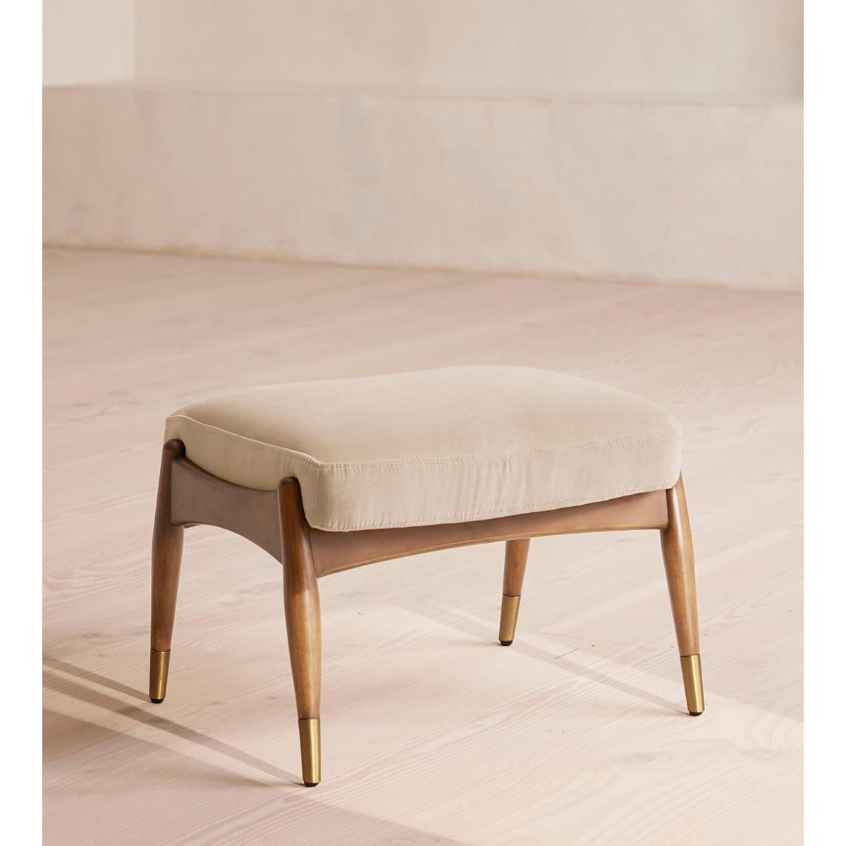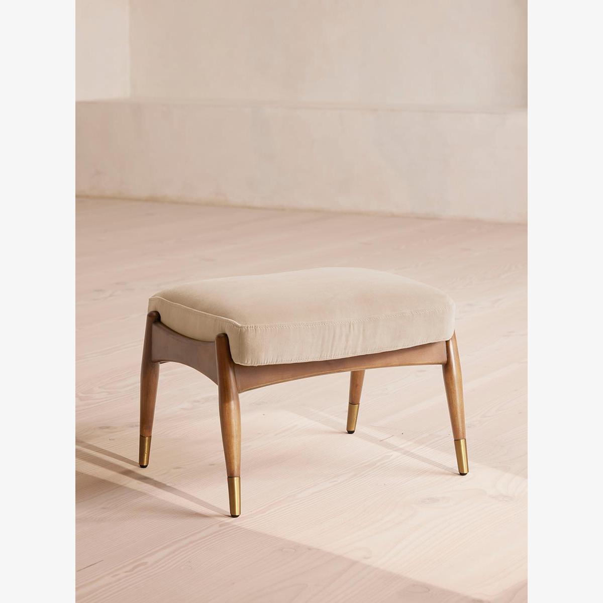 Tapered legs carved from oak are paired with a comfortable, feather-wrapped cushion upholstered in velvet. Designed to co-ordinate with the Theodore armchair or mix and match across the rest of our collection, this footstool pairs a tapered oak wood frame with velvet upholstery. Taking cues from the interiors of Soho House 40 Greek Street, it's finished with brass detailing on the legs and a comfortable, feather-wrapped foam cushion that acts as an extra seat or a place to put your feet up.