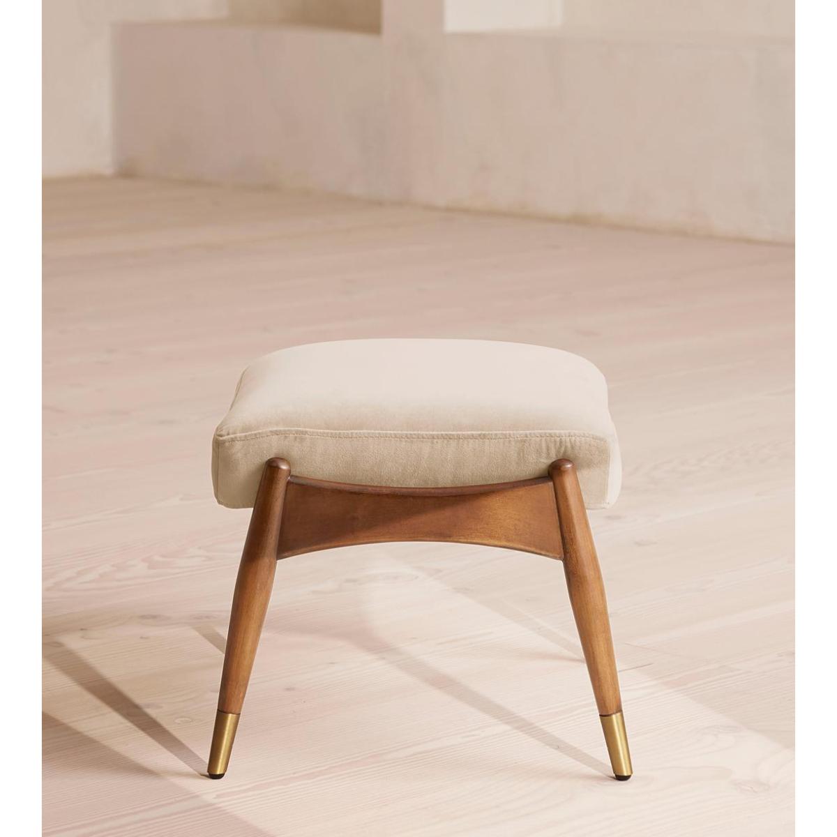I love this little piece for its versatility and refined look. The velvet upholstery in porcelain adds a subtle elegance, making it suitable for both classic and contemporary interiors. It works particularly well in living rooms with neutral tones or layered textures, serving as both a footrest and an extra seat when needed. Practical styling tips include pairing it with a statement armchair or layering it with patterned rugs and cushions to create a cosy yet sophisticated space. Its size and understated design make it an effortless addition to small spaces or bedrooms, where it can act as a functional decorative element without overwhelming the room.