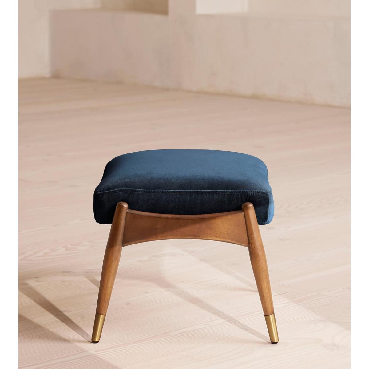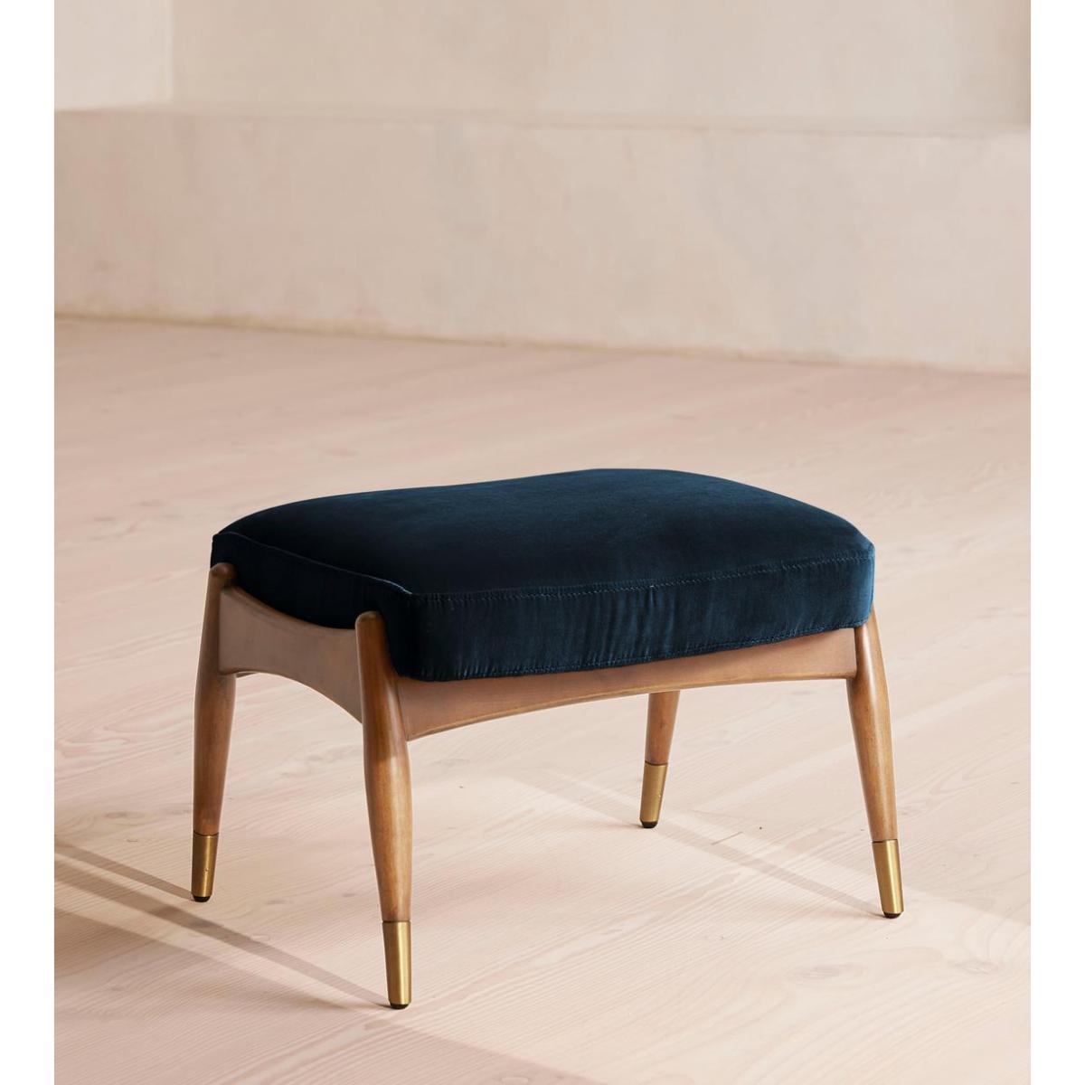 I love this little footstool for its timeless elegance and versatile colourway. The rich royal blue velvet adds a luxurious touch that works beautifully in both classic and contemporary interiors. It’s perfectly sized for pairing with a sofa or armchair, serving as a convenient footrest or extra seating. Styling tips include using it to inject a pop of colour in neutral schemes, or as a statement piece in more vibrant spaces. Its understated wooden legs give it a Scandinavian vibe, making it suitable for minimal, mid-century, or eclectic interiors. For a cohesive look, try pairing with warm woods or other textiles in complementary tones - it’s a practical yet stylish addition that can lift the overall feel of a room.