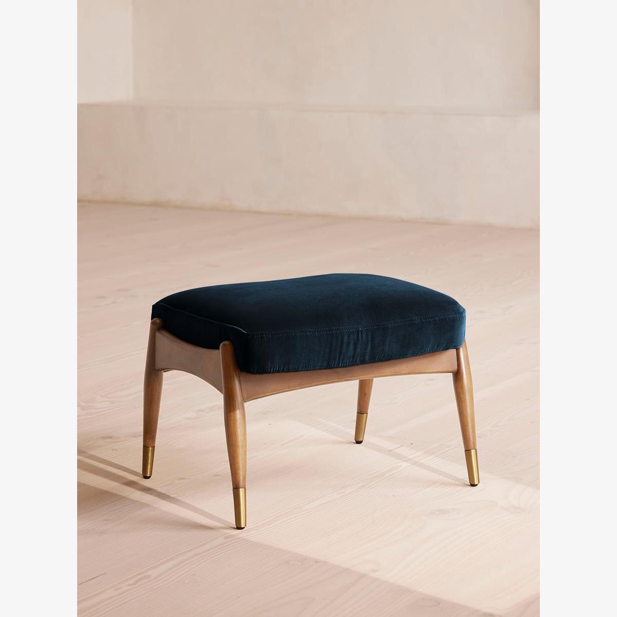 Tapered legs carved from oak are paired with a comfortable, feather-wrapped cushion upholstered in velvet. Designed to co-ordinate with the Theodore armchair or mix and match across the rest of our collection, this footstool pairs a tapered oak wood frame with velvet upholstery. Taking cues from the interiors of Soho House 40 Greek Street, it's finished with brass detailing on the legs and a comfortable, feather-wrapped foam cushion that acts as an extra seat or a place to put your feet up.