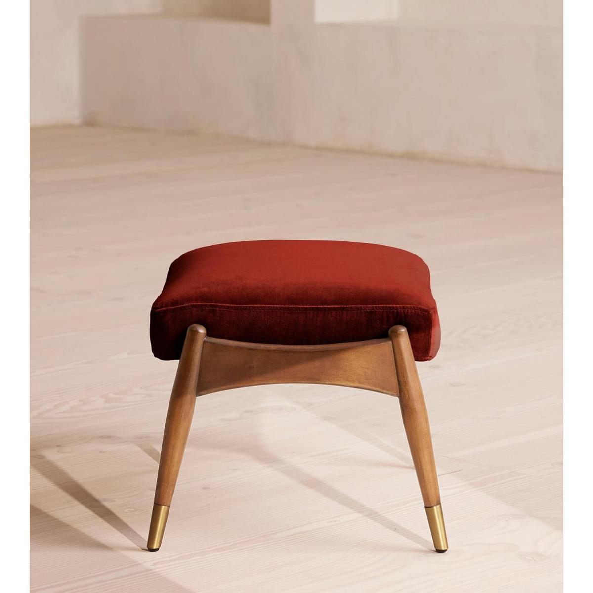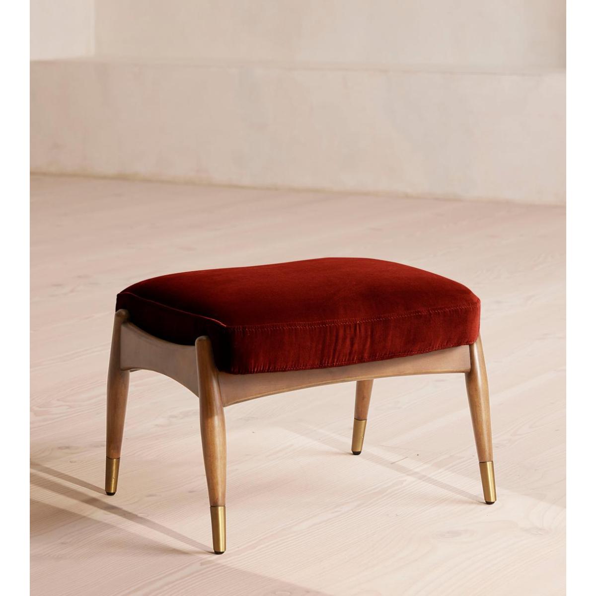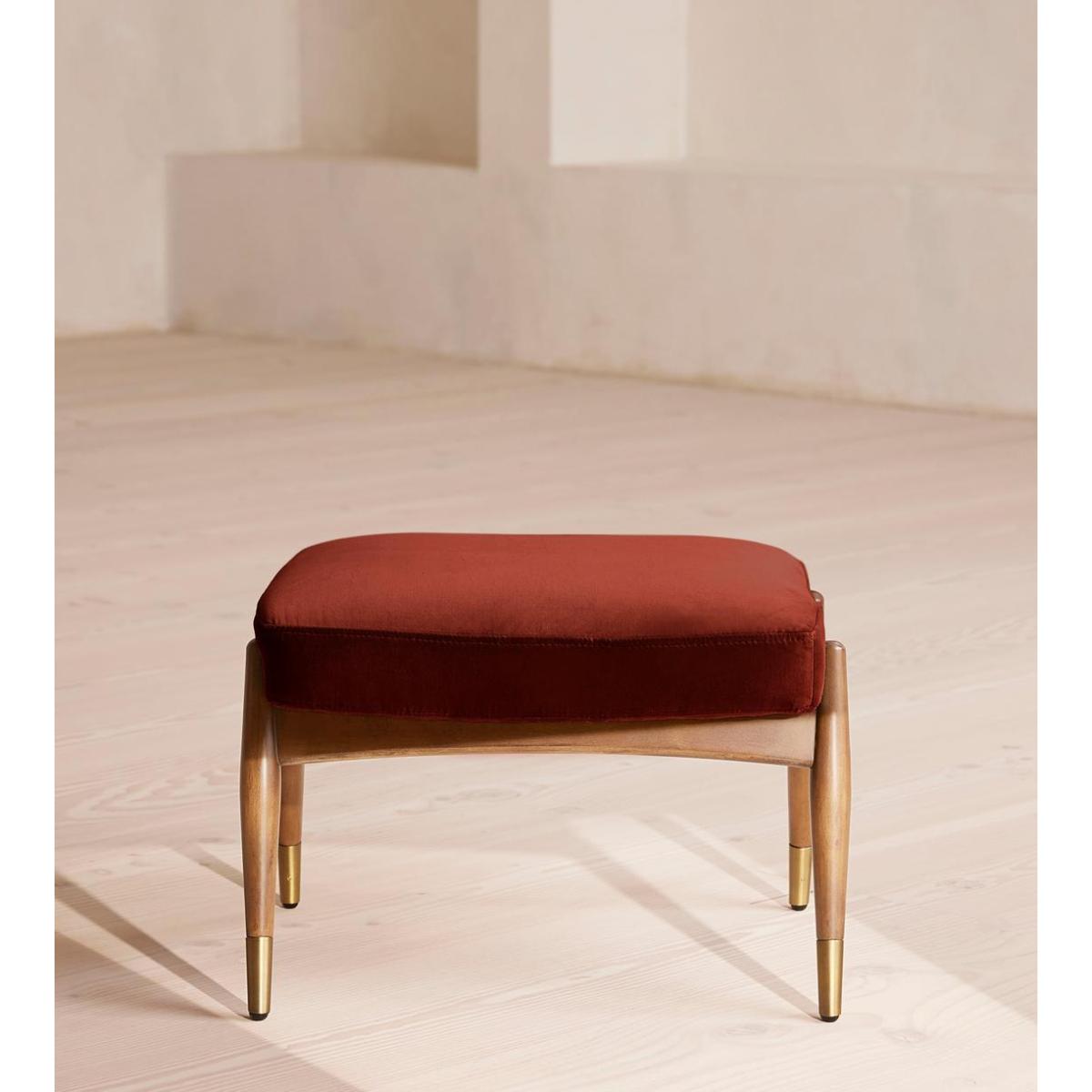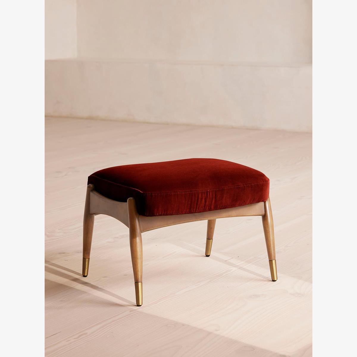 Theodore Oak Footstool Velvet Rust