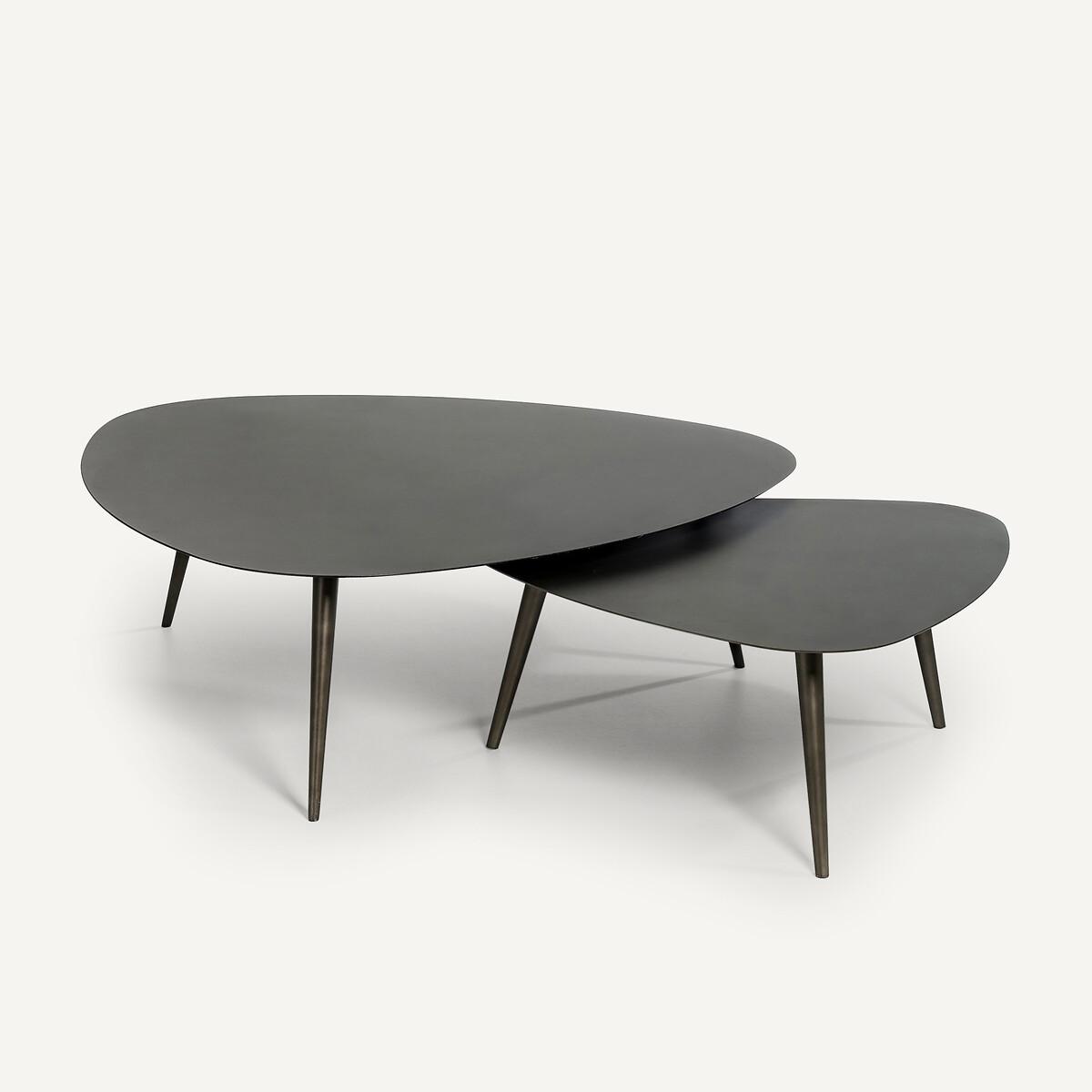 Théoleine Coffee table. A light and airy aircraft wing shape... Can be used as a pull-out table with the large Théoleine coffee table sold on the site. Product Details • In worn metal • Ready to assemble, instructions enclosed • The table surface is fragile and should be protected with placemats, coasters and dish rests. Dimensions • L83 x H33 x D81cm Parcel dimensions and weight • L89 x H10 x D87cm • 18kg