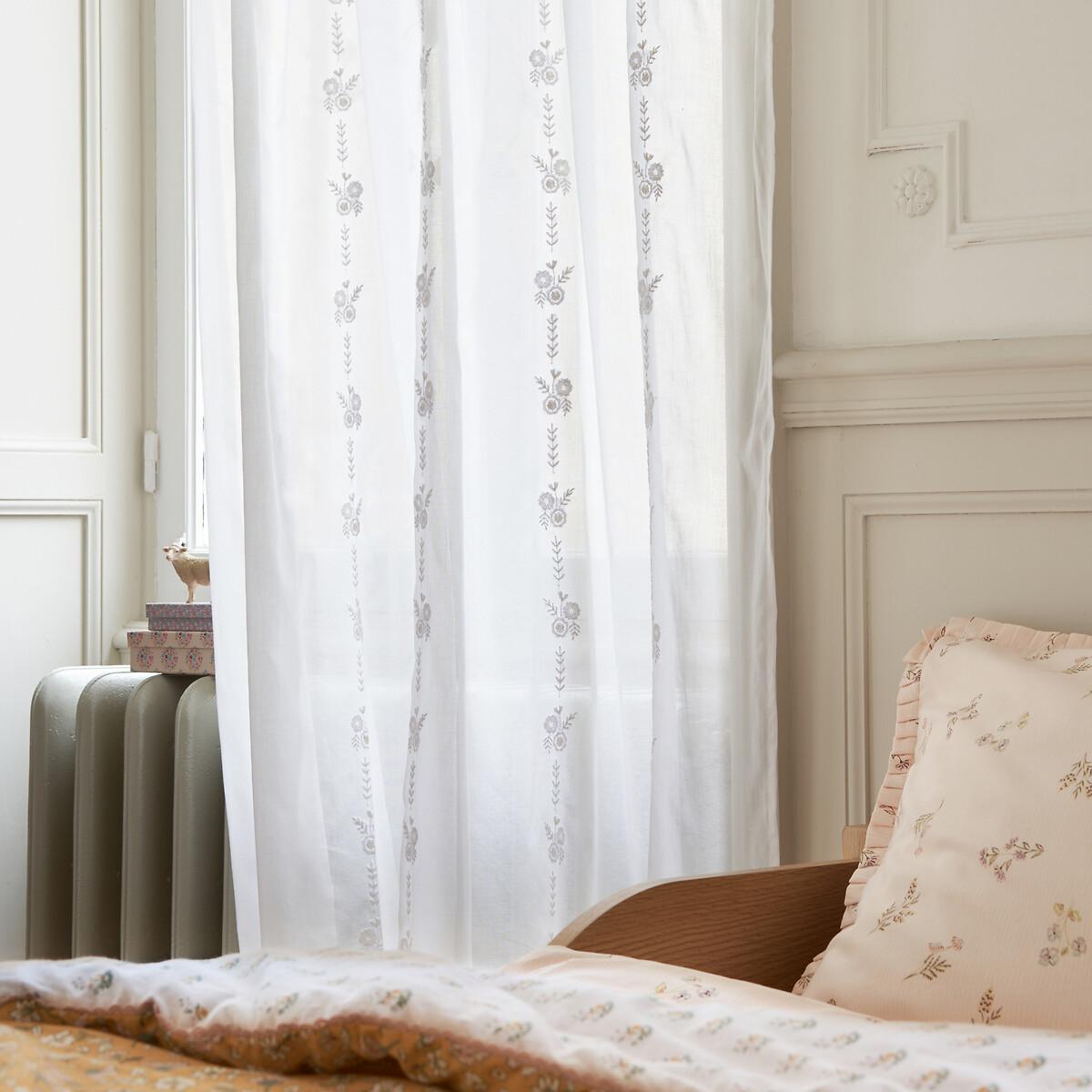 Lightness and hold of a cotton veil, delicacy of flower embroidery... Theoline is a sheer curtain full of poetry. It creates a soft atmosphere in the house. Cotton is part of our daily lives. We love it for its suppleness, softness and ease of care. Product Details • 100% cotton • Embroidery • Hidden tab finishes • Stitched hem. The tabs give a regular wave to the curtain and an impeccable straight fall. Care Advice • Machine washable • Fabrics made from natural fibres may shrink in the first wash. Always wash your curtains before making any alterations. Sizes • Drop 260 x W135cm