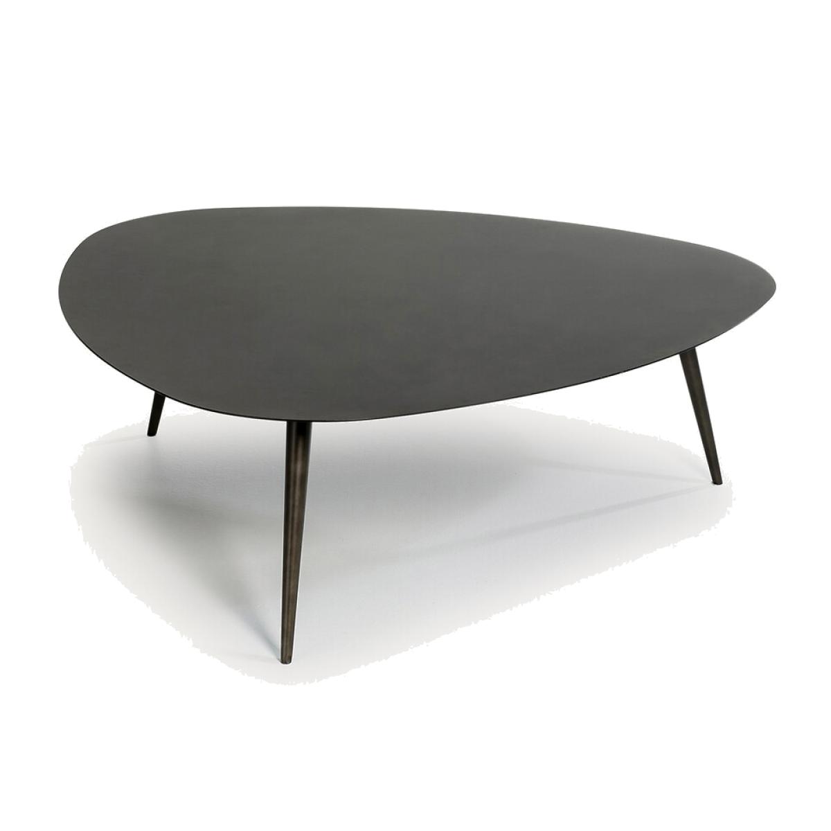 Théoleine Coffee table. A light and airy aircraft wing shape... Can be used as a pull-out table with the small Théoleine coffee table sold on the site. Product Details • Worn metal (iron) • Legs to attach, instructions enclosed • The table surface is fragile and should be protected with placemats, coasters and dish rests. Dimensions • L110 x H37 x D110cm Parcel dimensions and weight • L118 x H10 x D116cm • 29kg