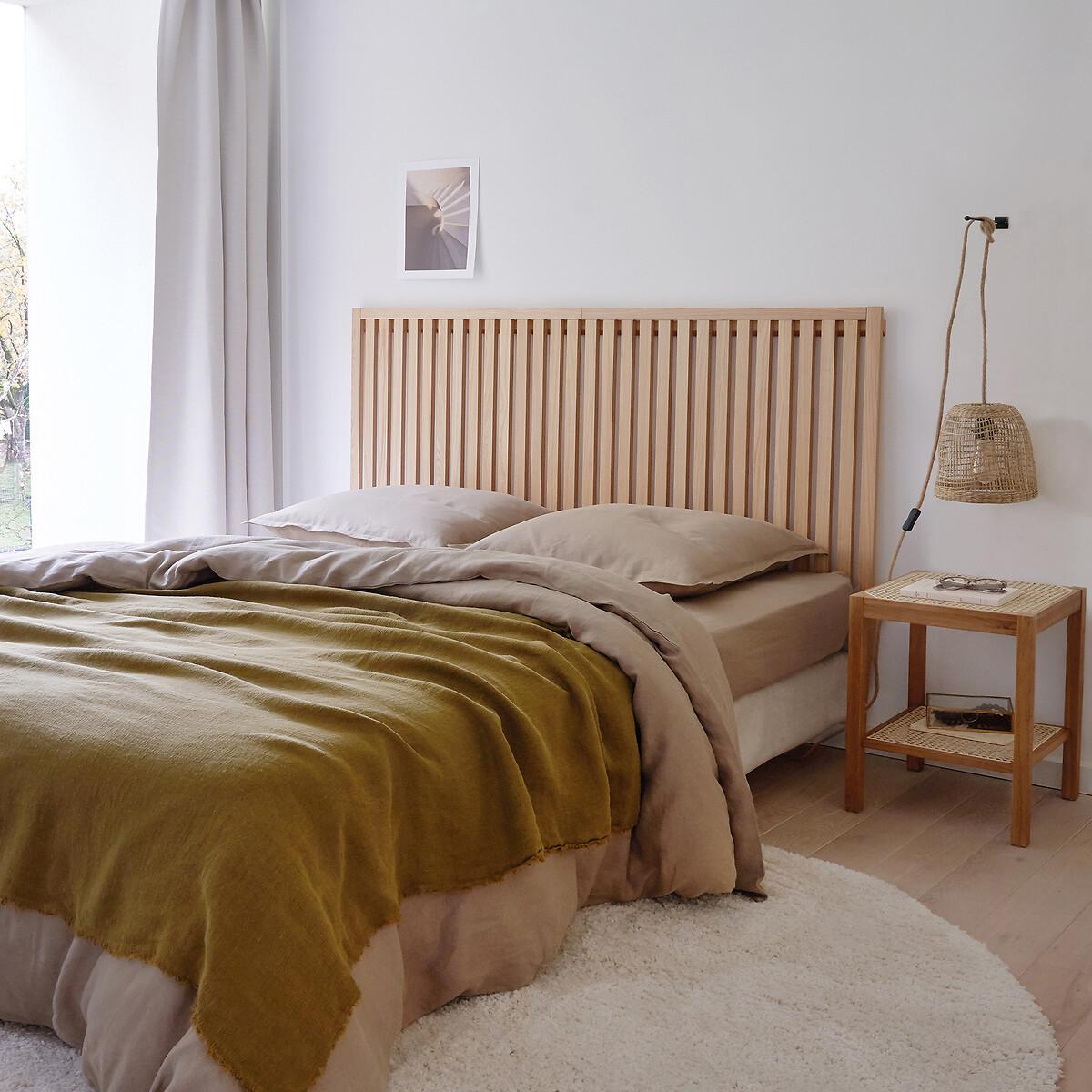 The Theonie headboard has it all: A graphic design in light wood... A product by La Redoute Interiors. Product Details • In ash veneer plywood, nitrocellulose varnish finish • FSC® certified wood • Fixes to the wallDimensions. King Size: • Width: 168.5cm • Height: 125cm • Depth: 3.6cm • Height of legs: 36cm • Weight: 13.4kg Super King Size: • Width: 188.5cm • Height: 125cm • Depth: 3.6cm • Height of legs: 36cm • Weight: 15.5kgDelivery:. This product requires assembly. Available for home delivery. Note! Please ensure all passageways and doorways are wide enough. • WOOD FROM SUSTAINABLY MANAGED FORESTS. FSC® certified wood comes from forests that are environmentally, socially and economically well managed. Dimensions and weight of parcel1 parcel King Size: • L135 x H95 x D10cm. 16kg Super King Size: • L135 x H104.5 x D10cm. 19kg